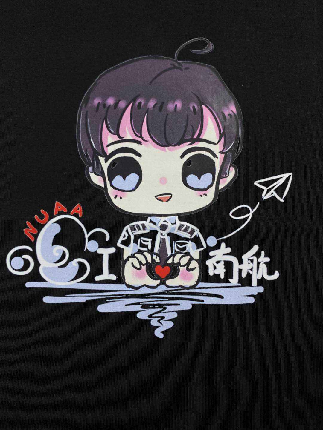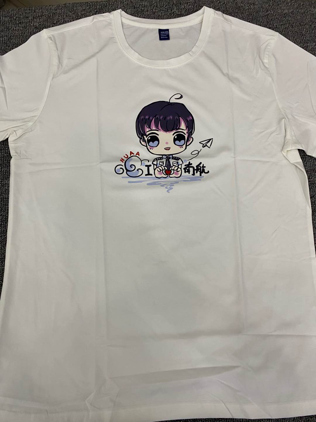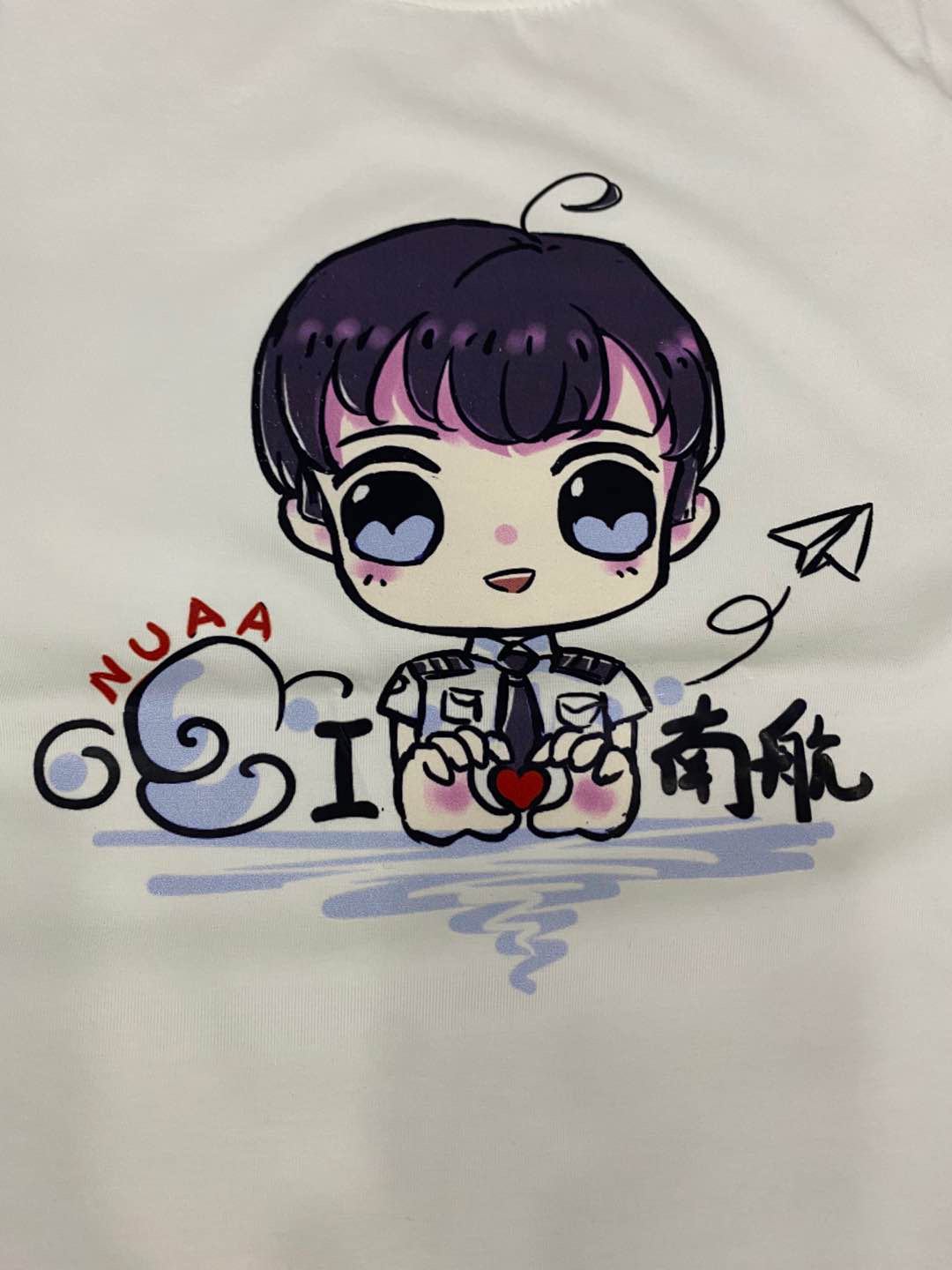 说明:1、定制款南航文创T恤。面料是95%棉+5%氨纶,弹性很大,柔软亲肤,透气舒适。印花部分顺滑不毛糙,绝非市面上几十块钱的文化衫可比。四个款式,可配情侣,很有纪念意义。