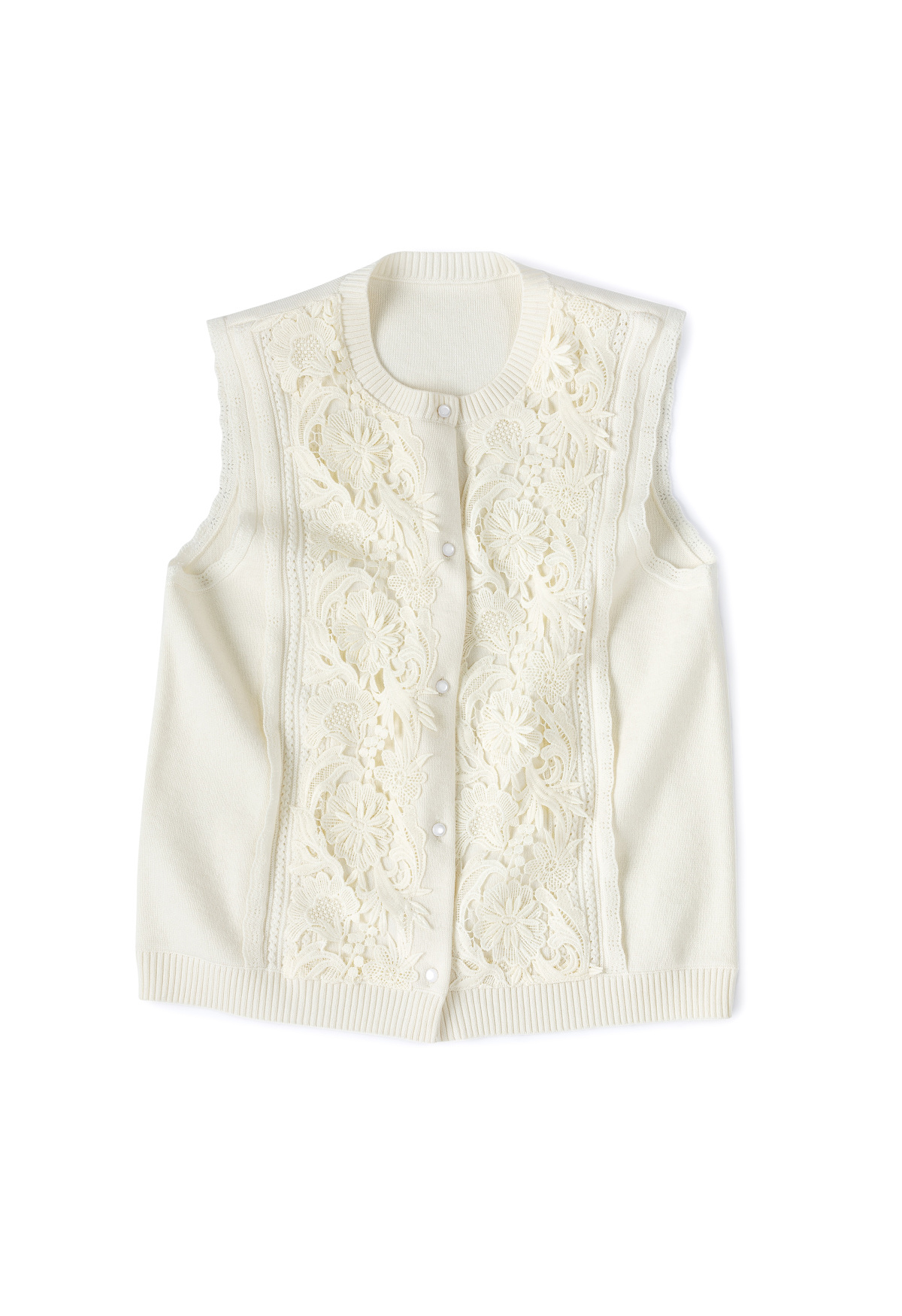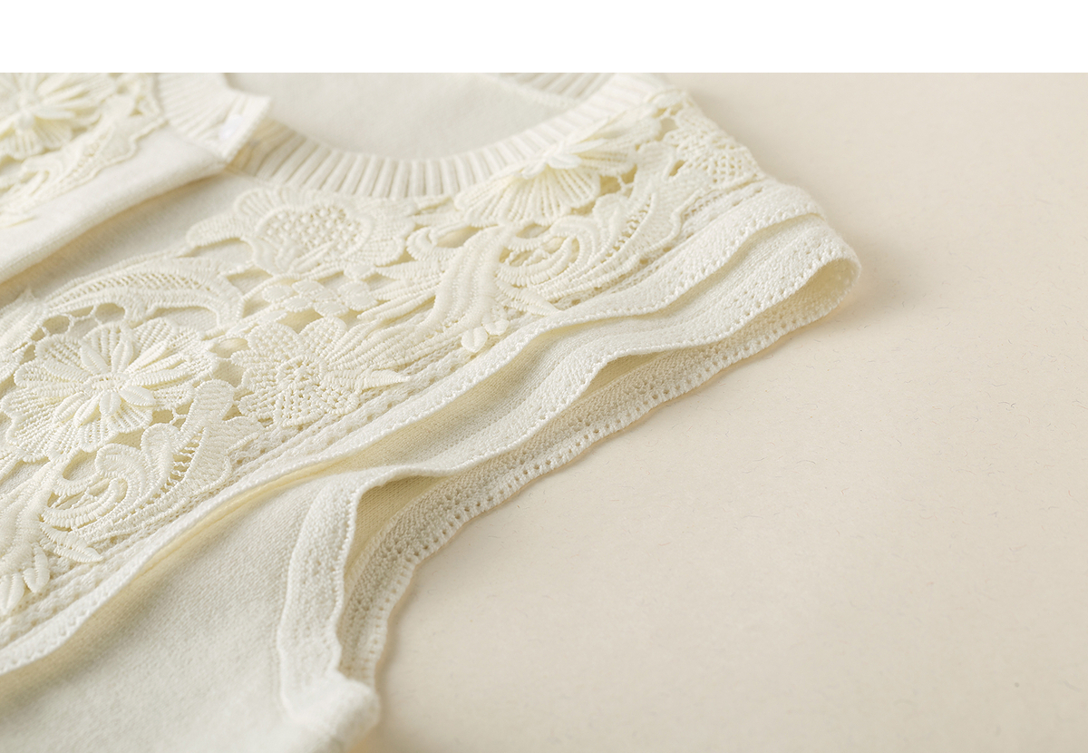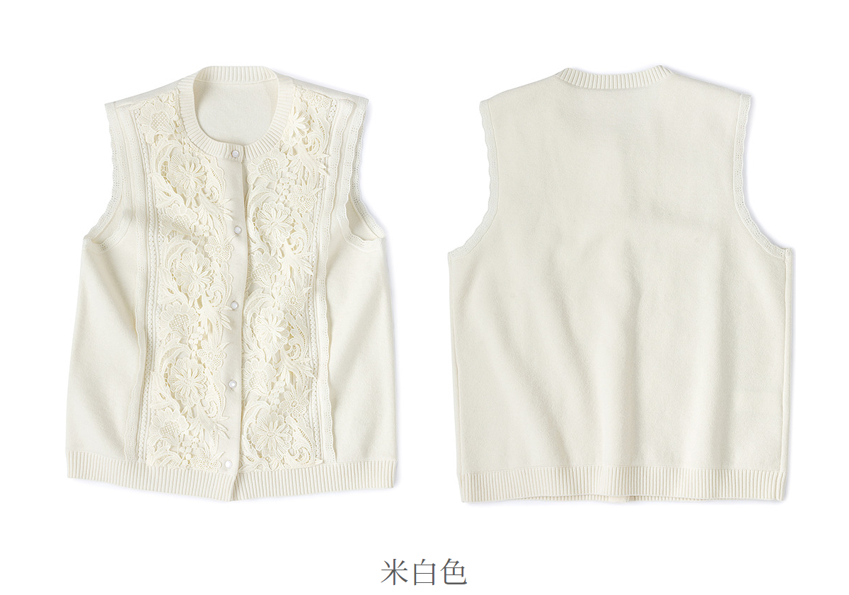 【林栖设计小店】花间来信|米白色镂空肌理绣花2026春新款优雅毛织马甲G1961393