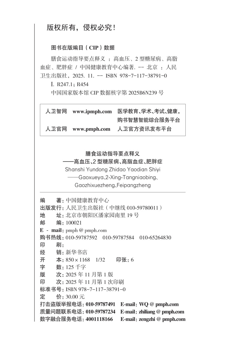 书名:膳食运动指导要点释义——高血压、2型糖尿病、高脂血症、肥胖症