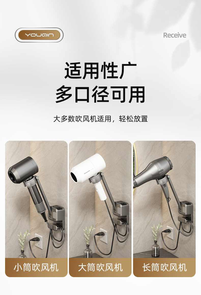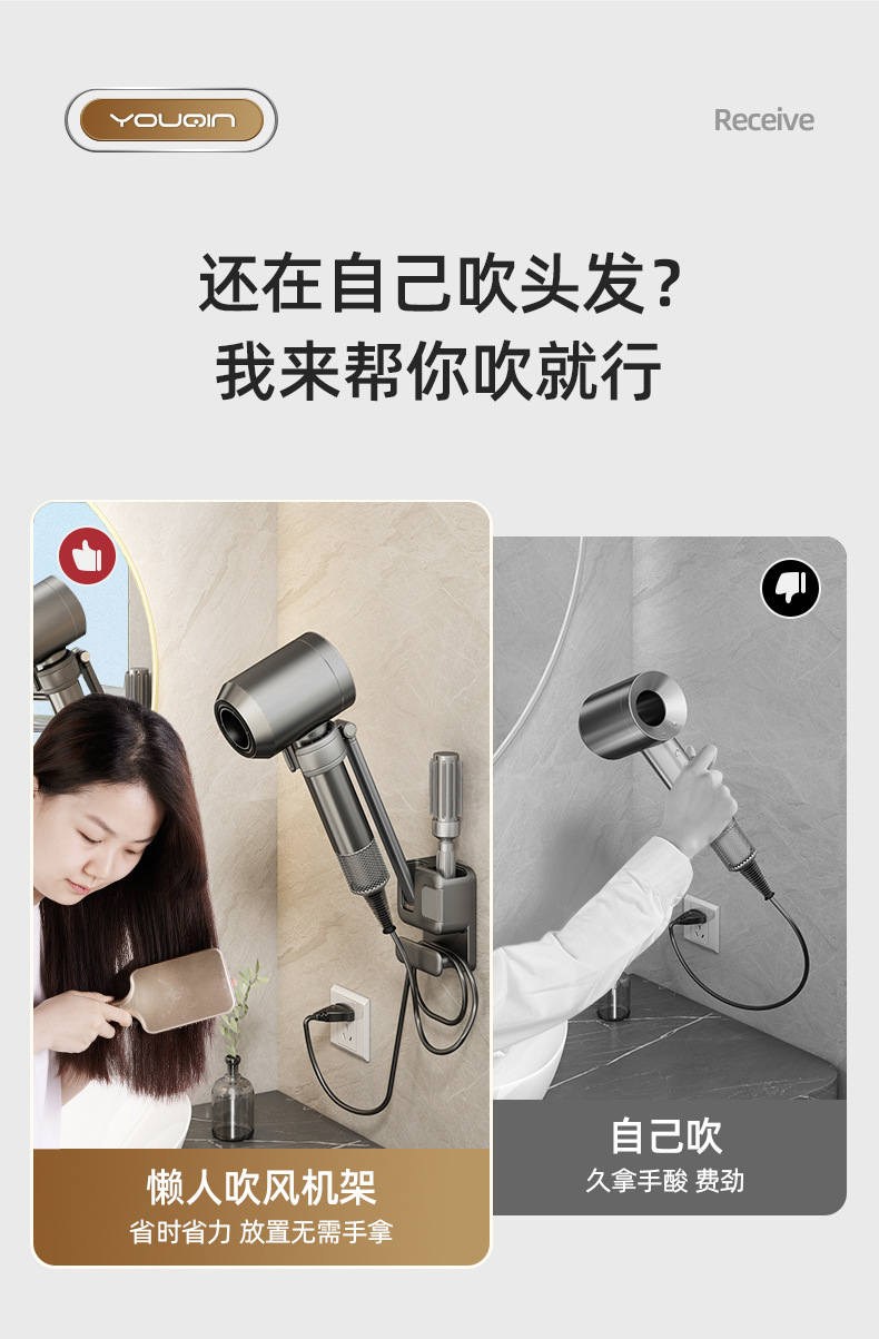 【加厚材质❗️懒人福音】卫生间懒人吹风机支架免手拿电吹风置物架免打孔浴室风筒收纳挂架。jb