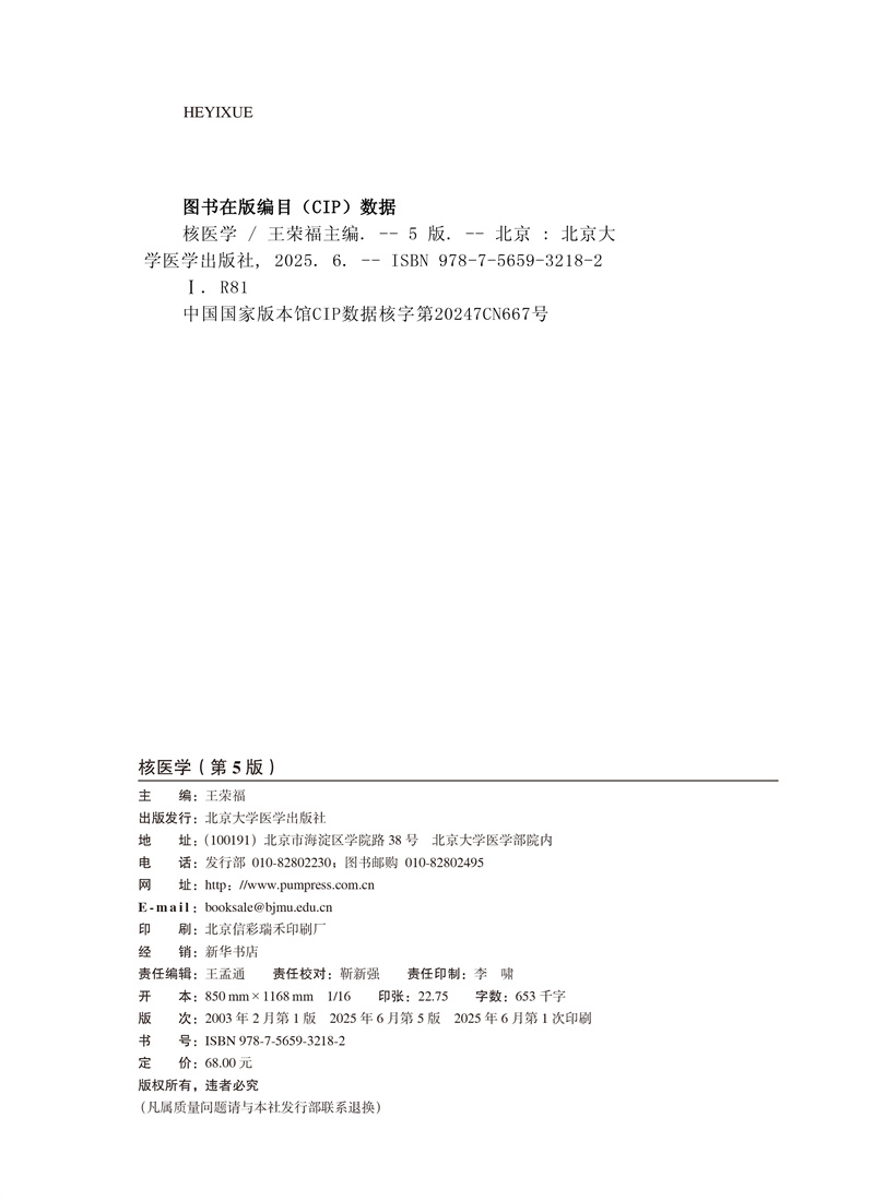 核医学 第5五版 王荣福 十四五普通高等教育本科规划教材 供基础临床护理预防口腔中医药学医学技术类等专业用 北京大学医学出版社