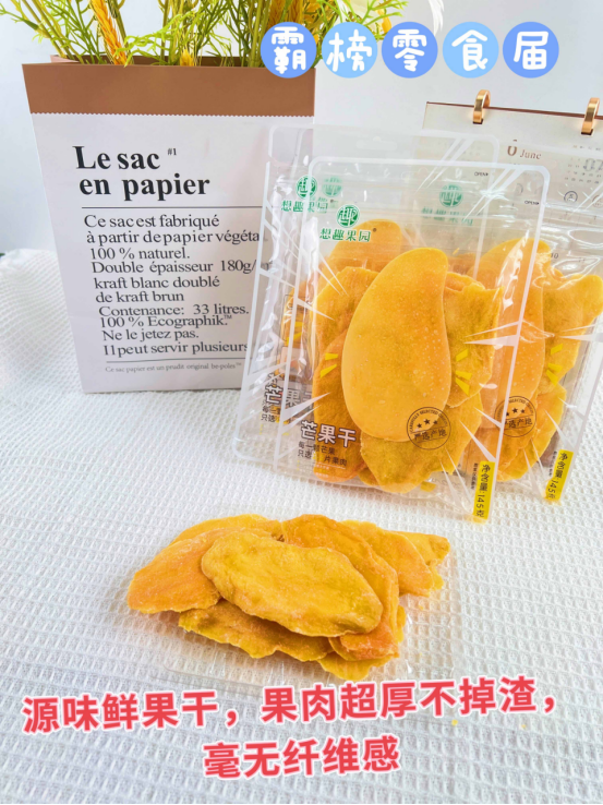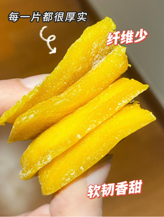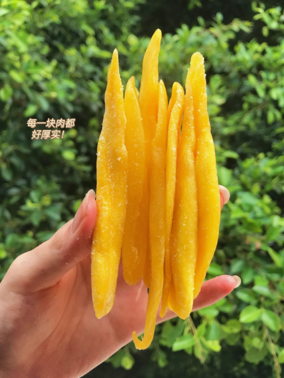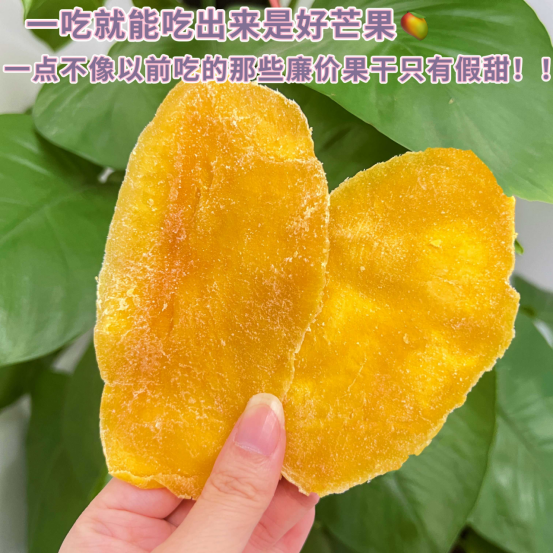 1.0色素0脂肪,而且芒果干中的维生素含量十分丰富,尤其是胡萝卜素,有很好的益胃止呕功效。