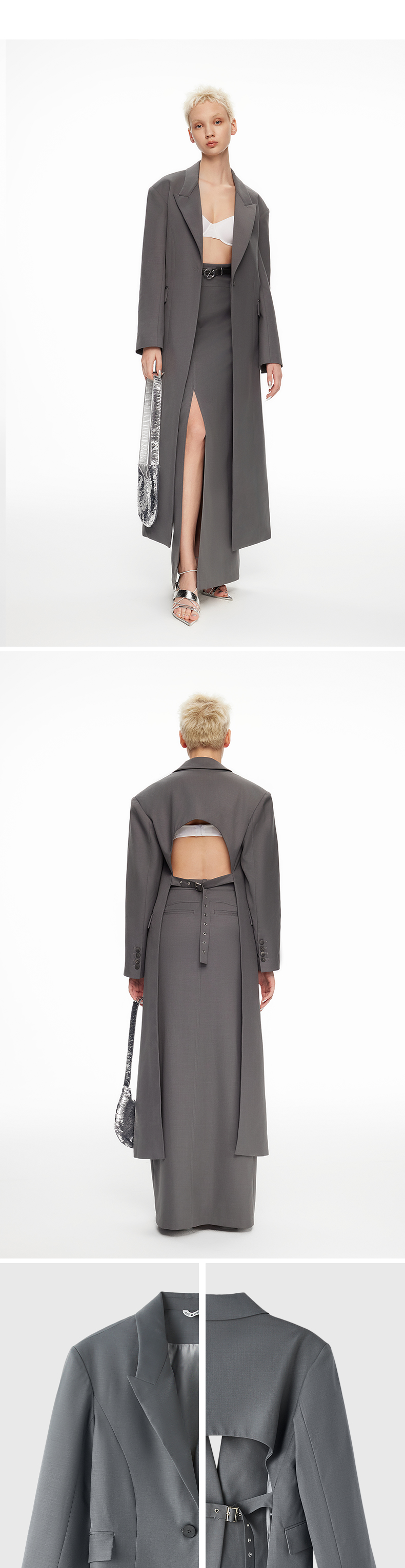 lost in echo2024春季新款设计师品牌背部镂空时髦长款西装外套