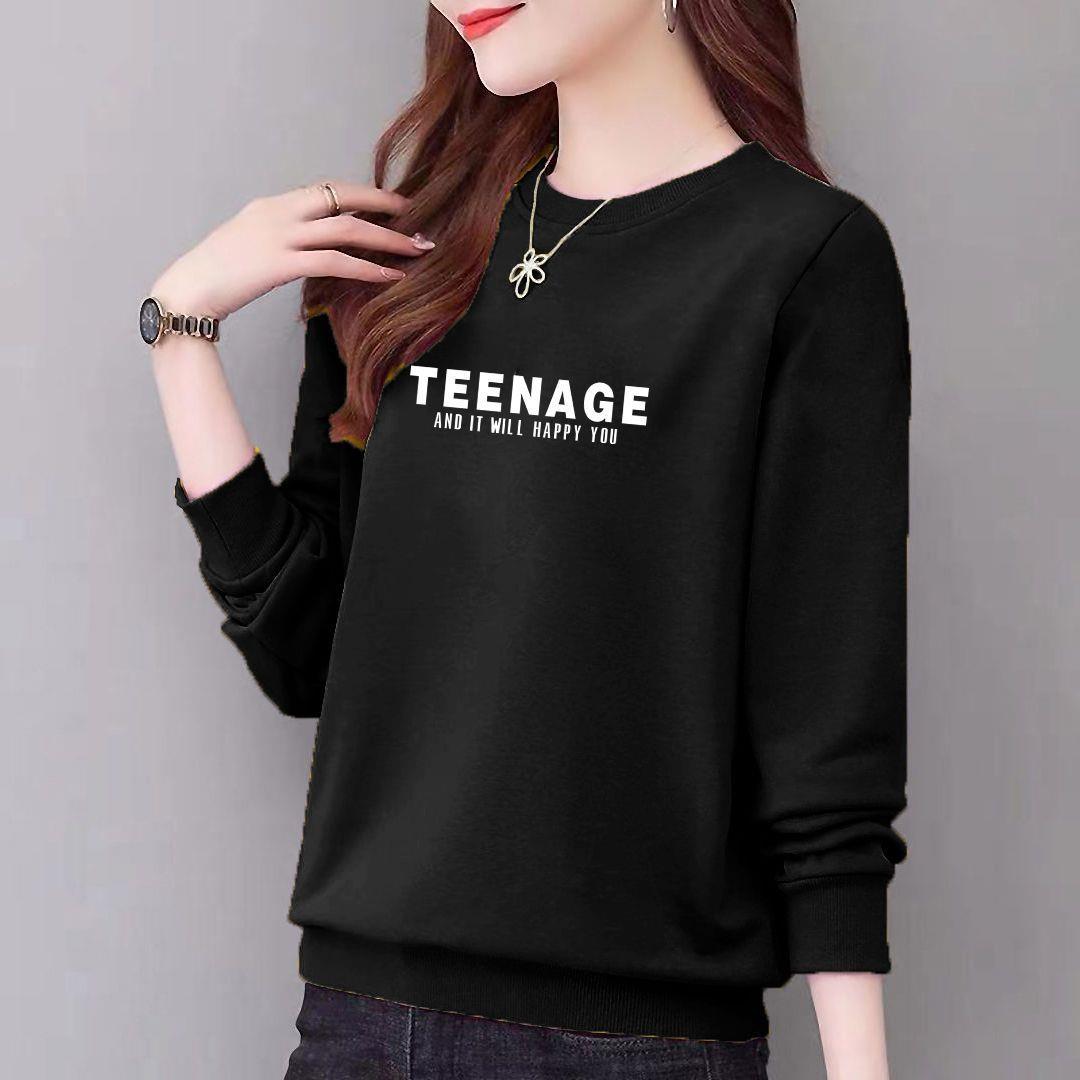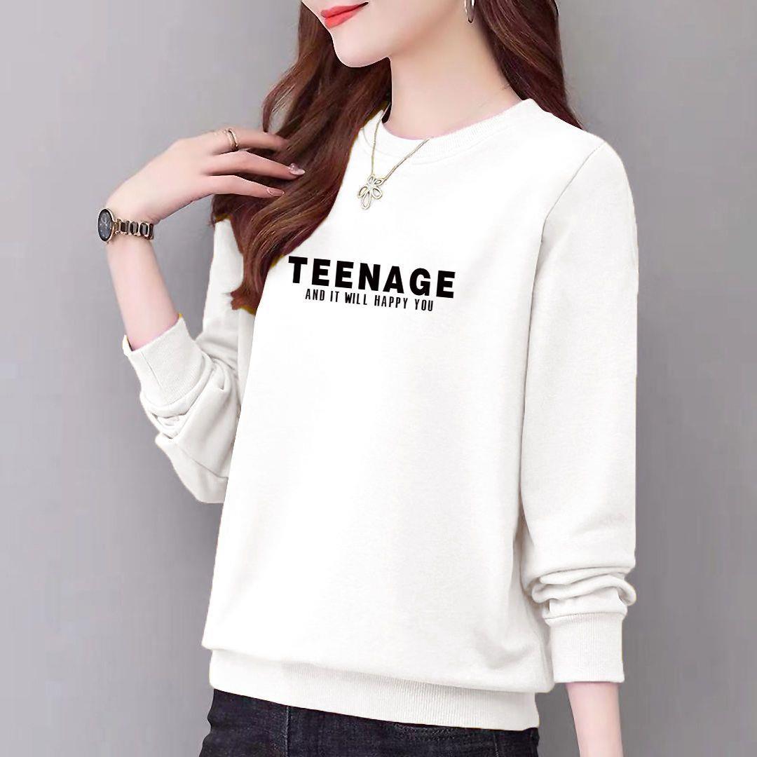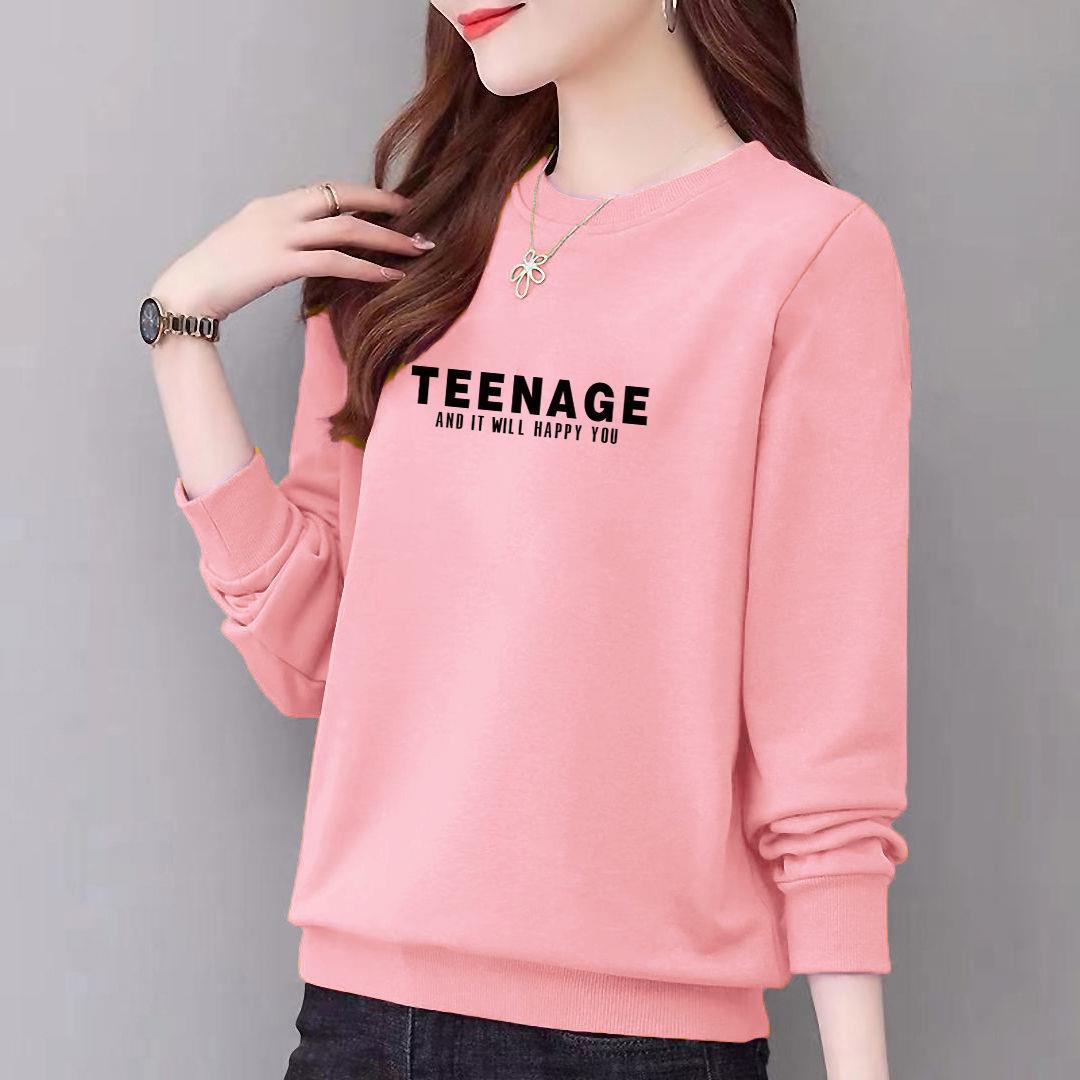 卫衣97%棉圆领女式休闲时尚宽松外套上衣字母印花运动衣显瘦新款