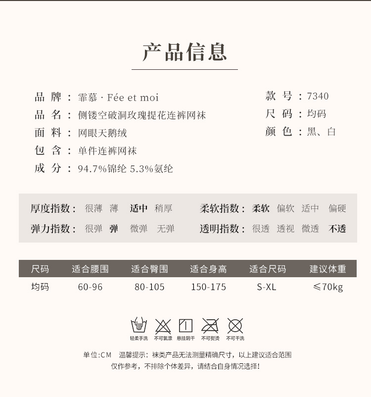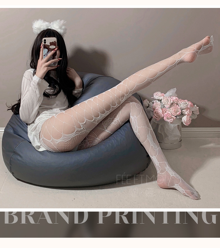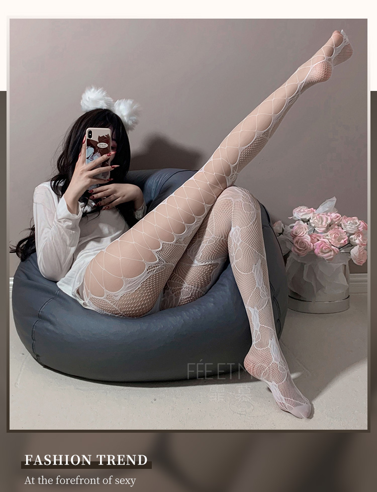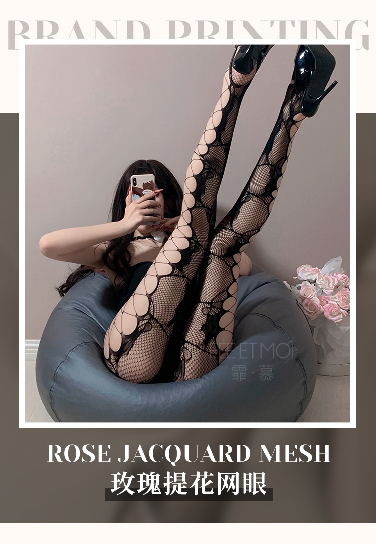 霏慕 侧镂空破洞玫瑰提花连裤网袜7340 女士性感情趣内衣黑丝白丝