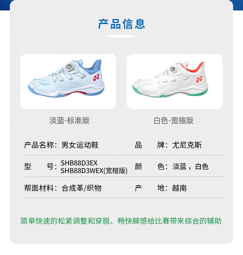 YONEX尤尼克斯羽毛球鞋男女款三代减震运动训练鞋SHB88D3EX