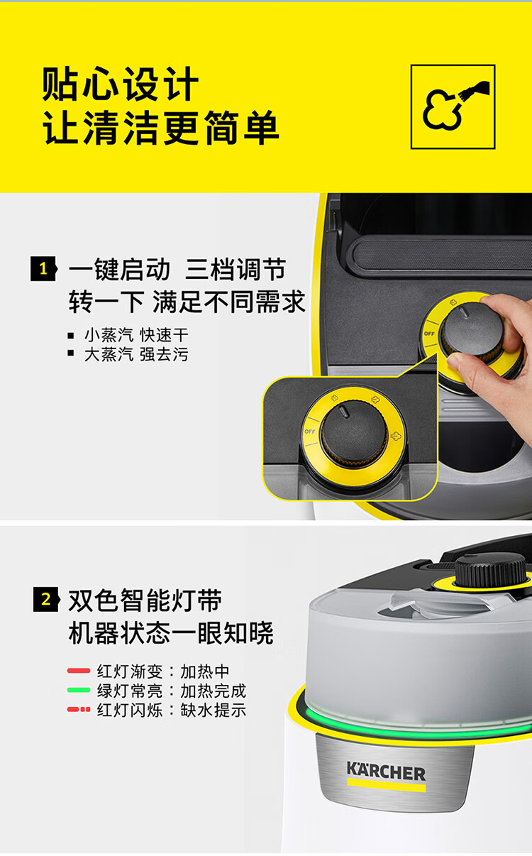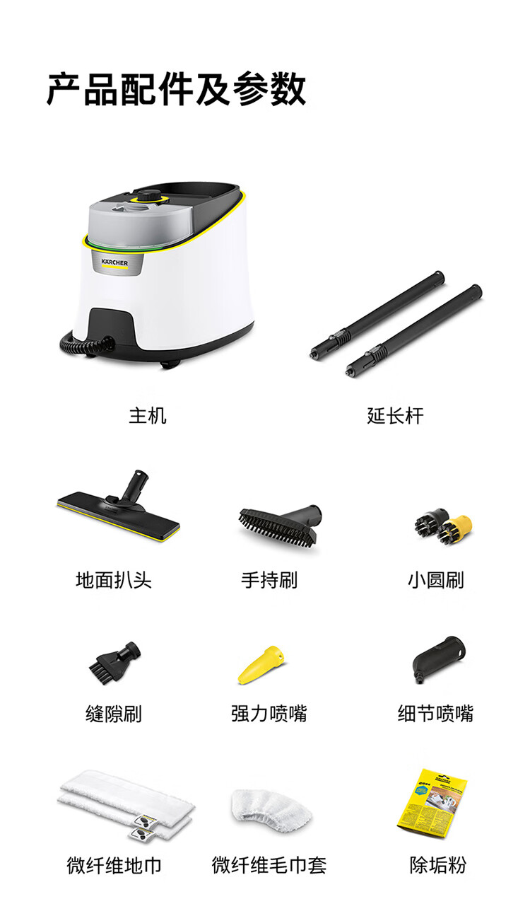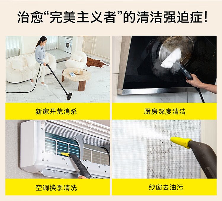 KARCHER德国卡赫 家用高温高压蒸汽清洁机 厨房油烟机空调清洗机 拖地洗地机杀菌除螨SC4D 2023重磅上市