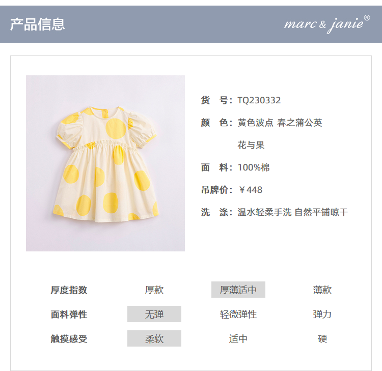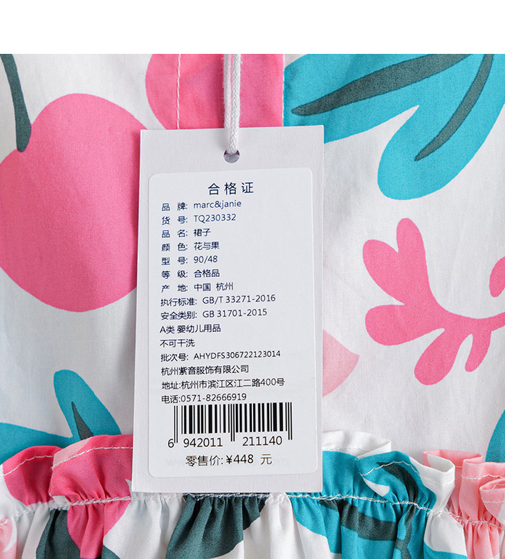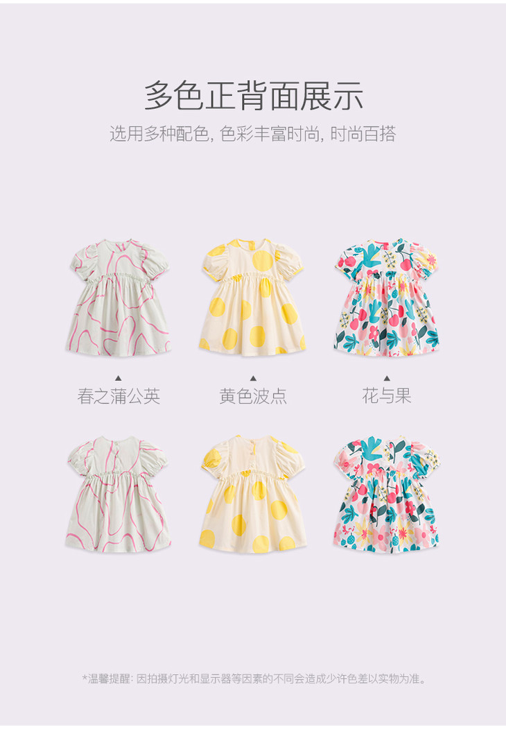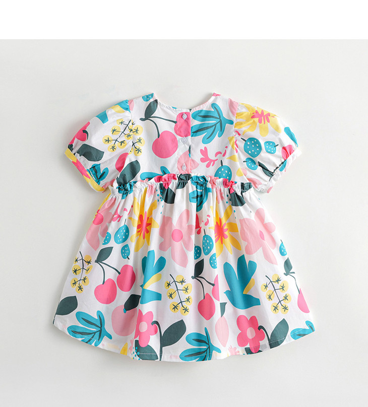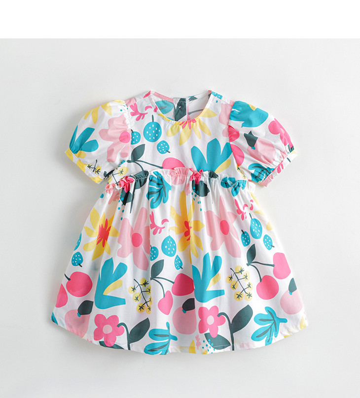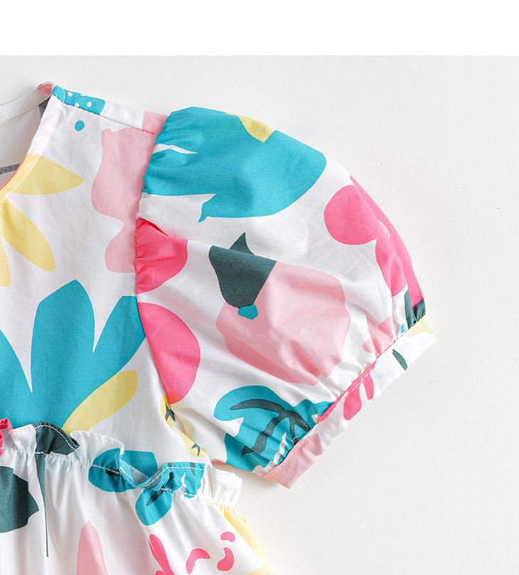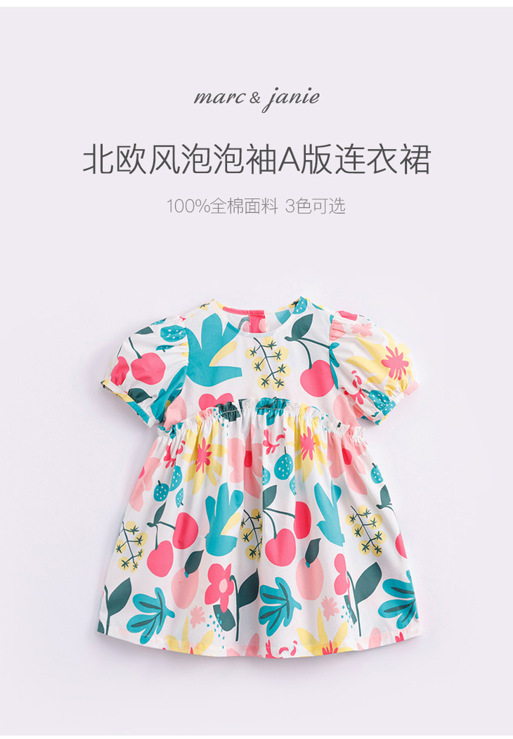 马克珍妮夏装新款 女童北欧风泡泡袖A字纯棉连衣裙230332