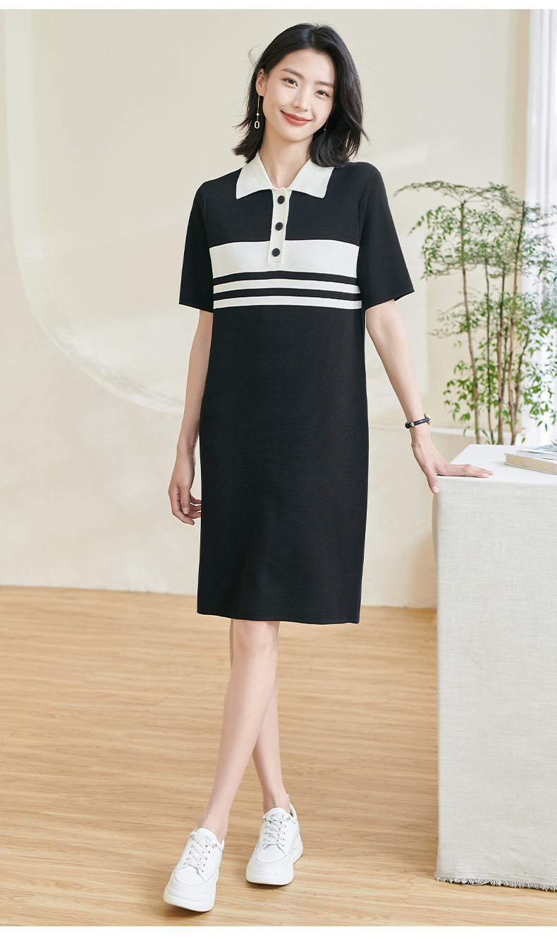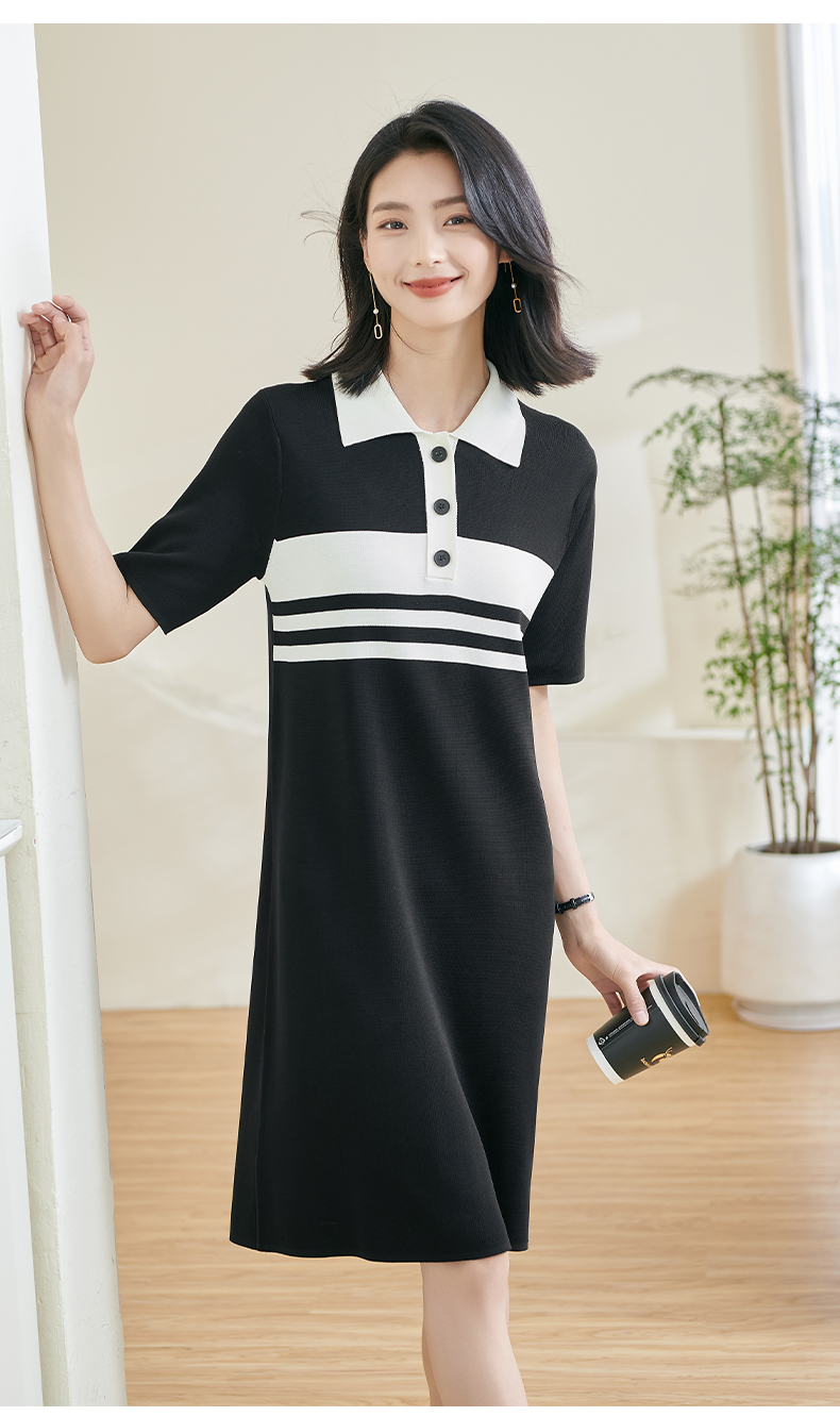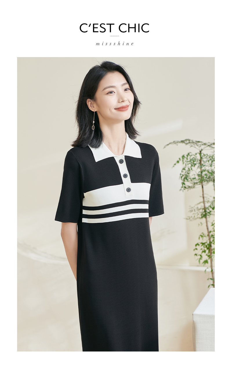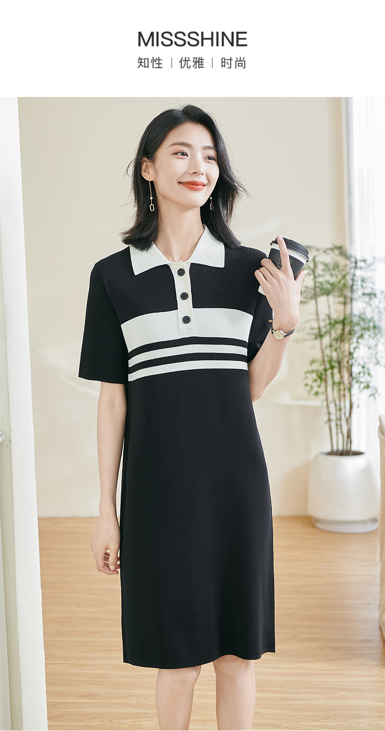 米思阳2025夏新款时尚休闲拼色连衣裙宽松直筒针织连衣裙女0620