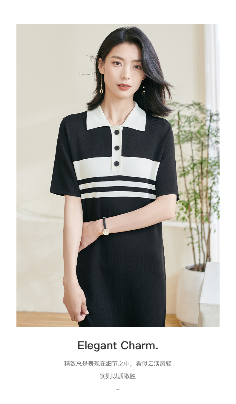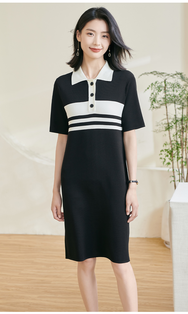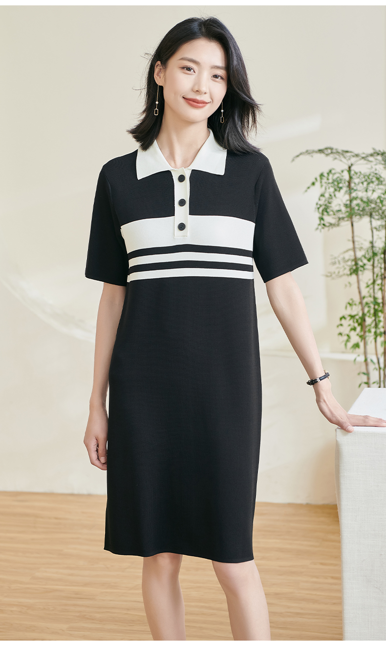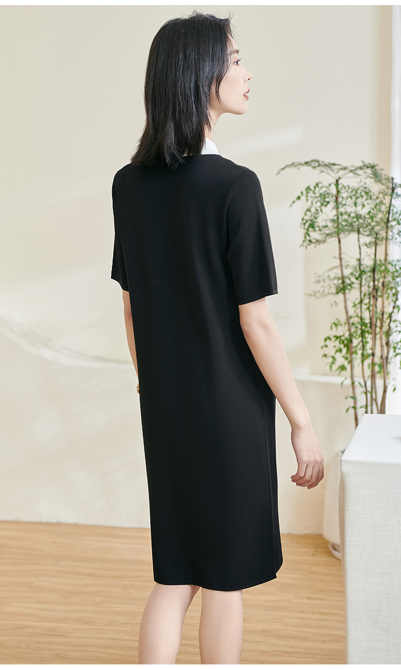 米思阳2025夏新款时尚休闲拼色连衣裙宽松直筒针织连衣裙女0620