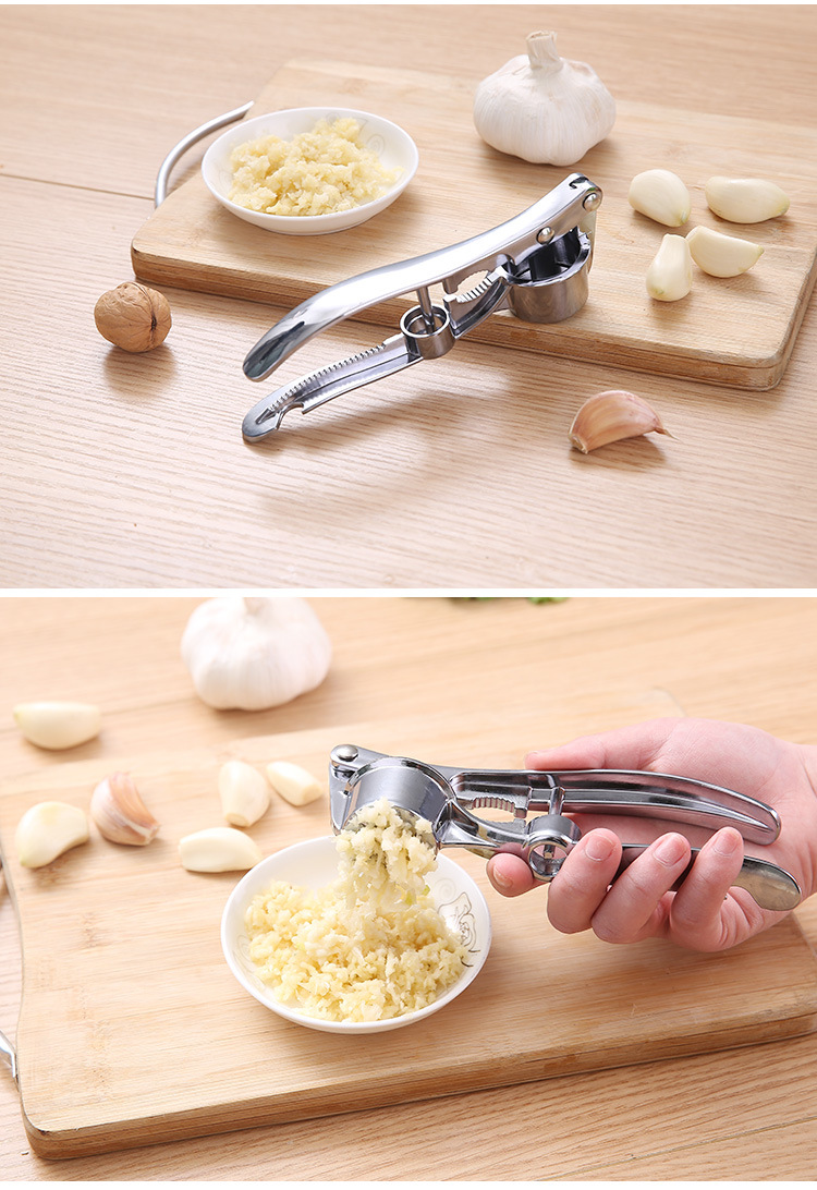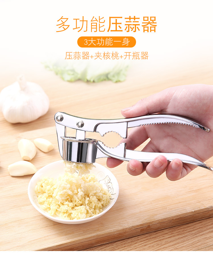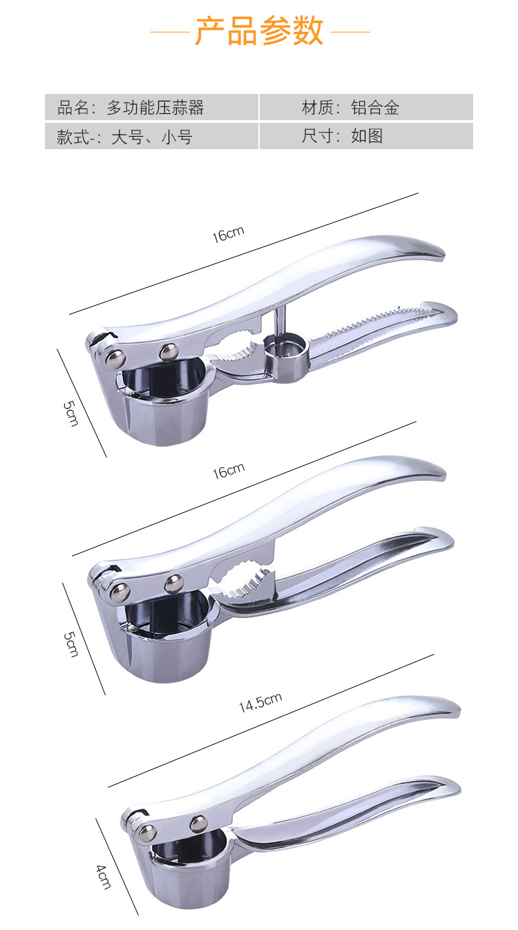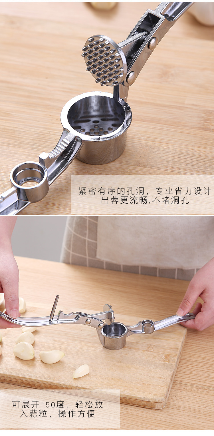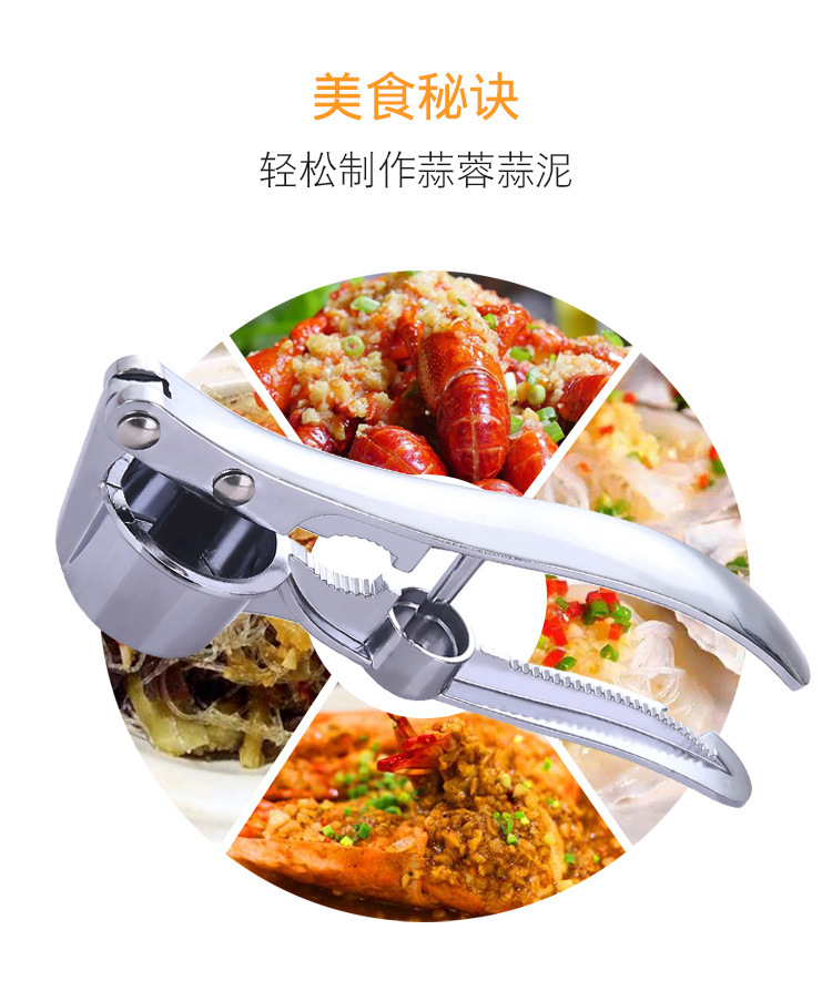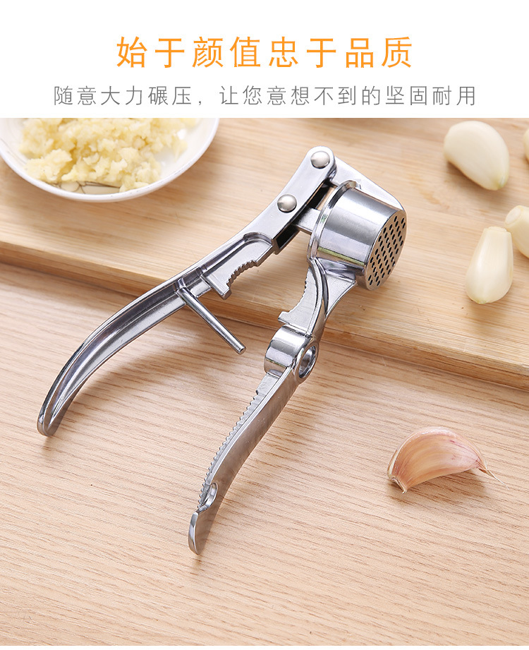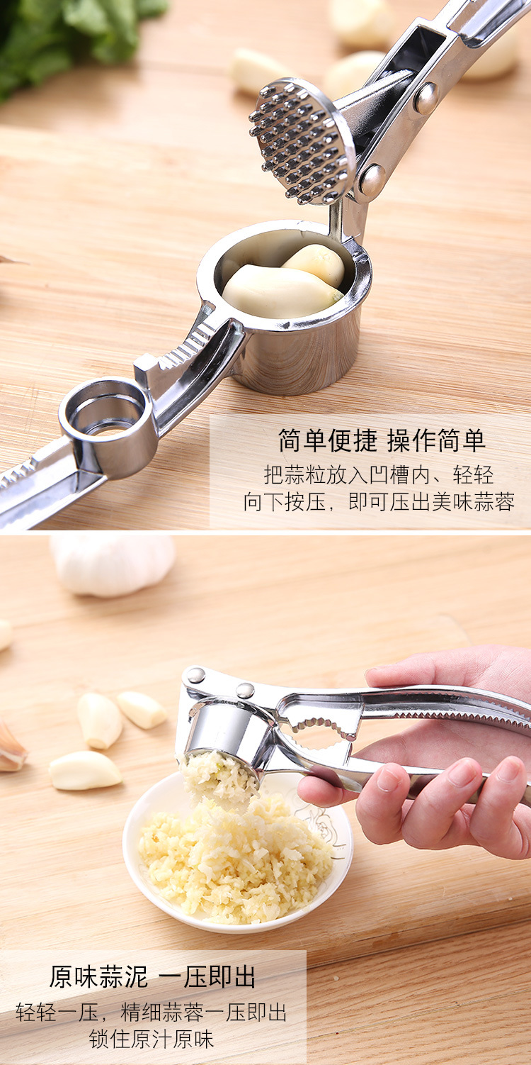 多功能厨房压蒜神器蒜泥器蒜夹子加固型锌合金不锈钢手动拉式压蒜器