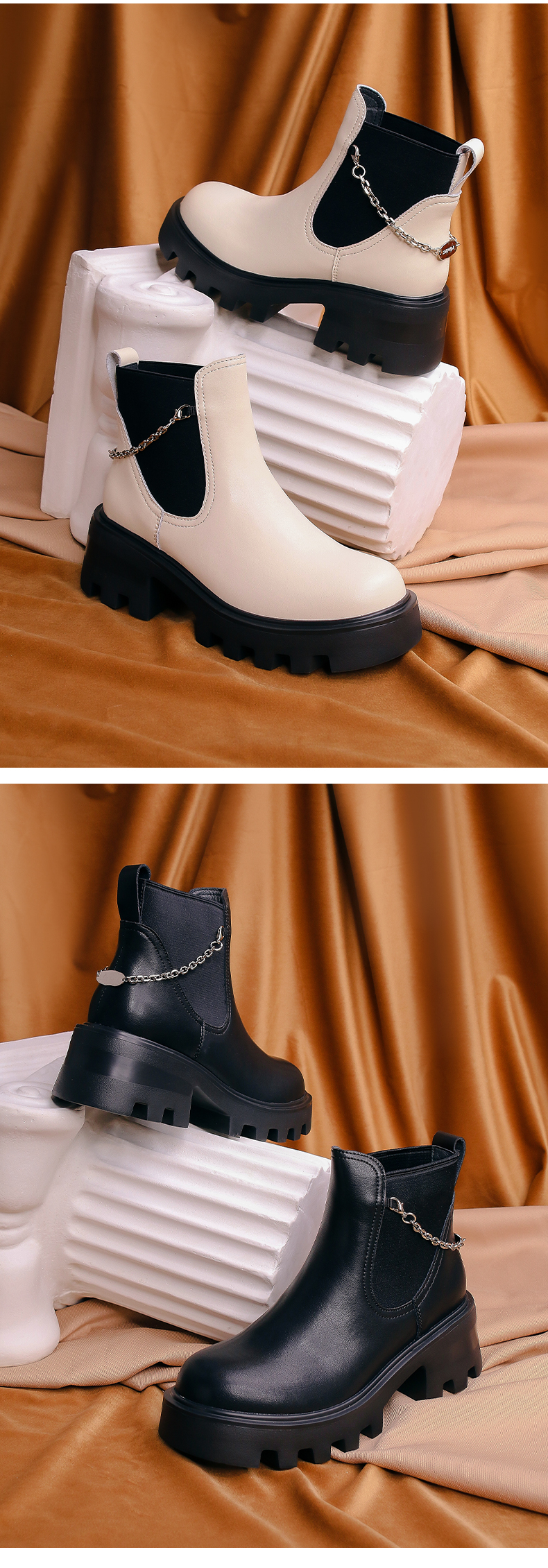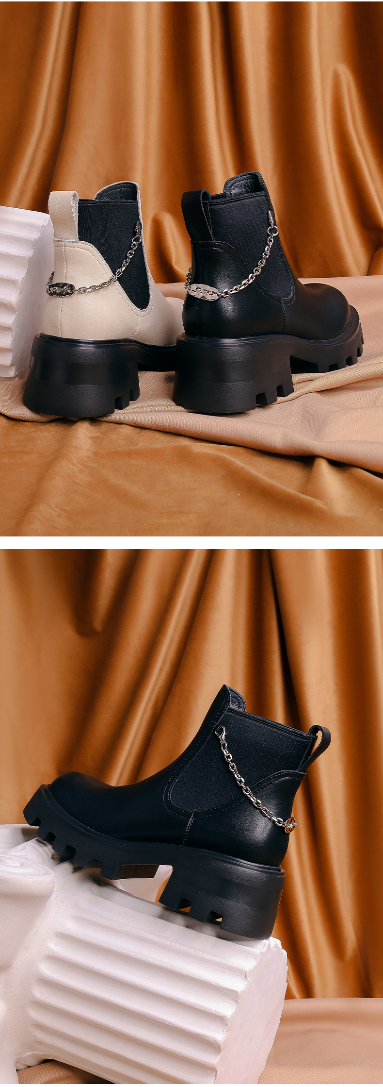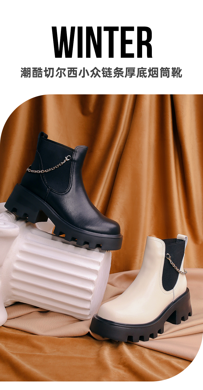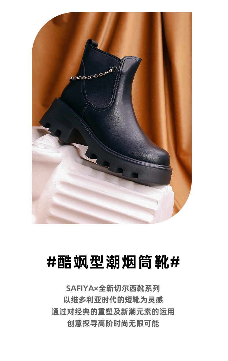 【春节不打烊】Safiya/索菲娅 厚底烟筒靴(有加绒款)2022秋冬新款小众短靴链条粗跟切尔西靴 SF24116067
