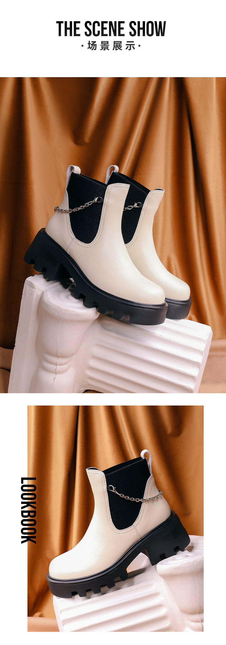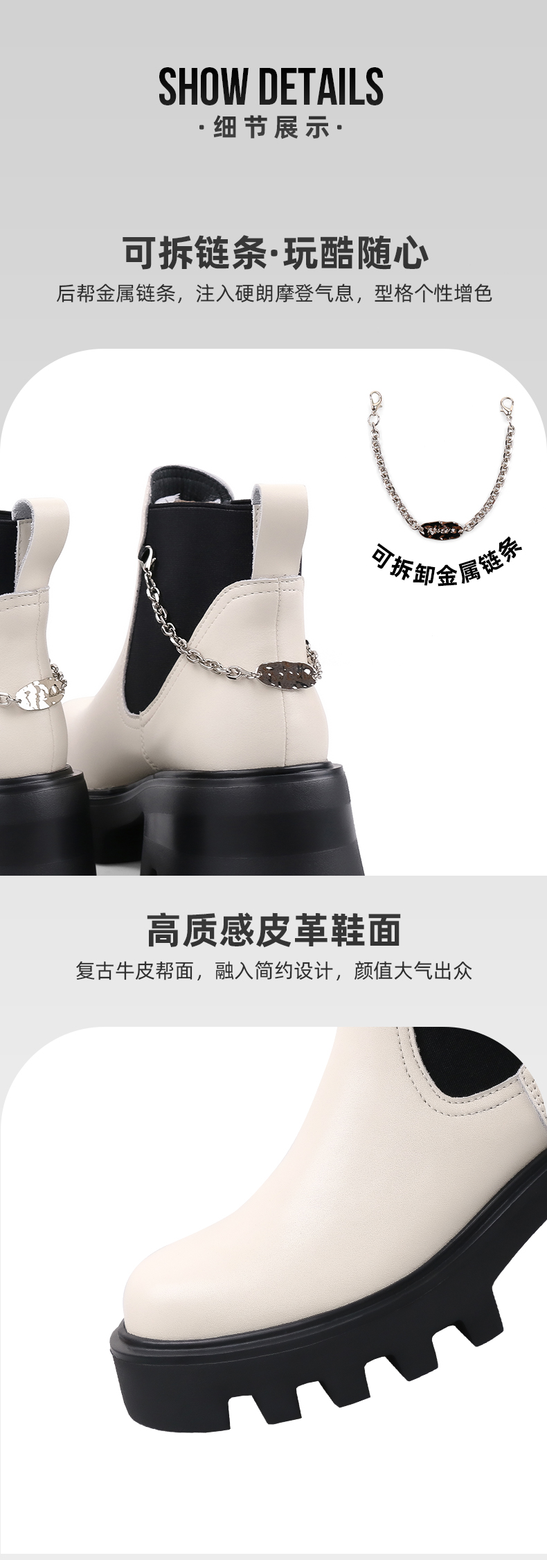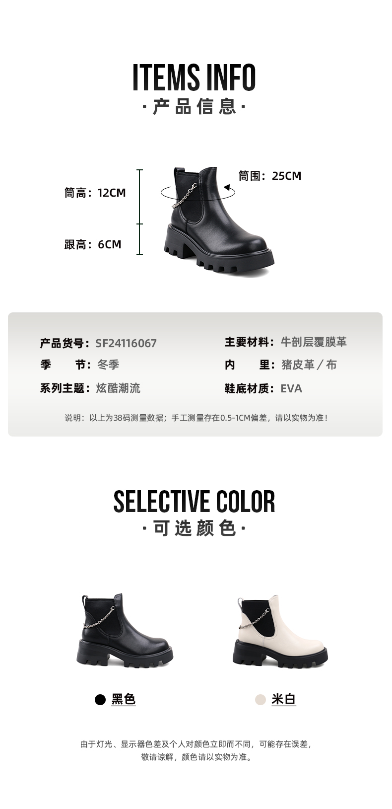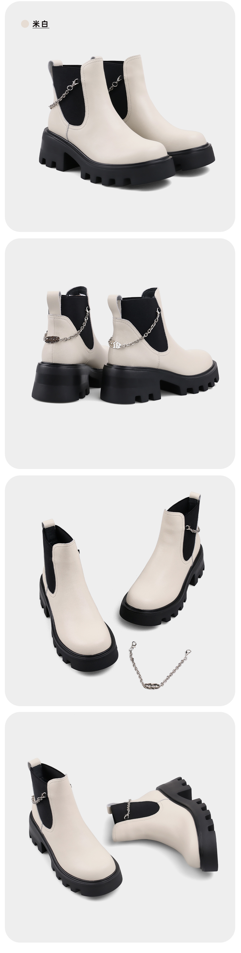 【春节不打烊】Safiya/索菲娅 厚底烟筒靴(有加绒款)2022秋冬新款小众短靴链条粗跟切尔西靴 SF24116067