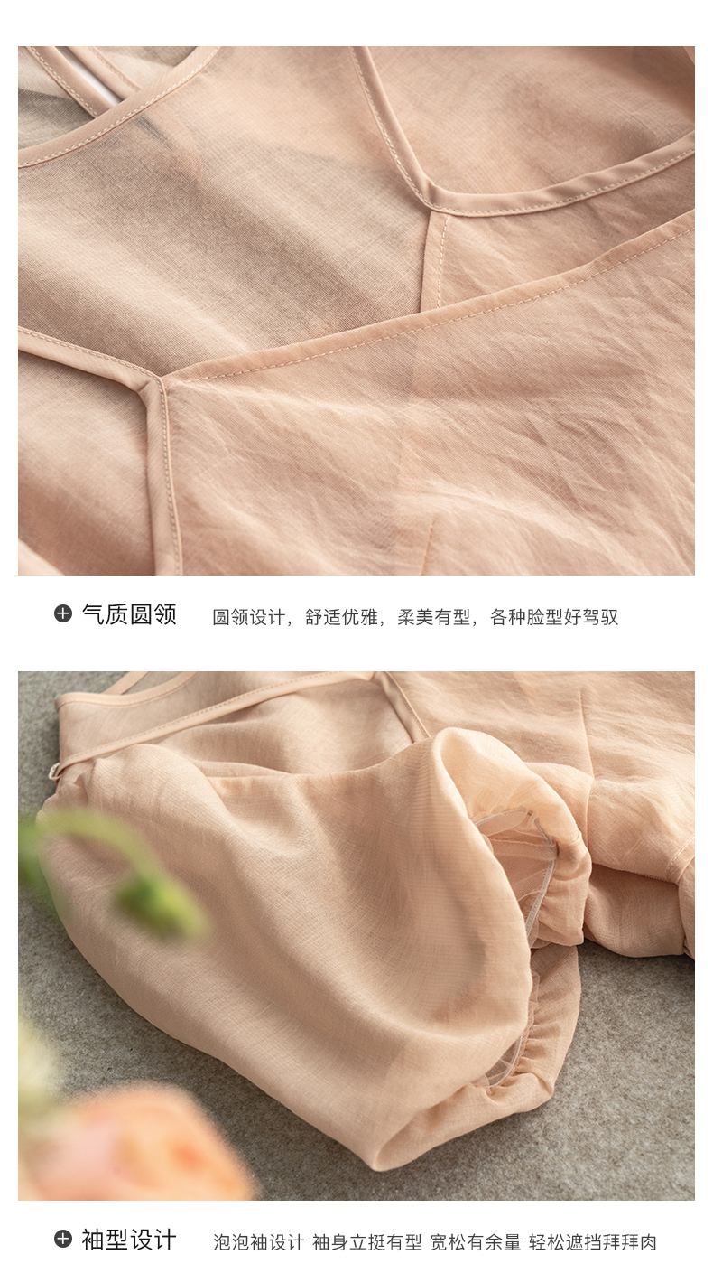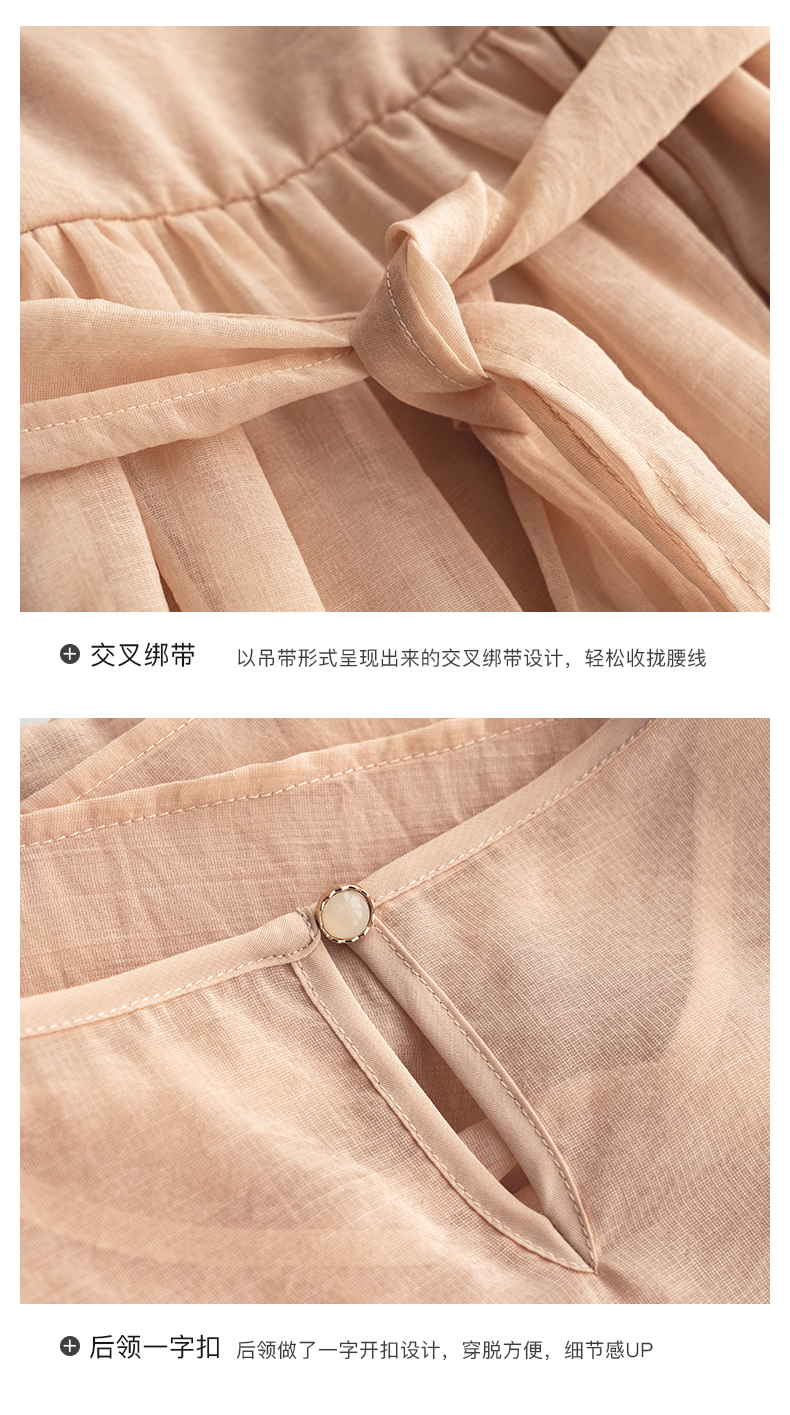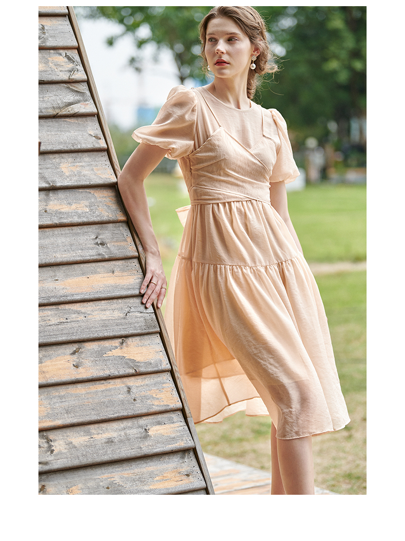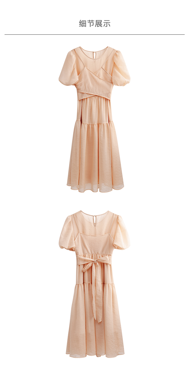 欧芮儿杏粉色连衣裙2021新款夏收腰显瘦法式泡泡纱优雅仙气女神裙