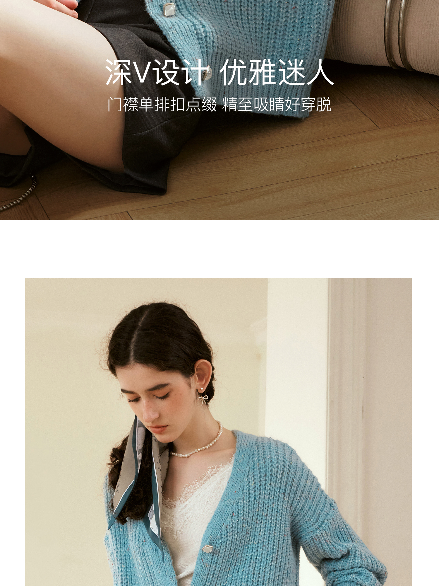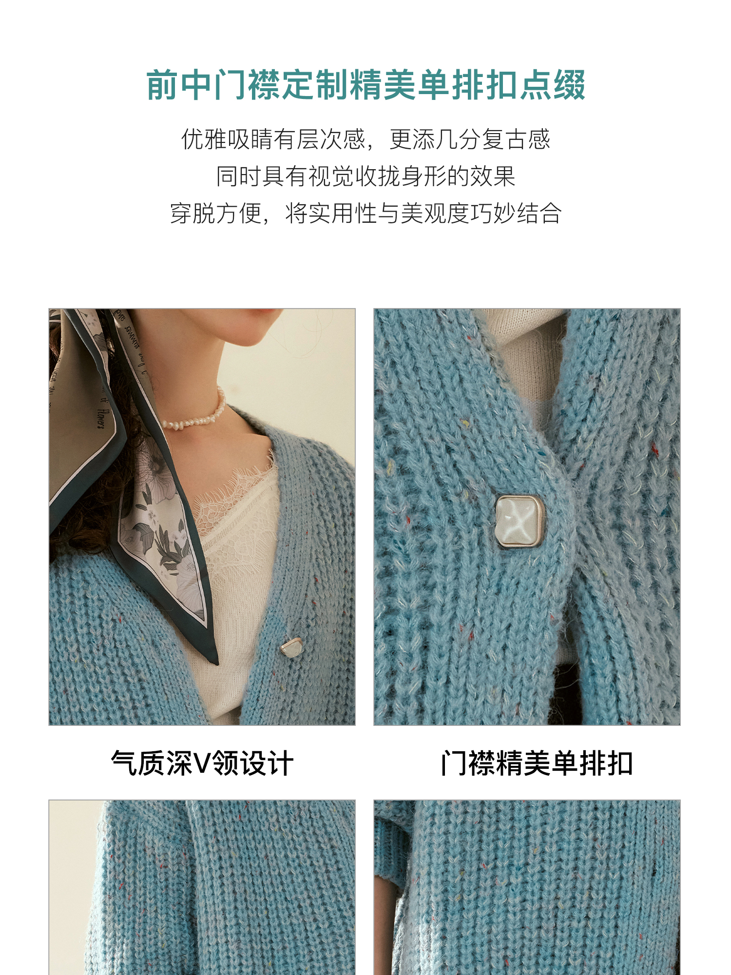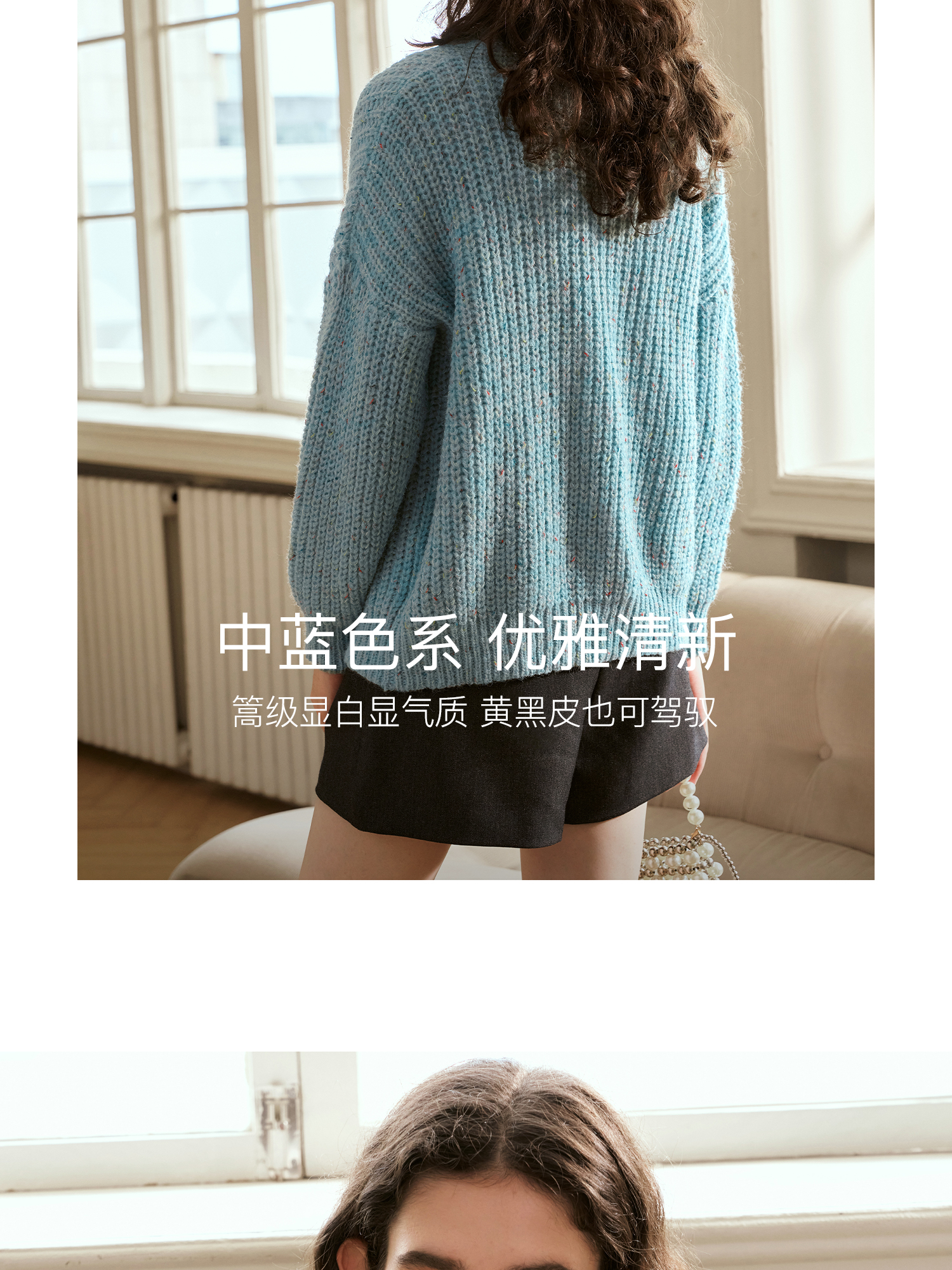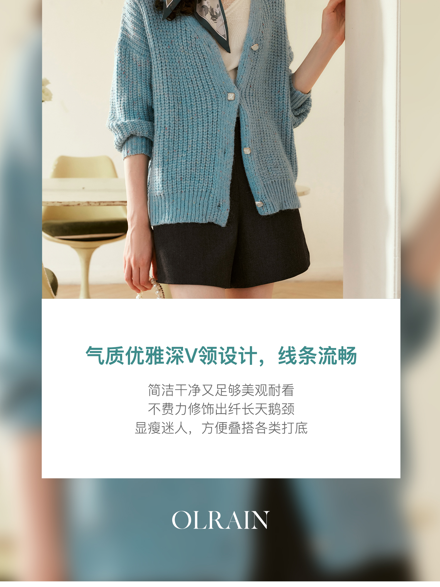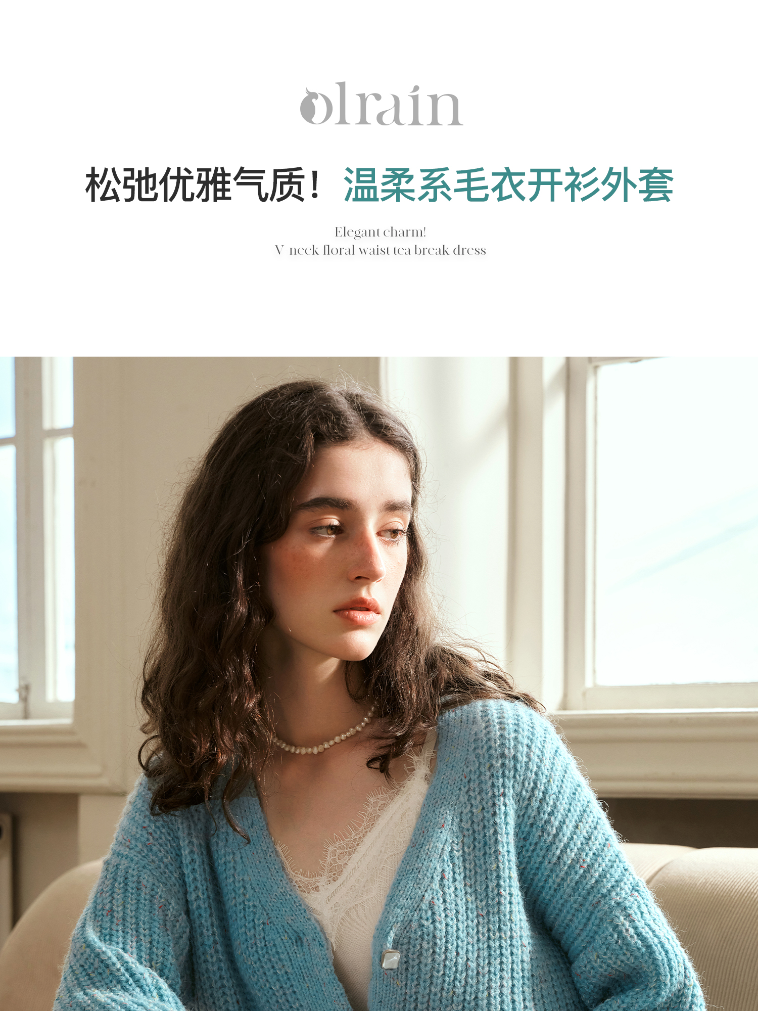 OLrain欧芮儿法式蓝色毛衣女秋季2024年新款温柔风针织衫外套