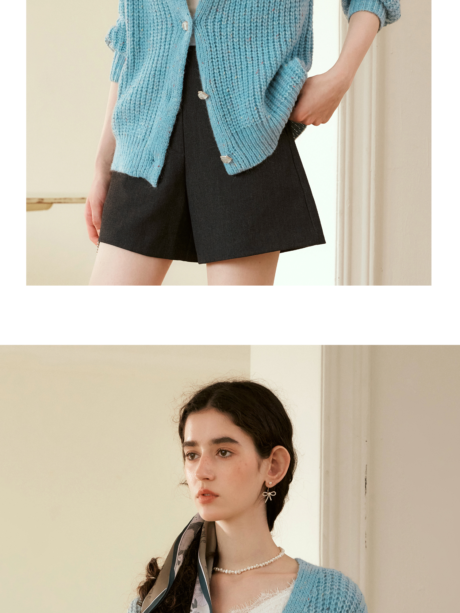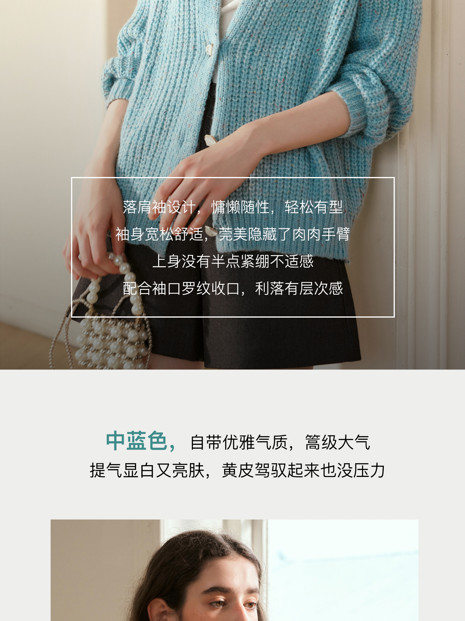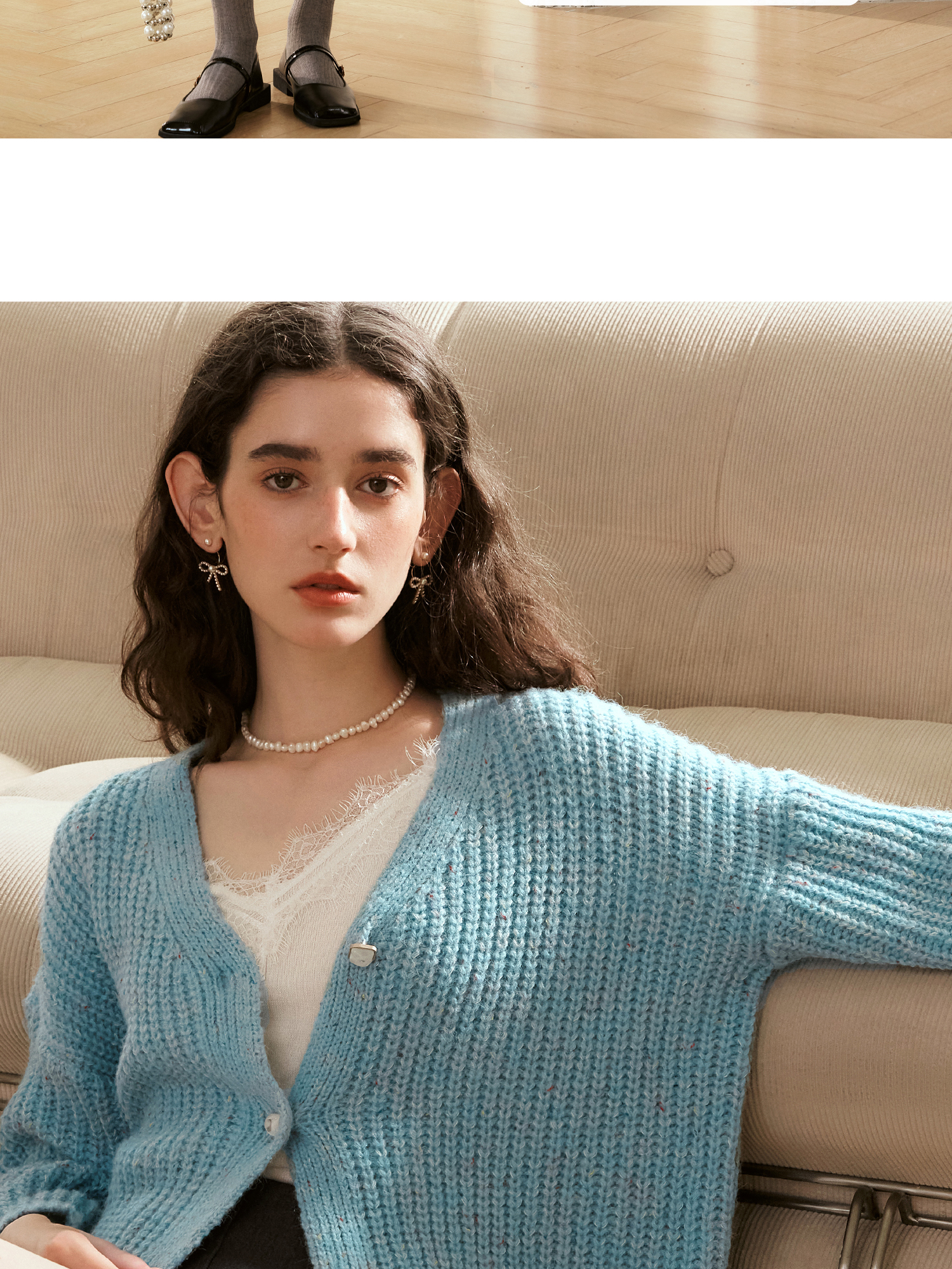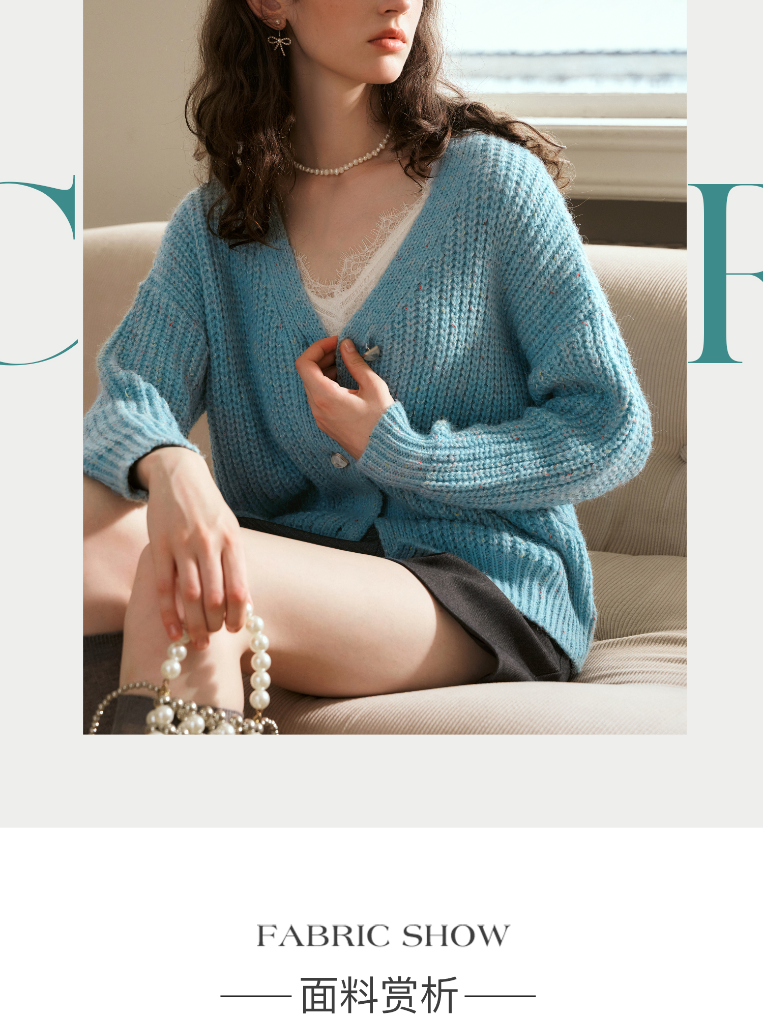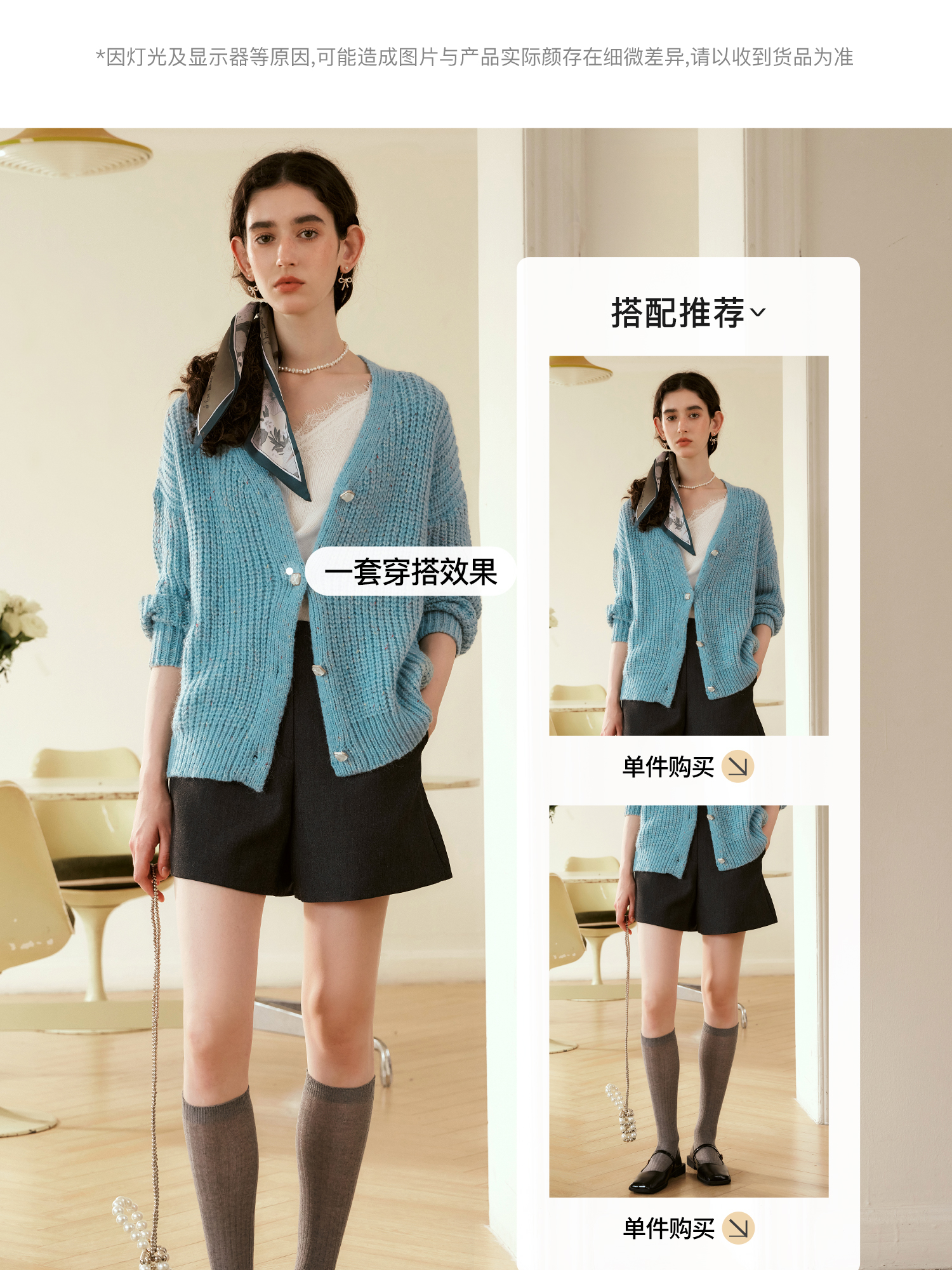 OLrain欧芮儿法式蓝色毛衣女秋季2024年新款温柔风针织衫外套