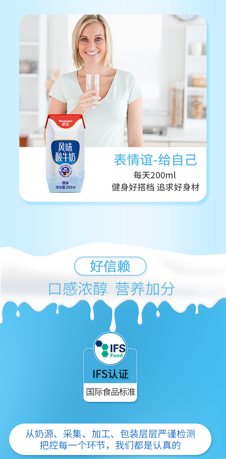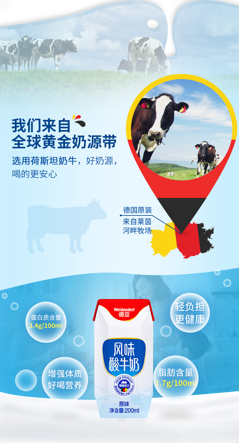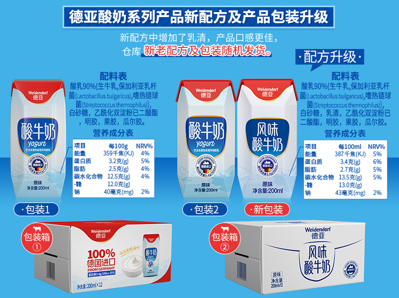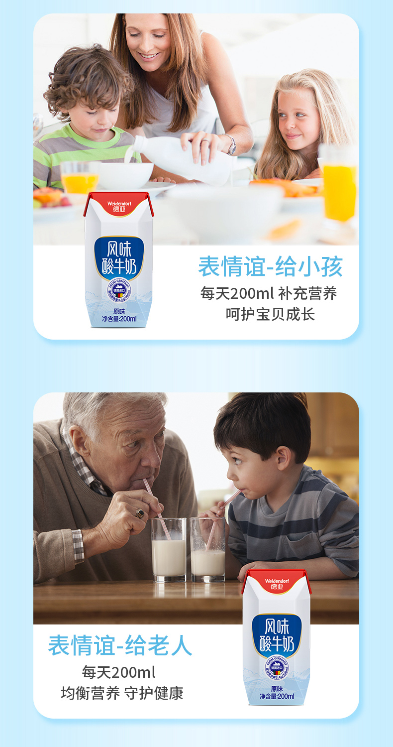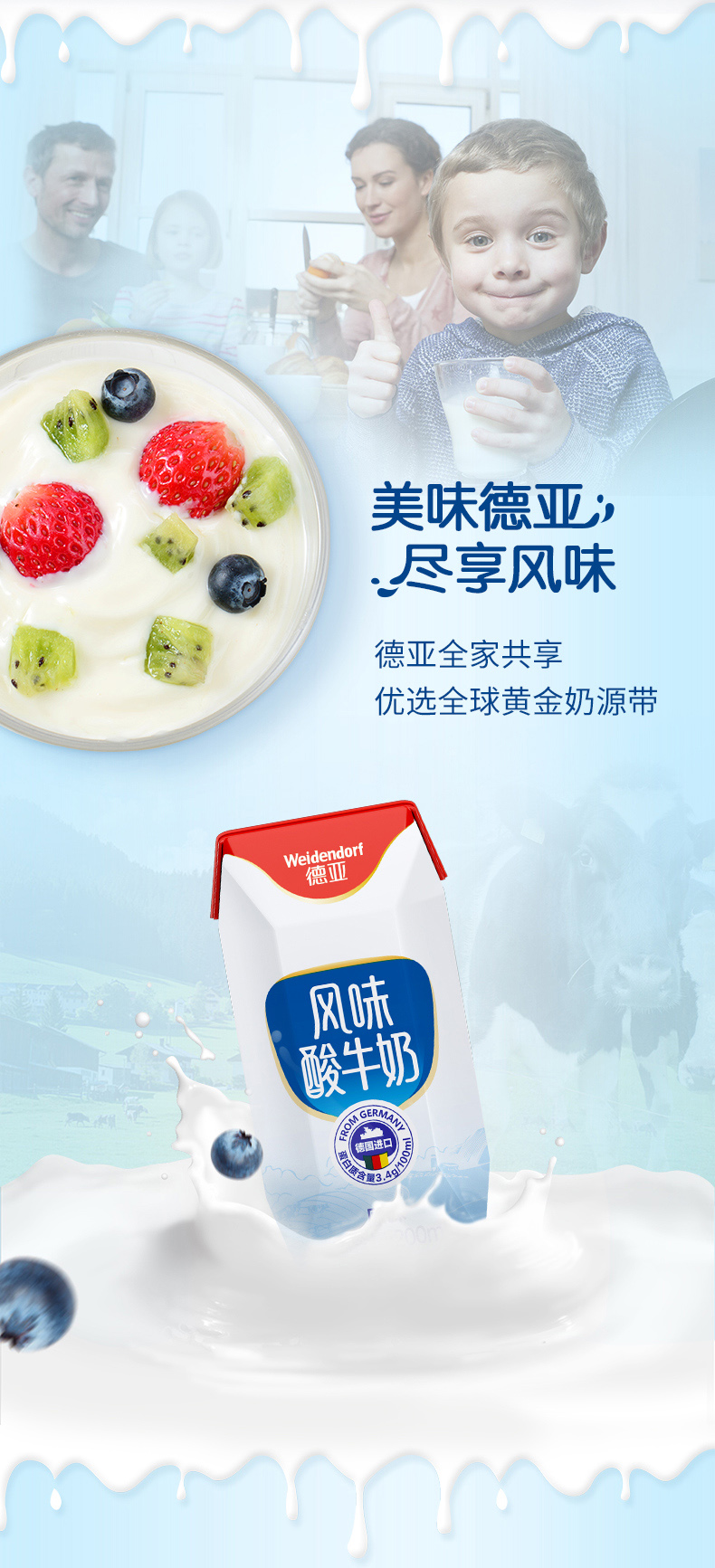 德国进口酸奶 德亚(Weidendorf)常温原味酸牛奶 200ml*12盒 整箱装 自营酸奶