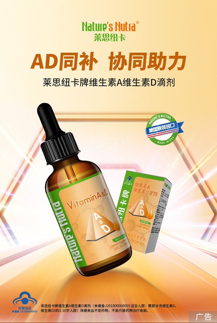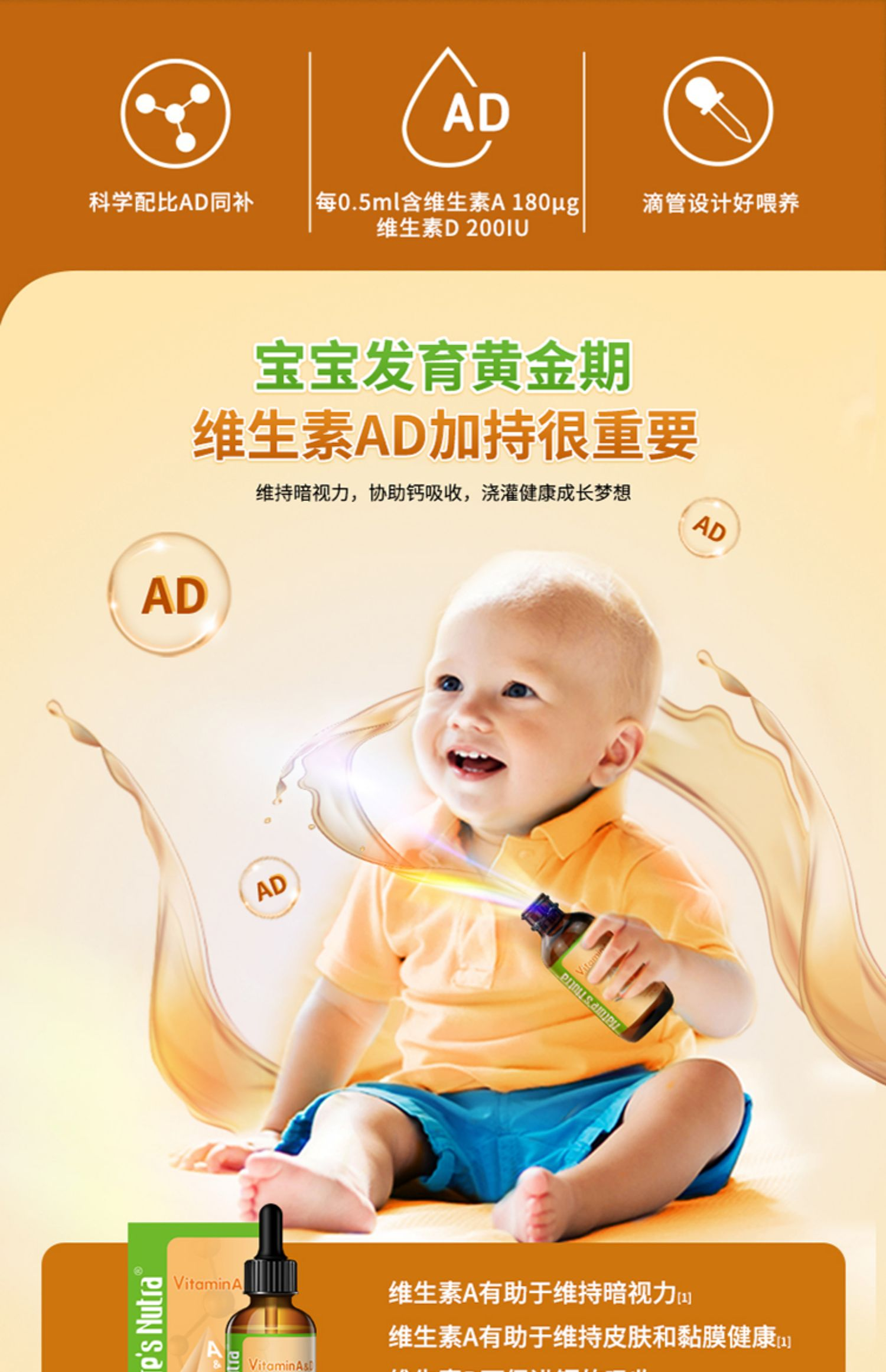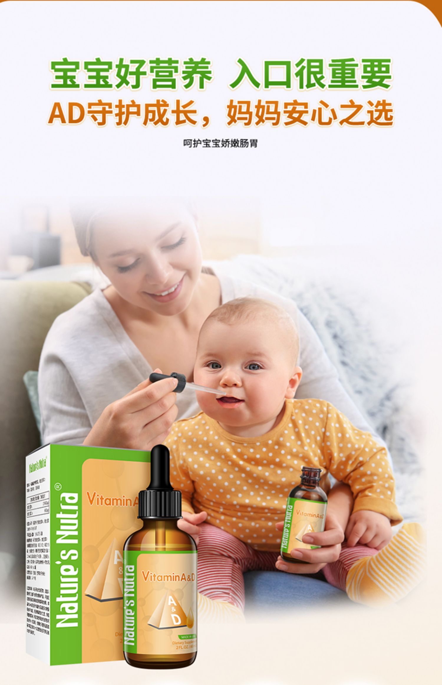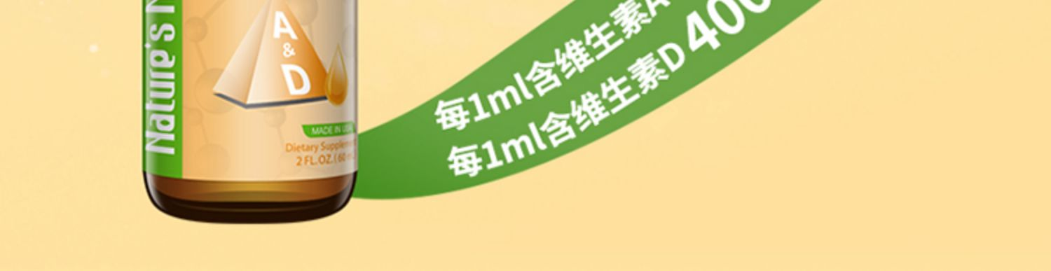 【金字塔版】莱思纽卡 Nature's Nutra 美国进口ad滴剂宝宝AD儿童维生素A维生素D液态营养滴剂60ml