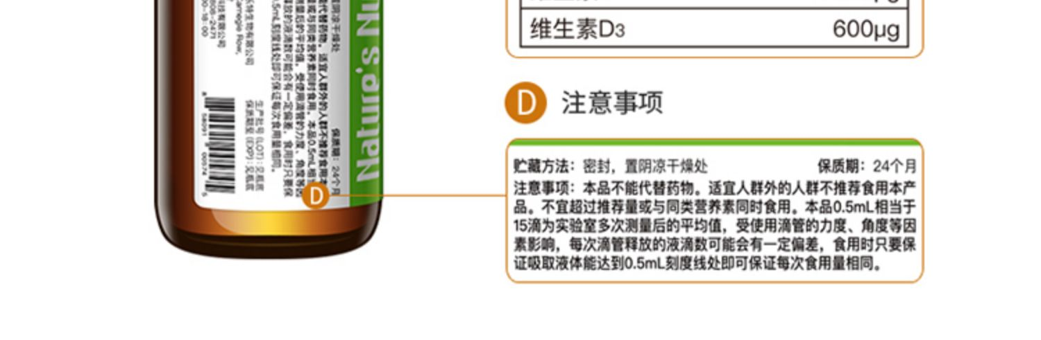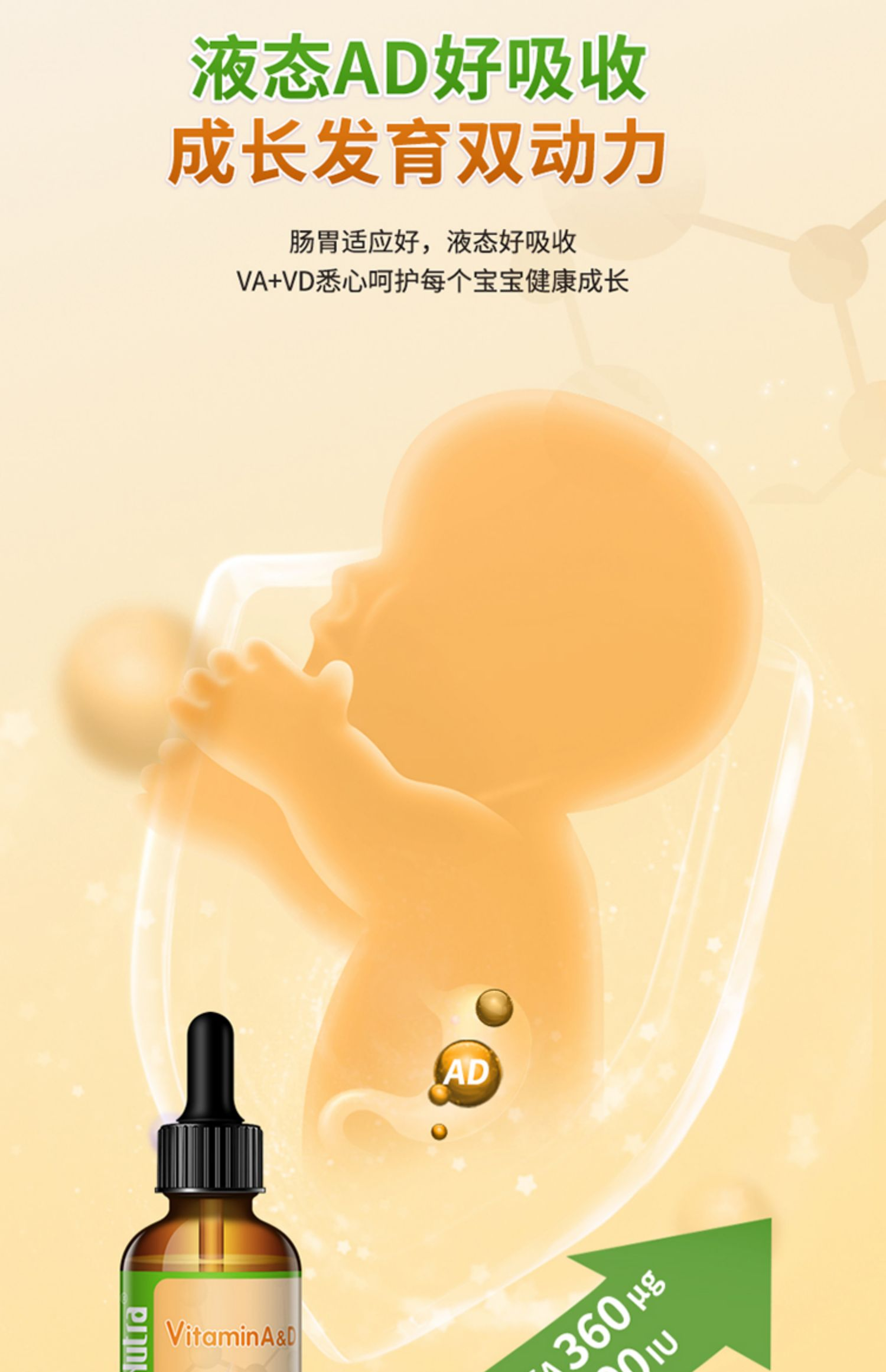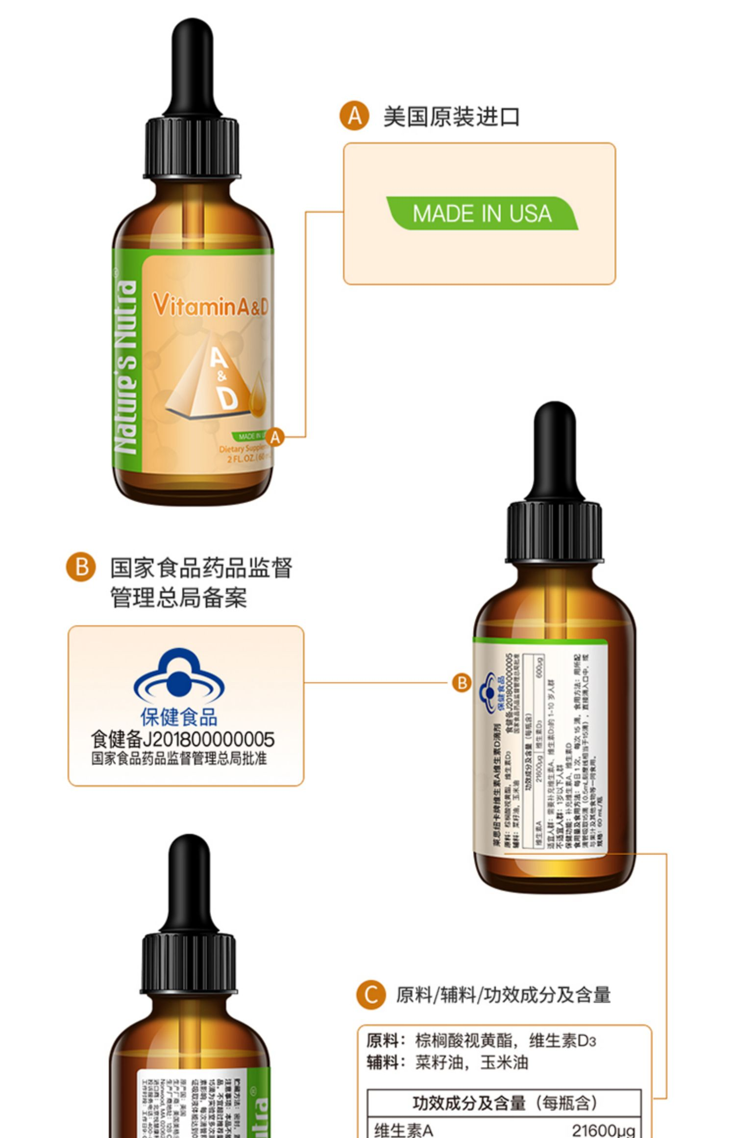 【金字塔版】莱思纽卡 Nature's Nutra 美国进口ad滴剂宝宝AD儿童维生素A维生素D液态营养滴剂60ml