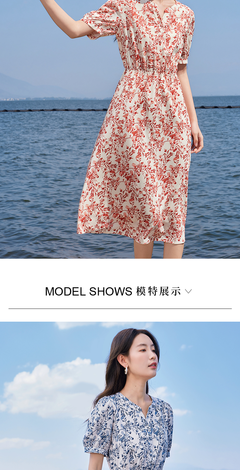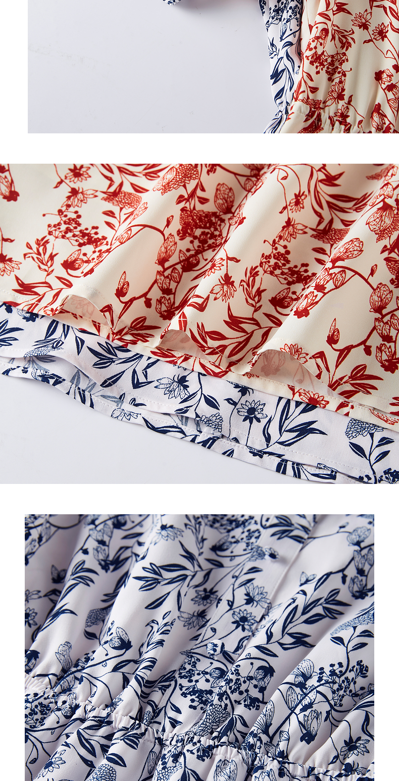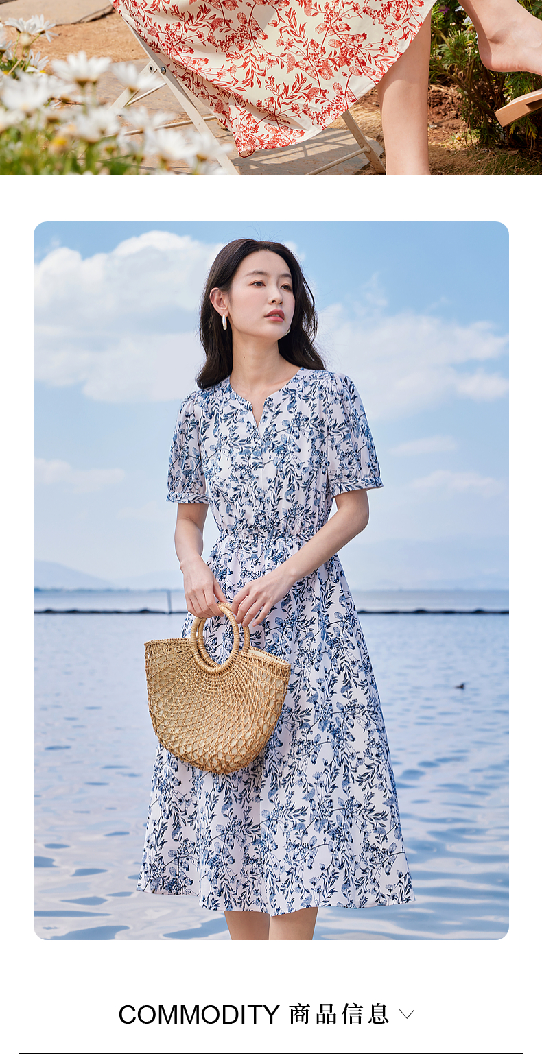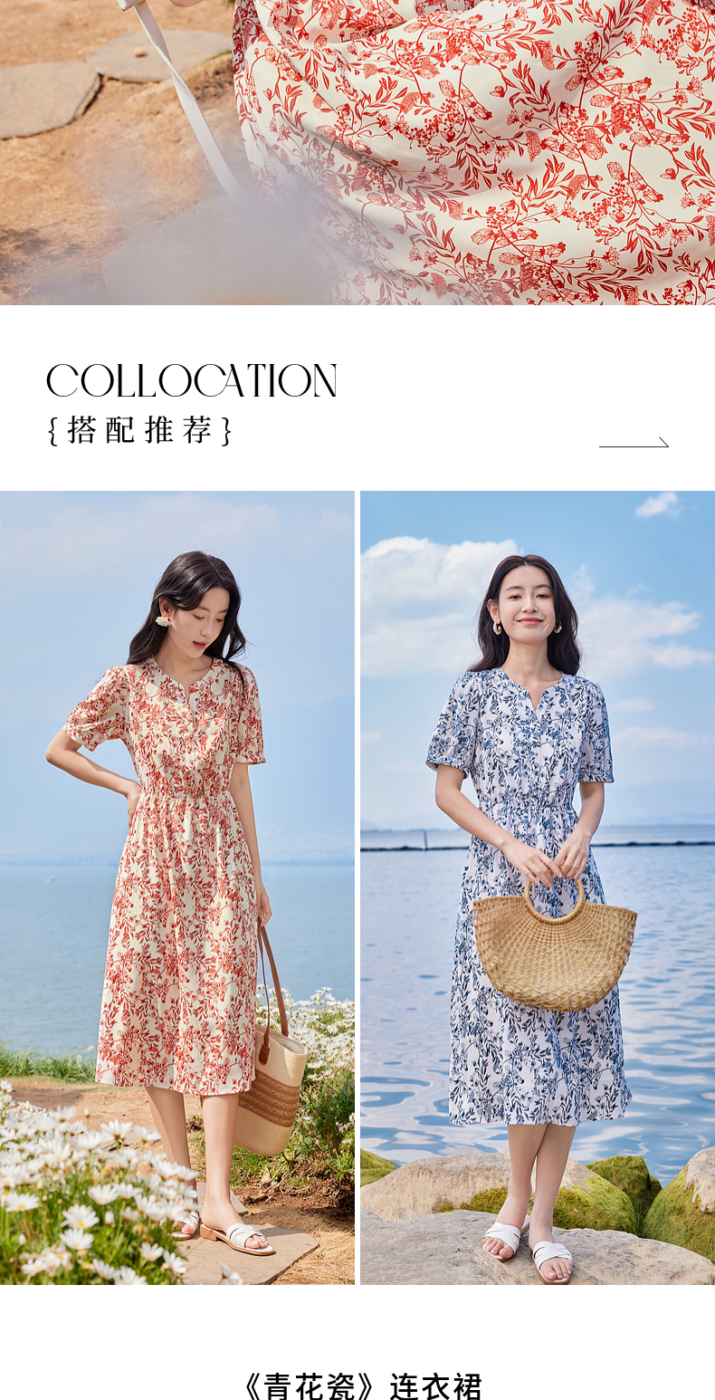 【专属特价】熙世界红色碎花雪纺连衣裙夏季收腰显瘦法式海边度假桔梗茶歇裙
