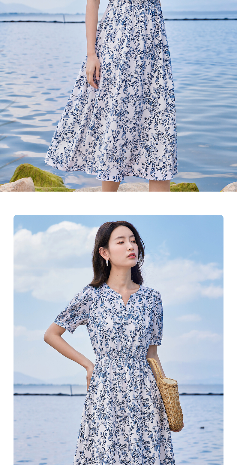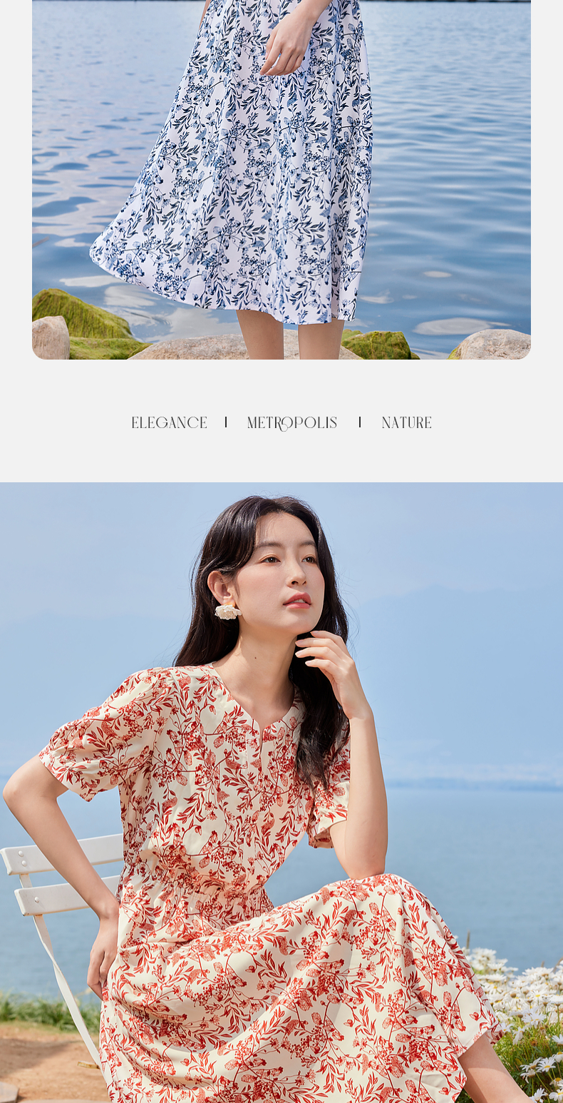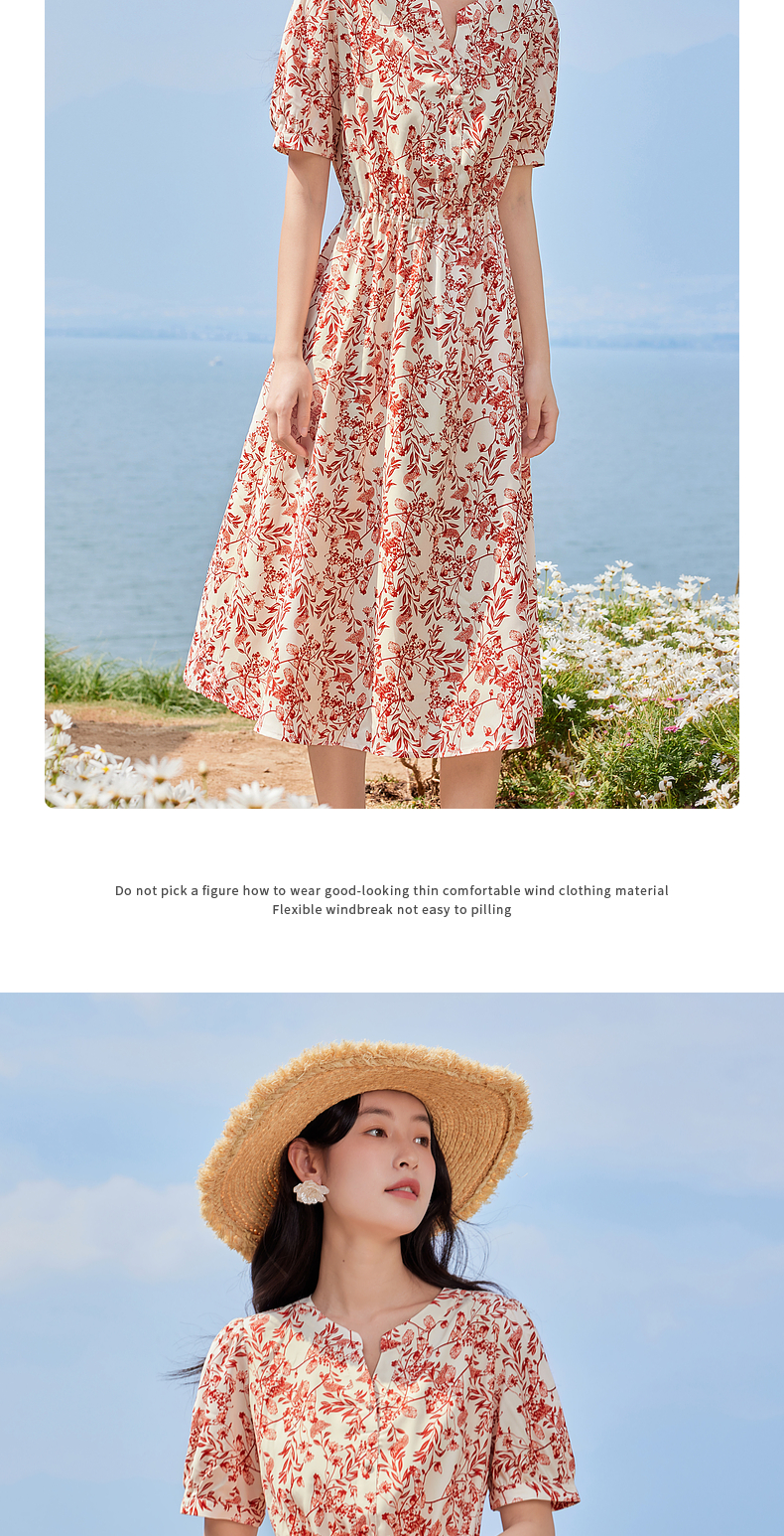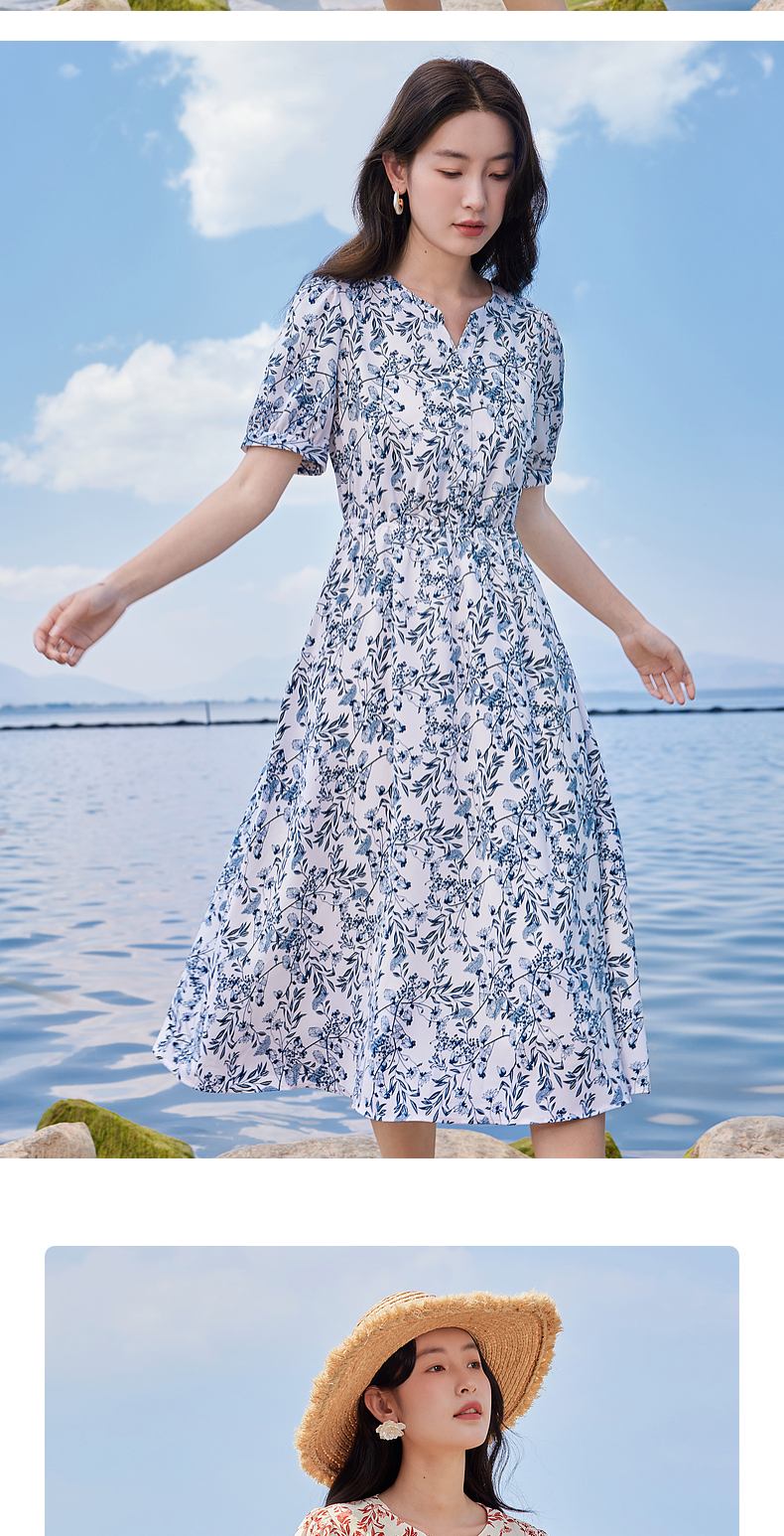 【专属特价】熙世界红色碎花雪纺连衣裙夏季收腰显瘦法式海边度假桔梗茶歇裙