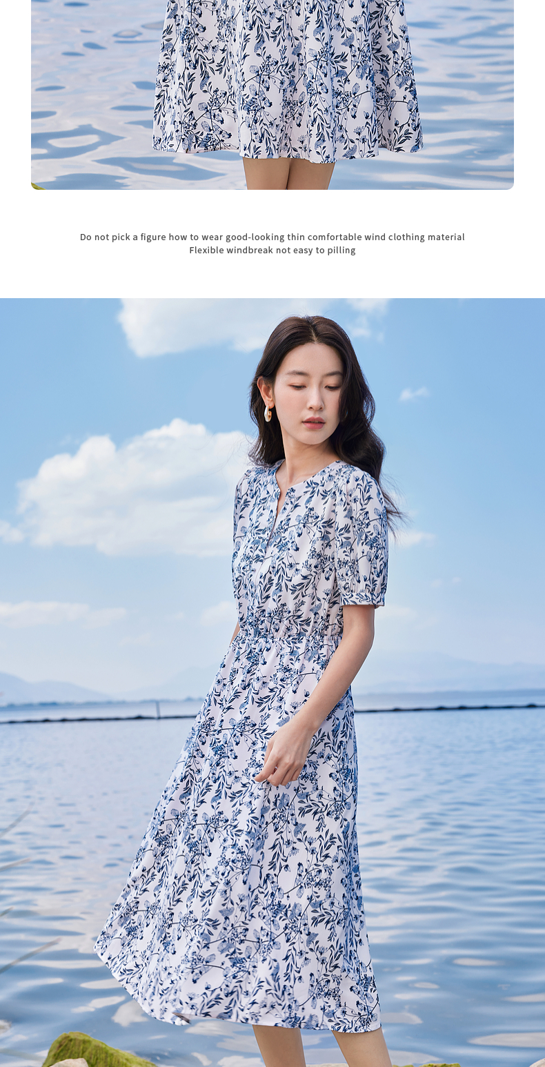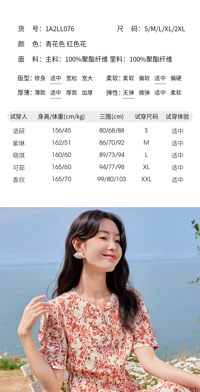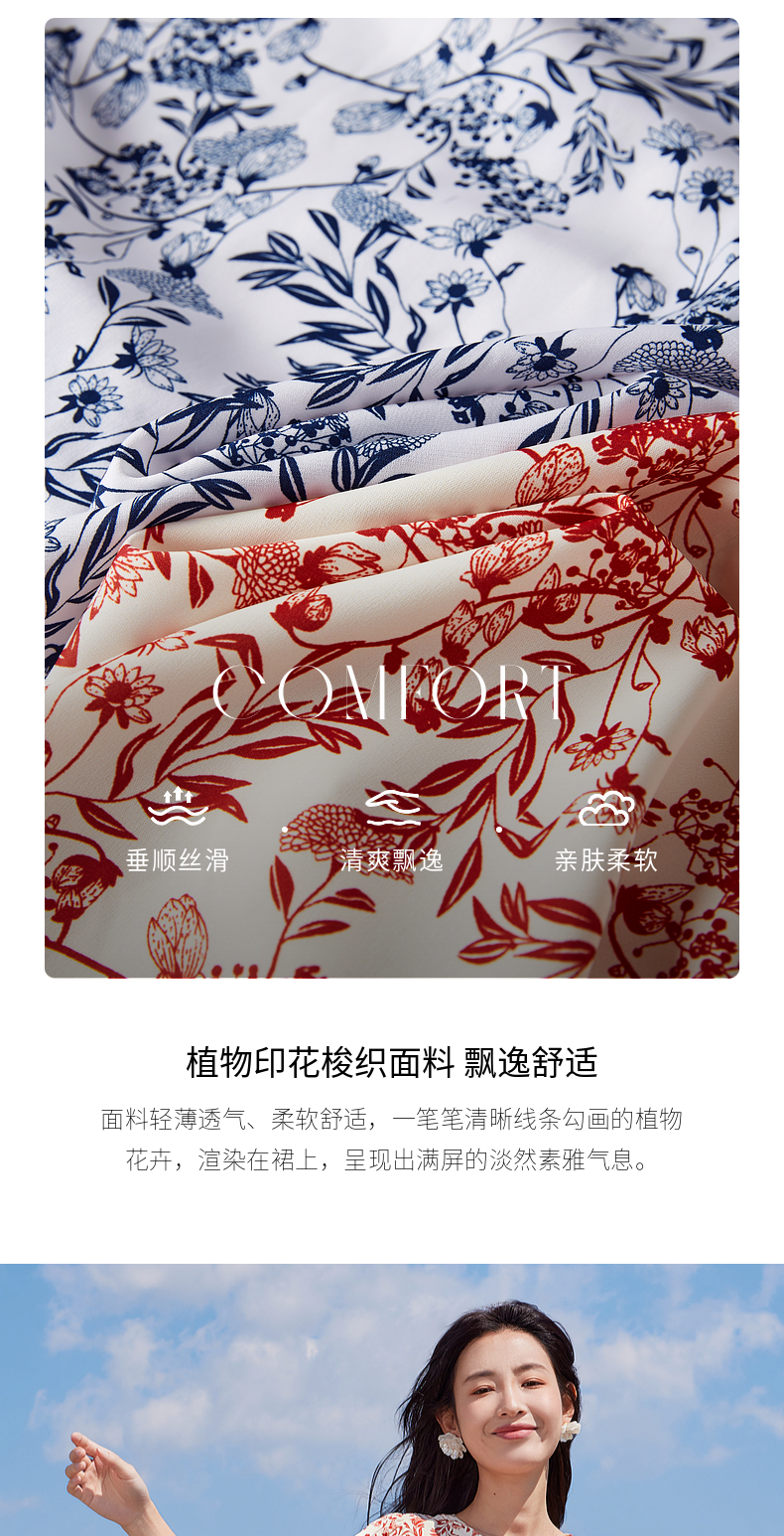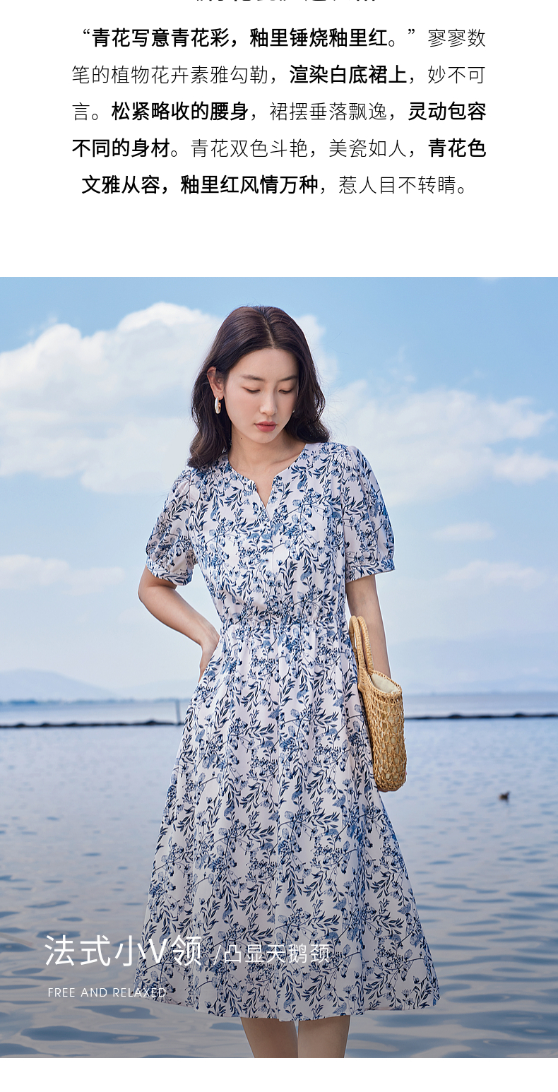 【专属特价】熙世界红色碎花雪纺连衣裙夏季收腰显瘦法式海边度假桔梗茶歇裙