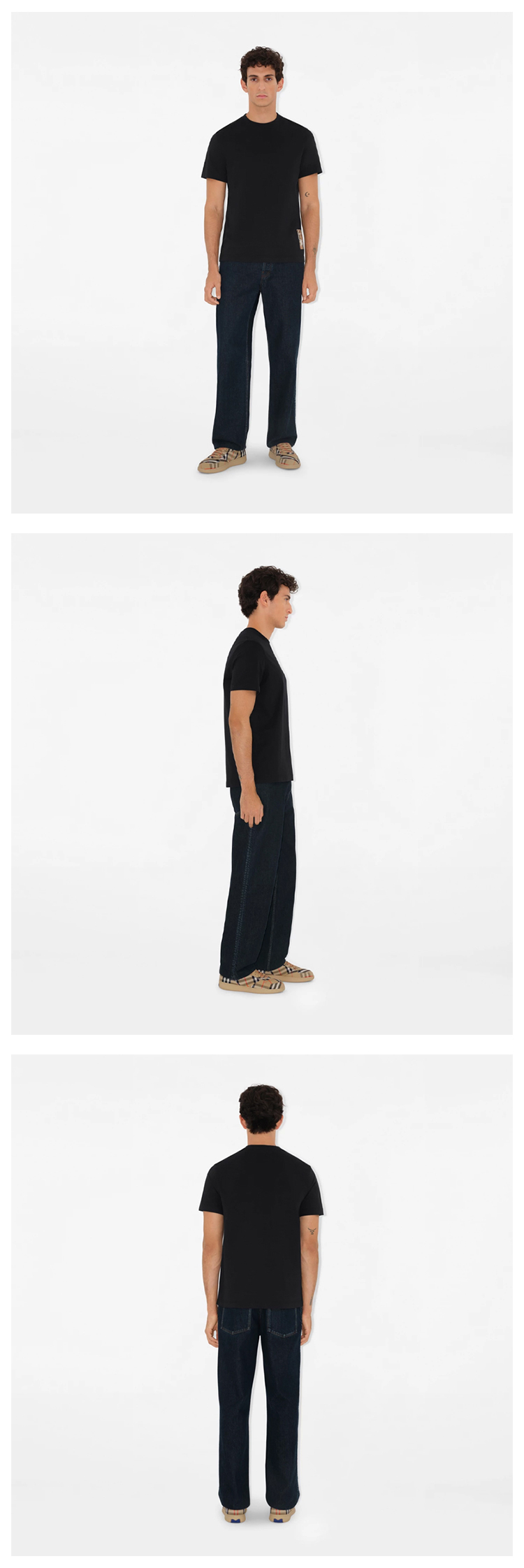 【三】BURBERRY 巴宝莉 男士马术骑士格纹标签棉质圆领短袖T恤 黑色 8104889 A1189