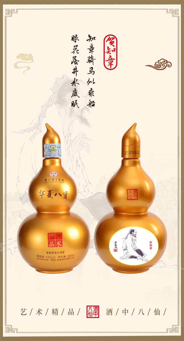 【贵州茅台集团】华夏八贤 53度酱香型白酒500ml* 8瓶礼盒装金瓶