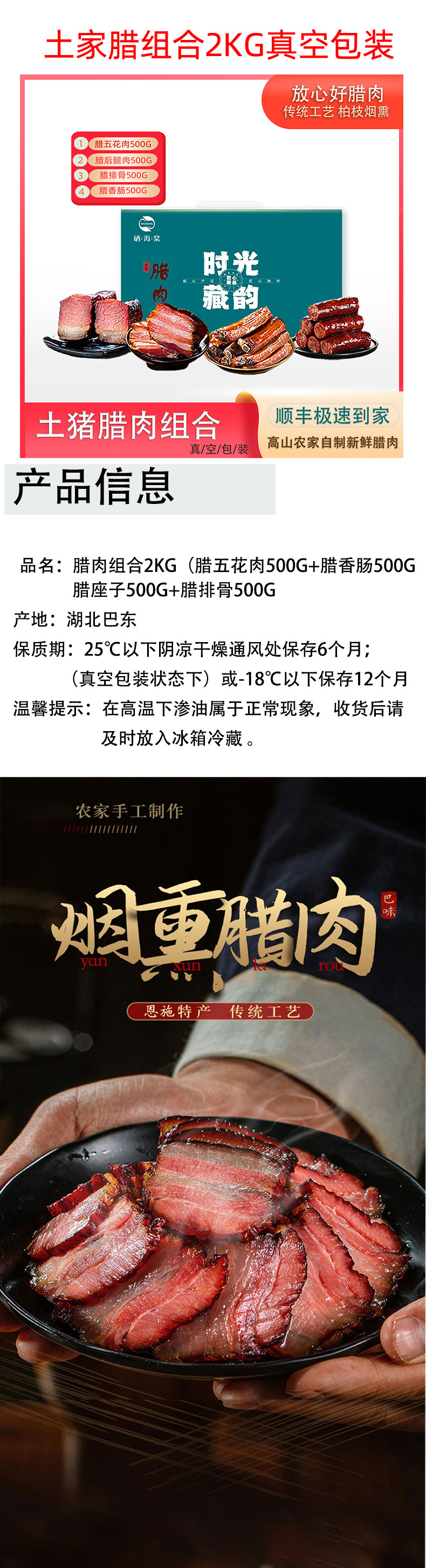 湖北巴东 施彩 腊肉组合 2kg