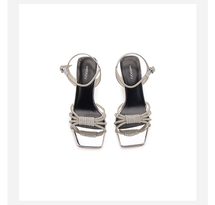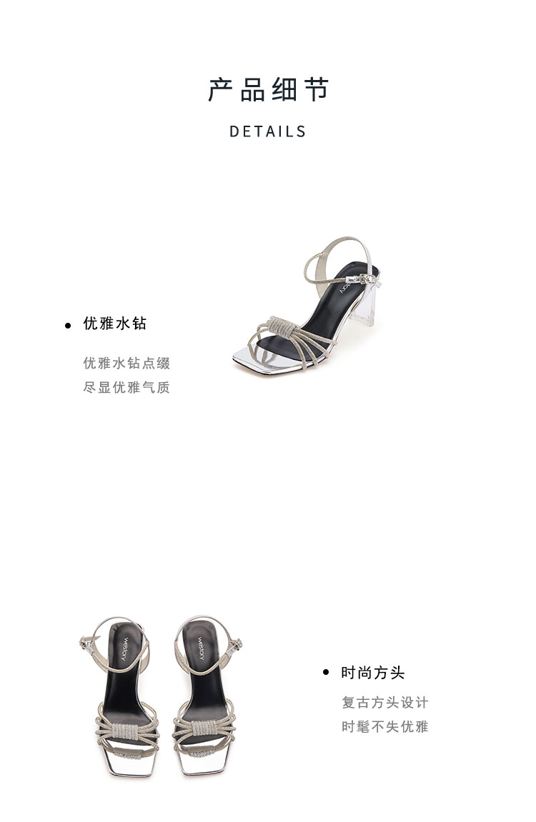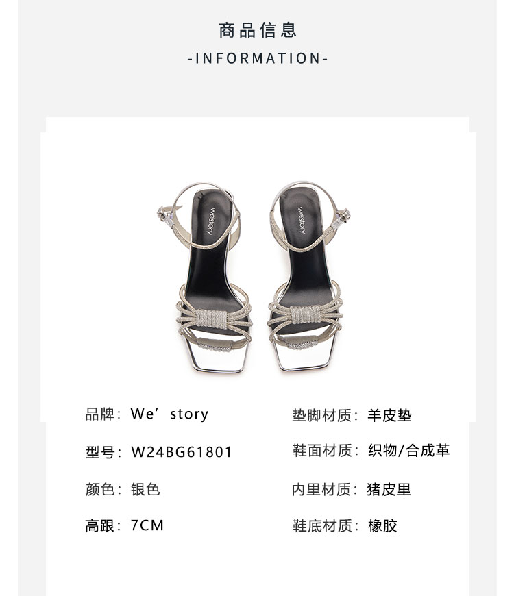 westory春季新款中跟方头露趾系带凉鞋W24BG61801