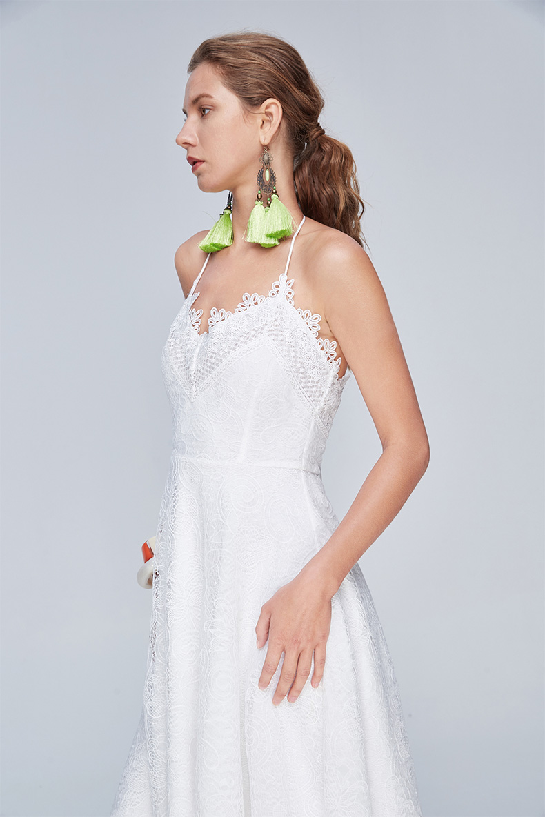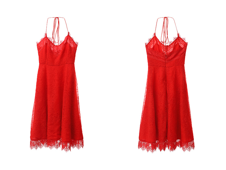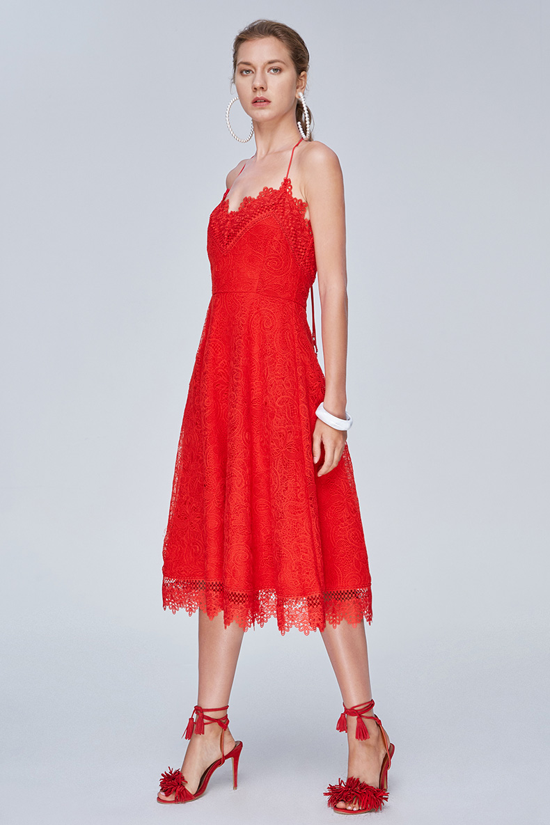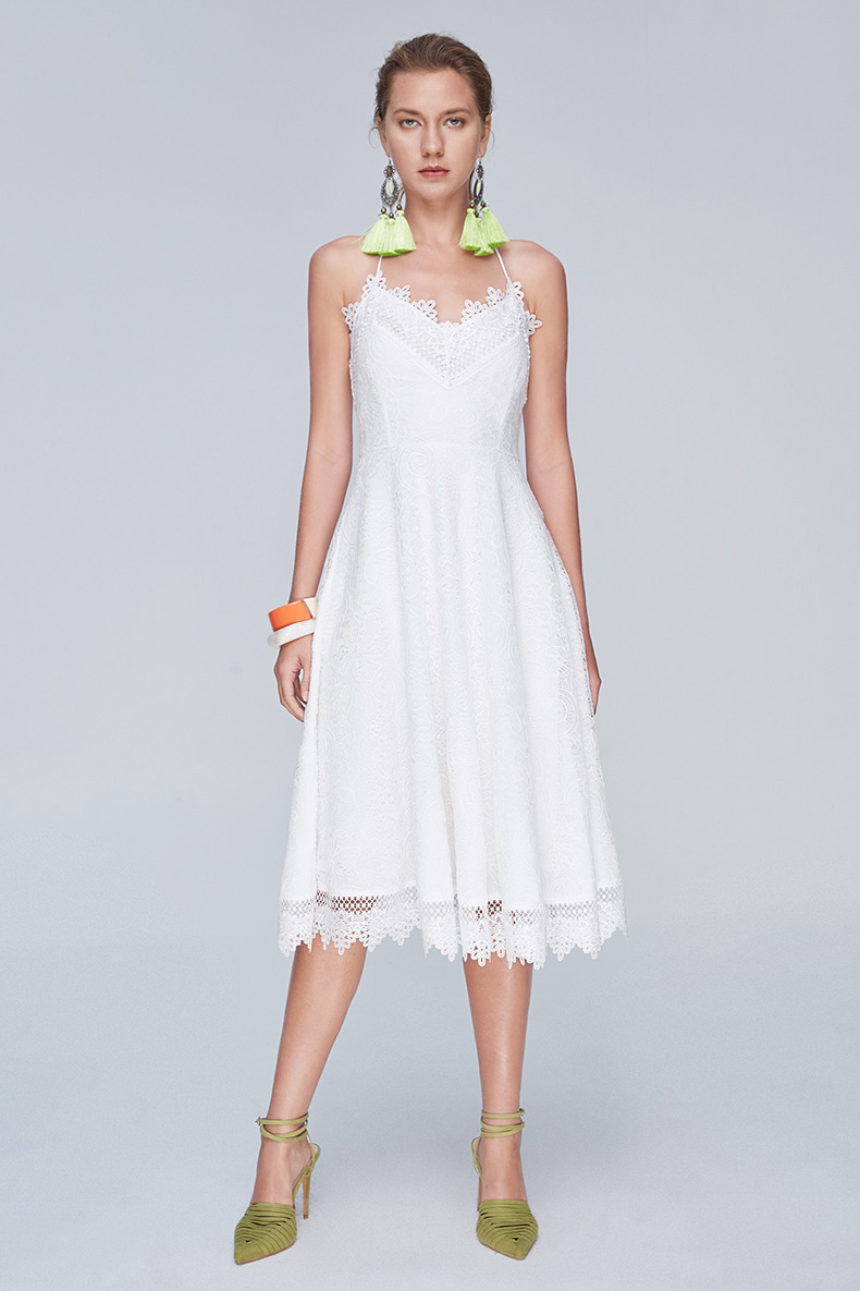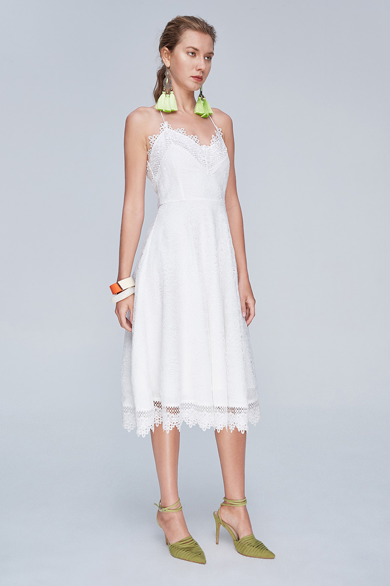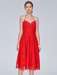Miss Sixty夏季V领气质性感绣花蕾丝露背无袖吊带连衣裙长裙子692DJ0680000