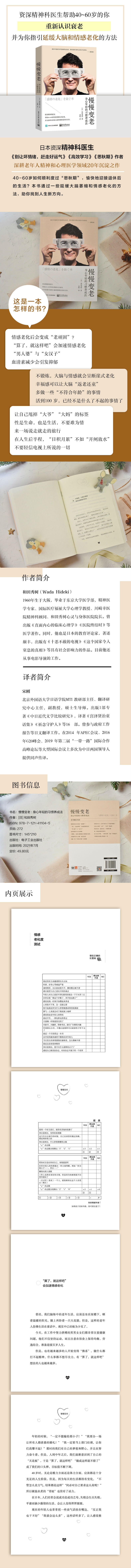 在本书中,作者主要面向40~60 岁的人士阐述了如何愉快平稳地度过"思秋期”,以及如何顺利地迎接退休后的生活。作者是一位资深的精神科医生,他认为这个时期的人虽然需要考虑各种各样的问题,但最重要的是要学会体恤自己,不要让大脑额叶萎缩,不要让情感老化,要为了保持情感年龄年轻而努力。在本书中,作者结合自己的工作经历和临床研究,总结了一些实用的方法。这些方法可以帮助读者保持身体和心理年轻,让晚年的生活变得丰富多彩。