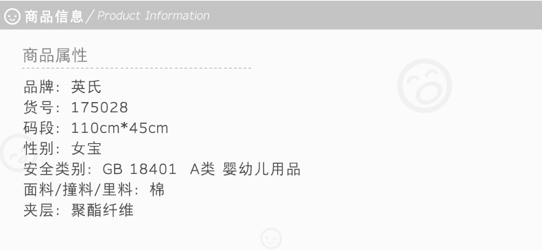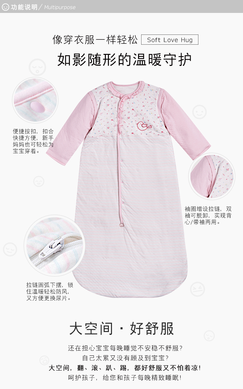英氏婴儿睡袋 男女宝宝防踢被四季通用单件2色175024 175028