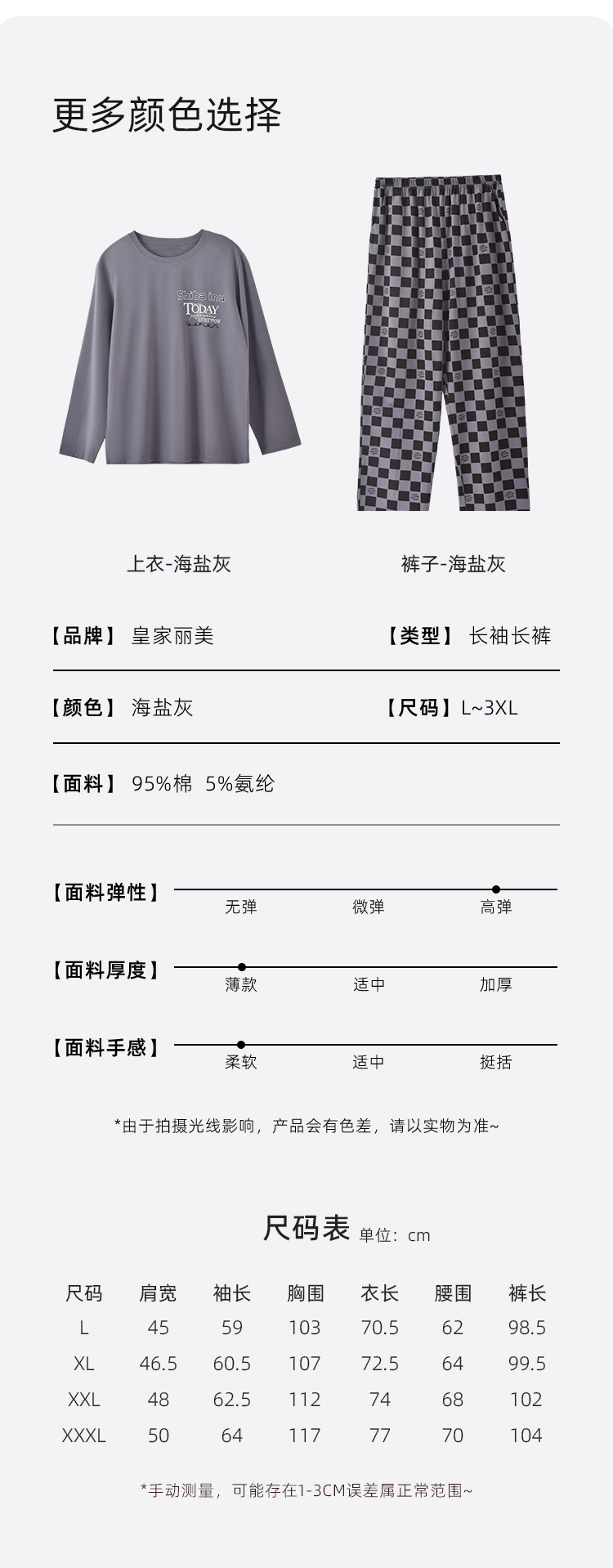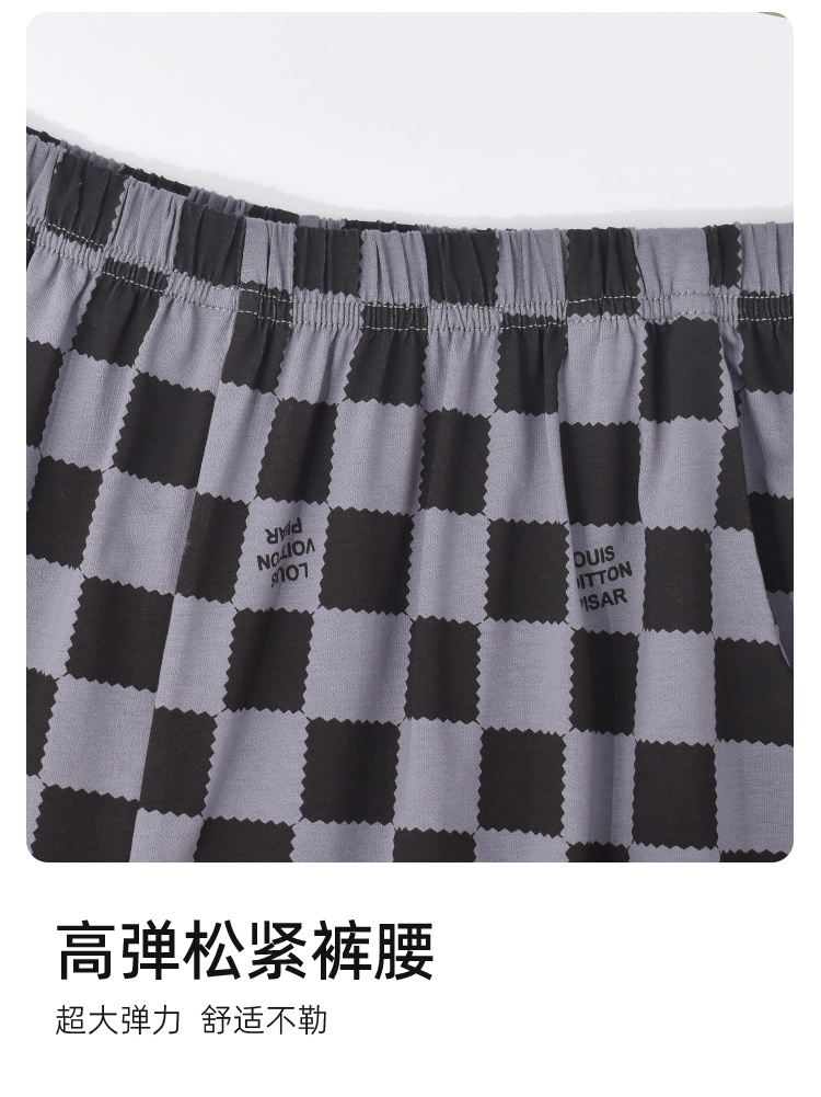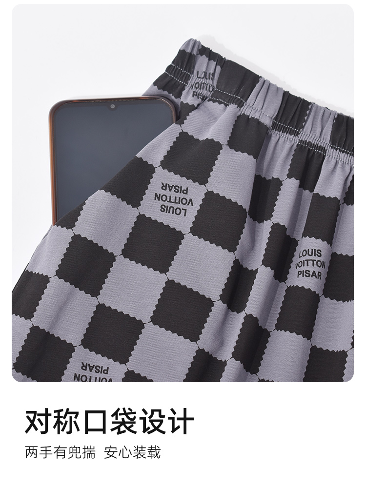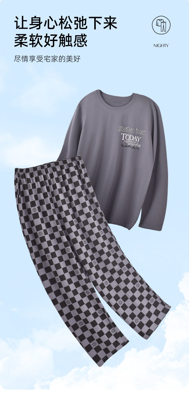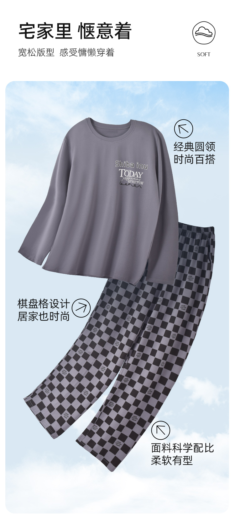 春秋款睡衣男款棉长袖棋盘格长裤黑色套头家居服春夏季套装JJT9937