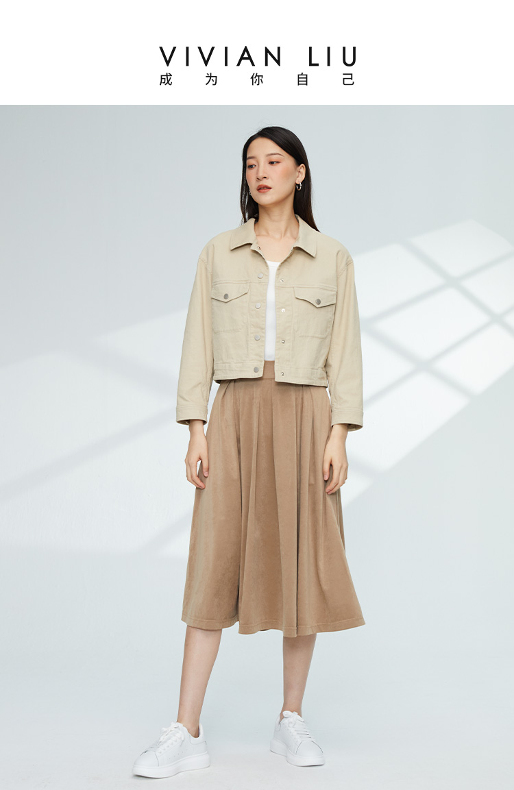 VIVIAN LIU薇薇安刘TR2354007秋女装新款腰部假兜装饰后开叉半裙