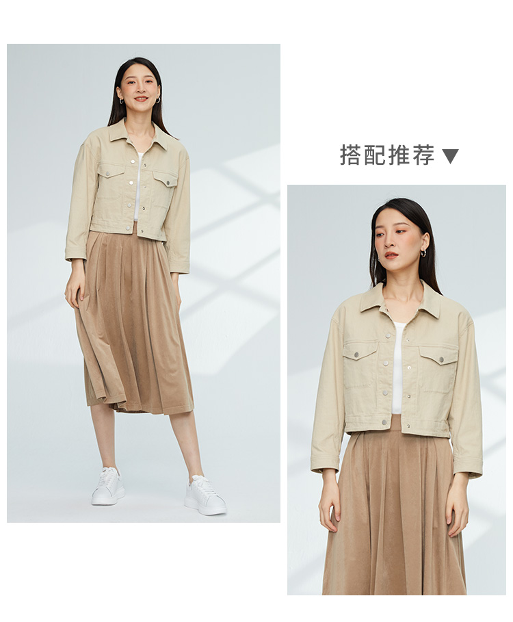 VIVIAN LIU R2433101夏女装新款时尚V领宽松短款长袖开襟外套