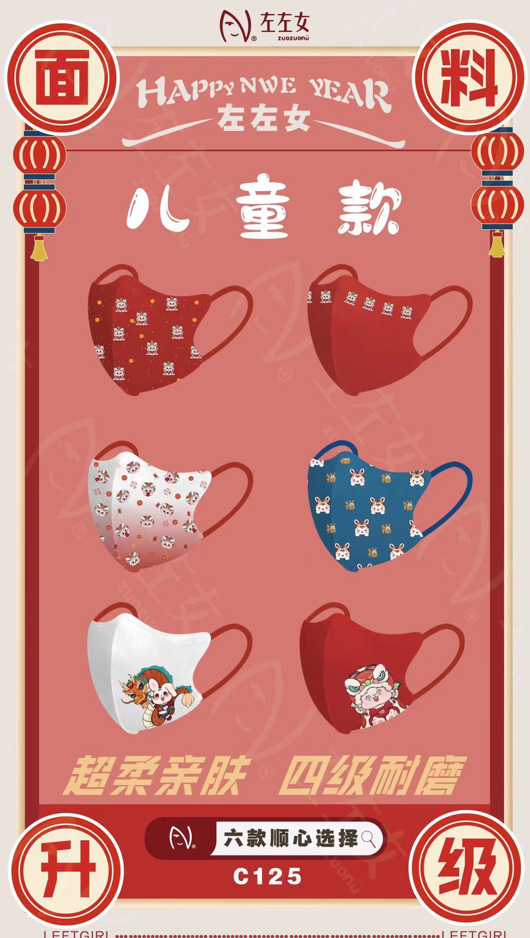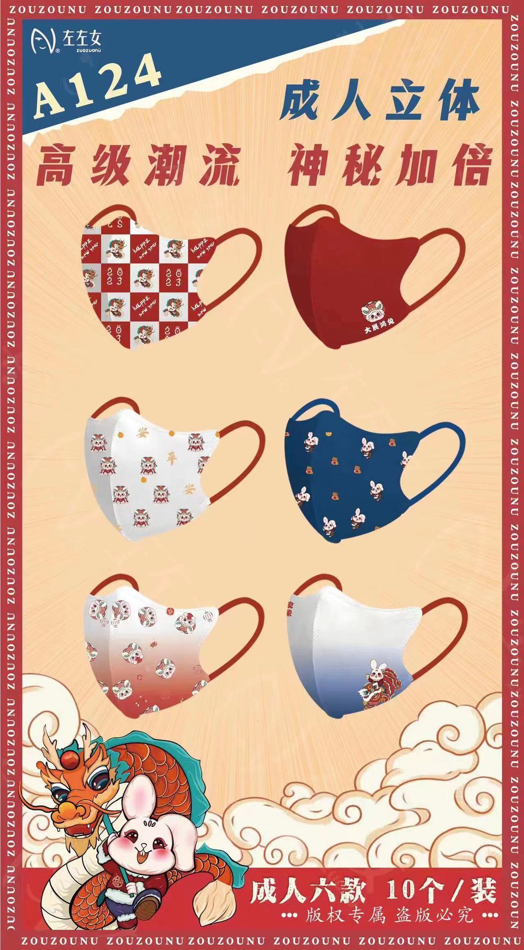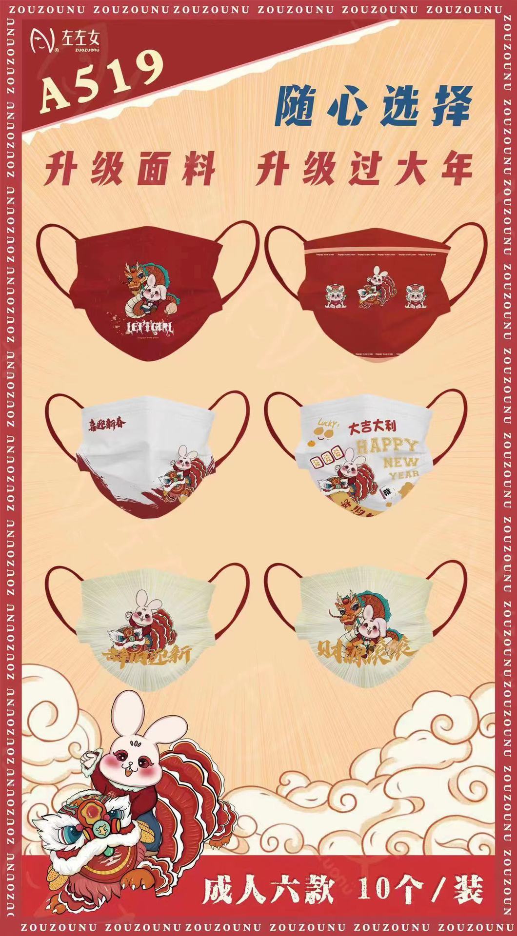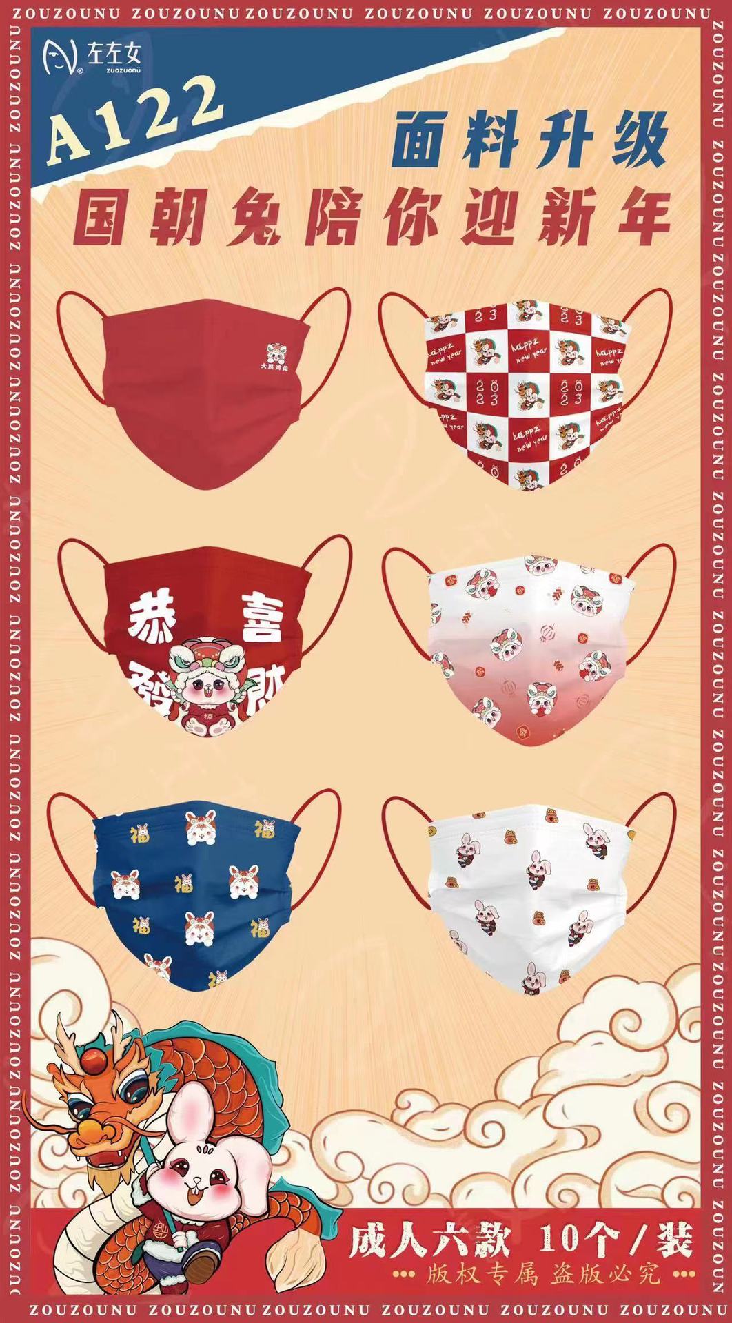 【兔年限定款!吉祥喜庆颜值3D口罩】成人/儿童口罩一次性3D立体口罩,婴幼儿亲肤三层印花过年红口罩