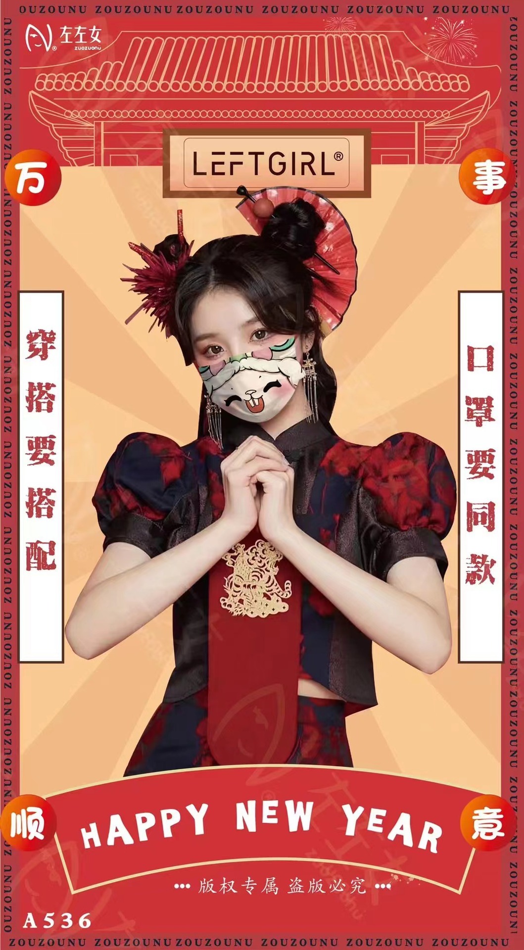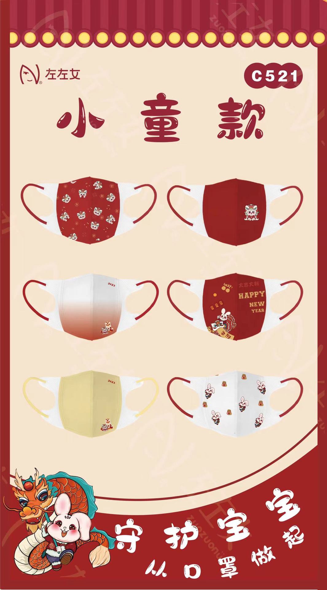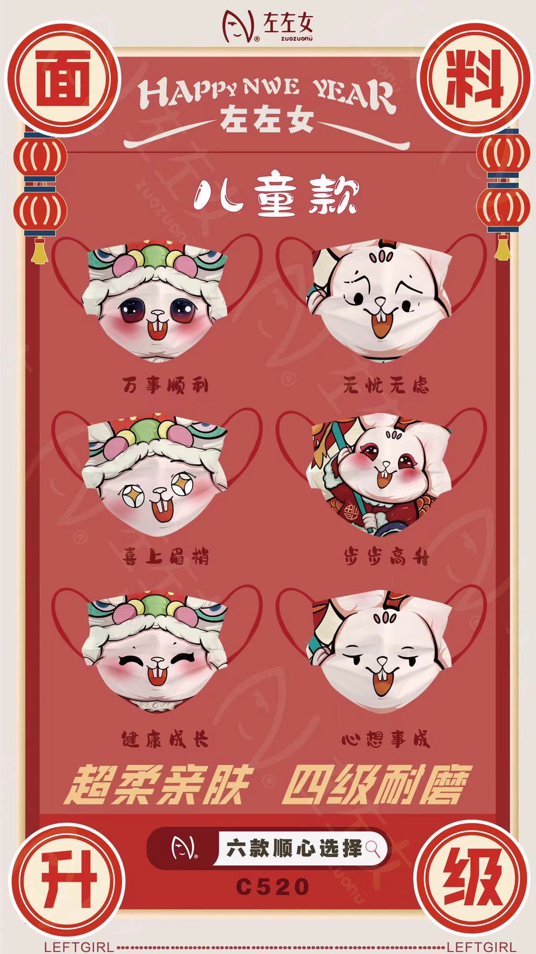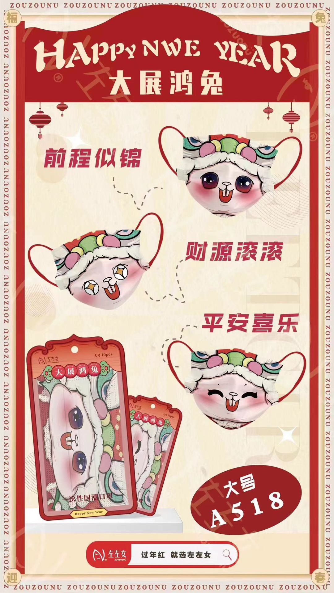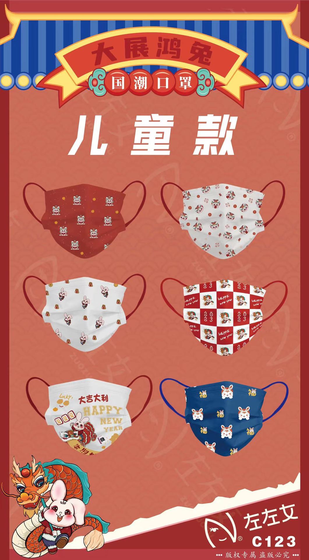 【兔年限定款!吉祥喜庆颜值3D口罩】成人/儿童口罩一次性3D立体口罩,婴幼儿亲肤三层印花过年红口罩