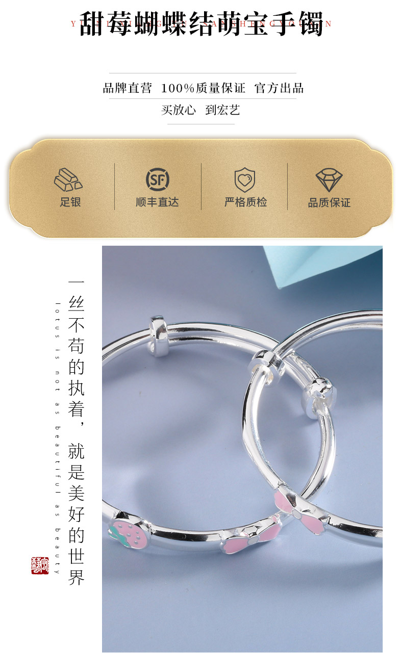 【宏艺珠宝】甜莓蝴蝶结萌宝儿童手镯·足银手镯