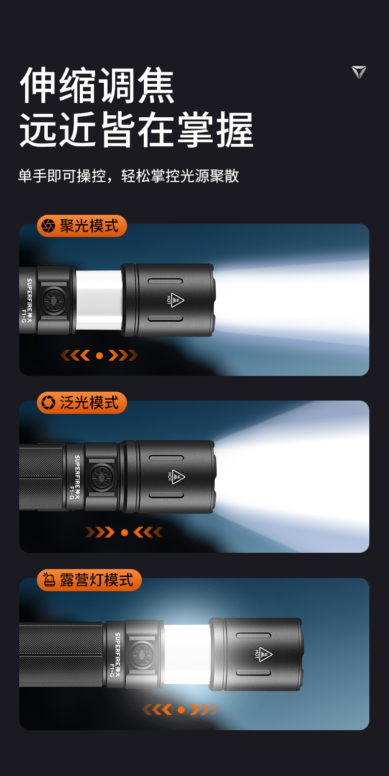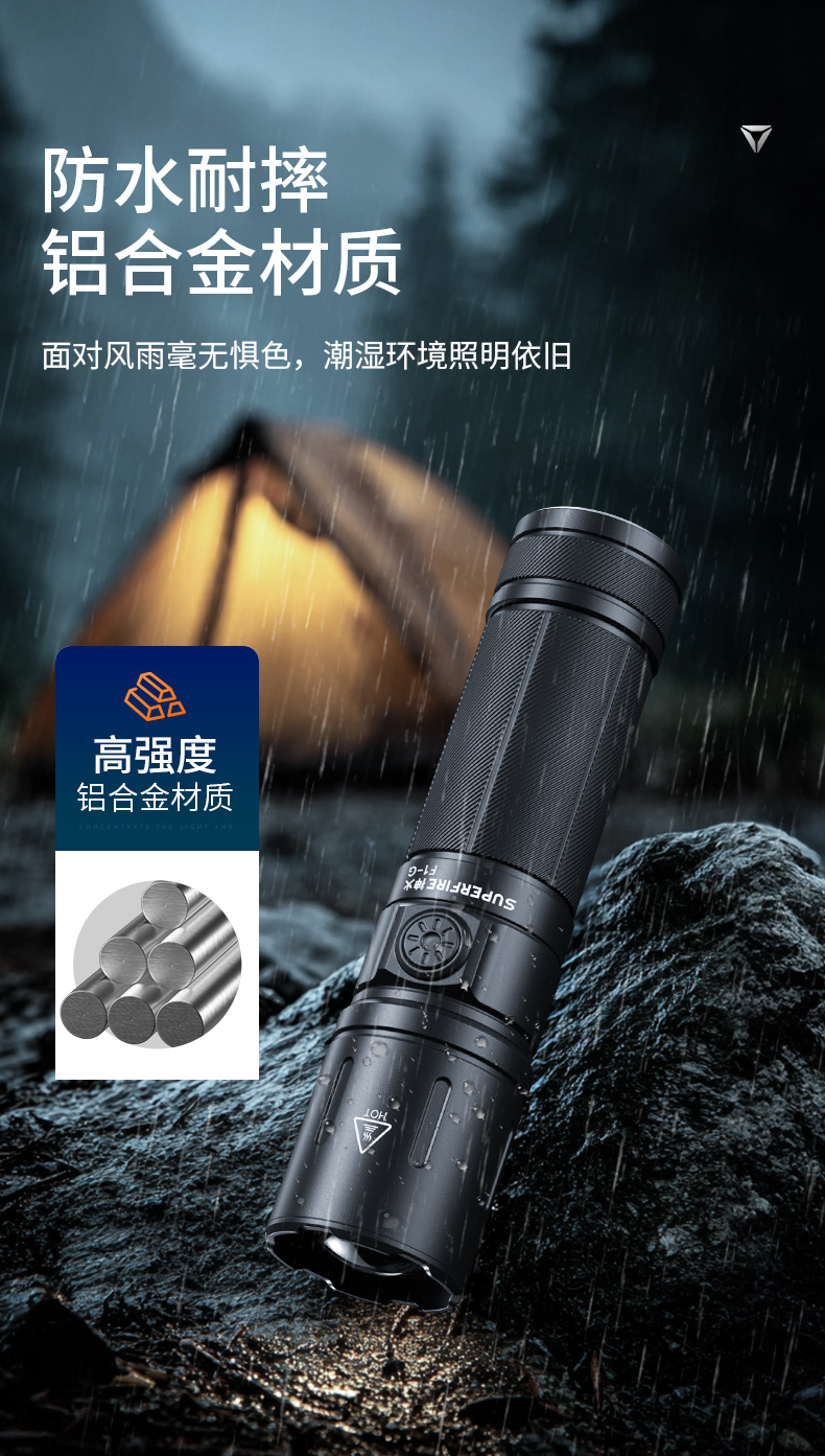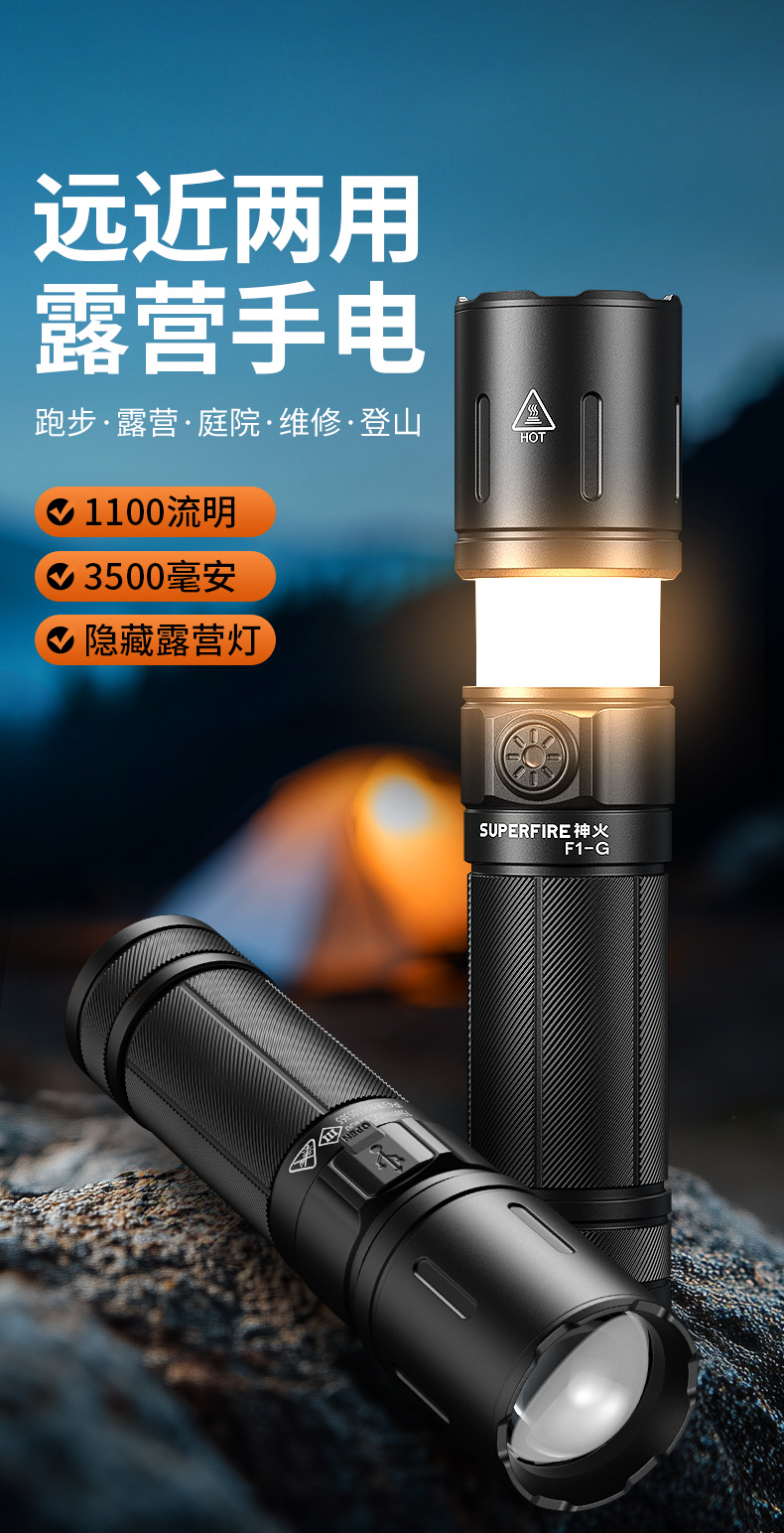 神火F1-G强光手电筒双模式调焦远射防水户外露营照明装备