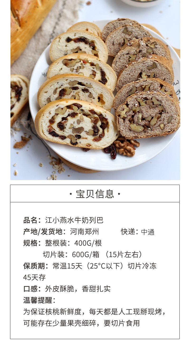 好吃又营养【江小燕水牛奶列巴】,400g超大一个,全家一起分享,还有单独切片包装的也可选