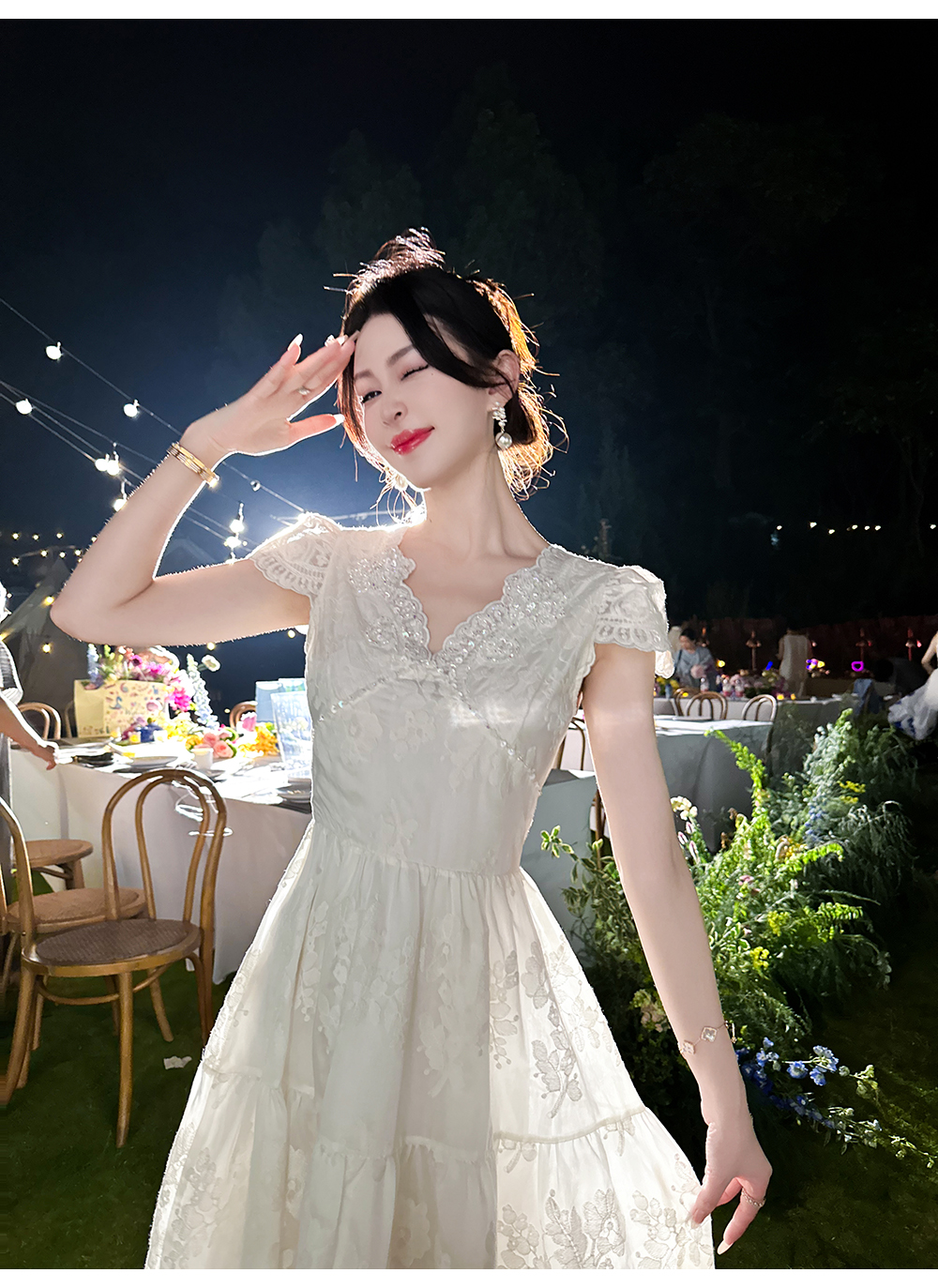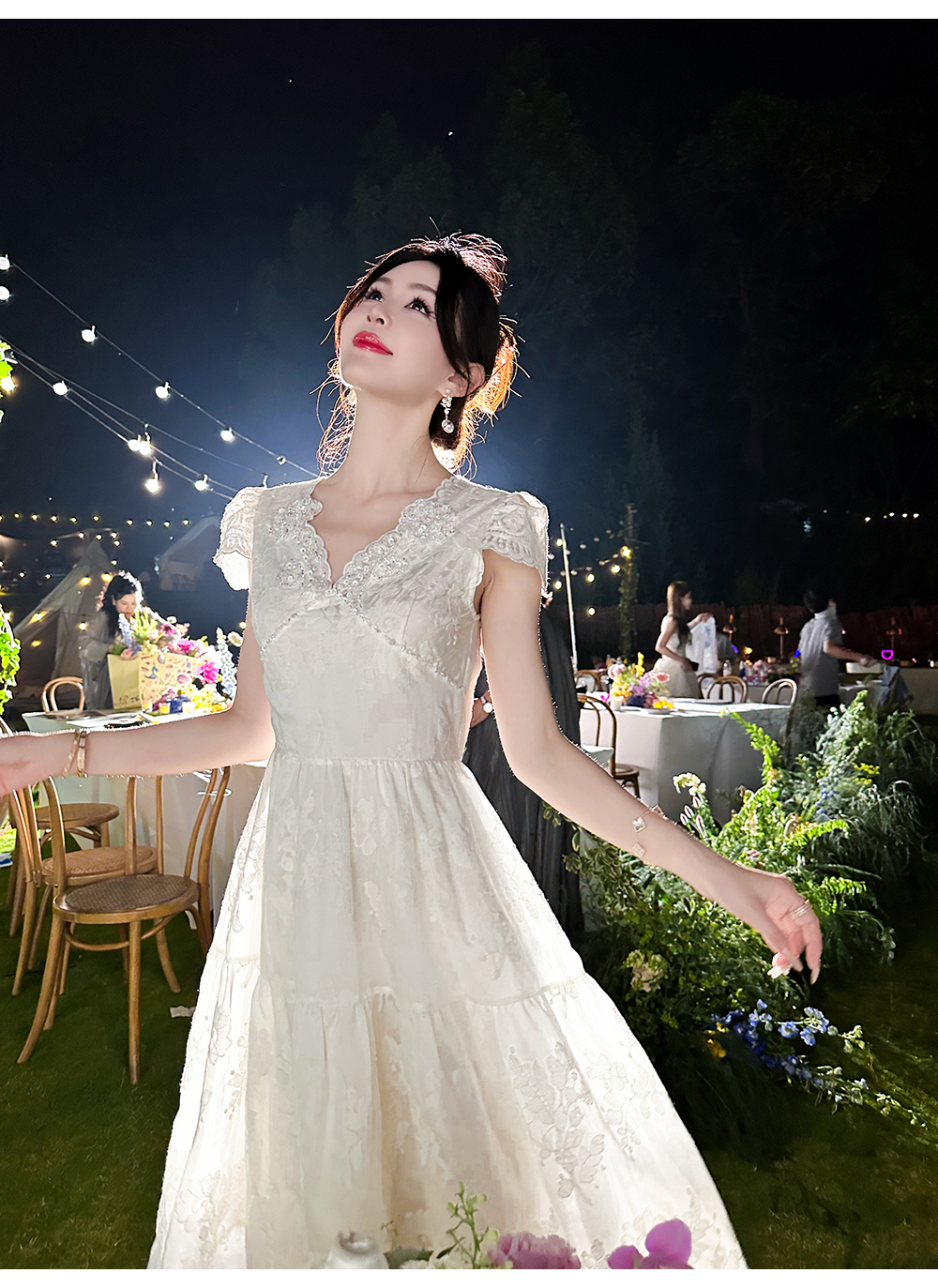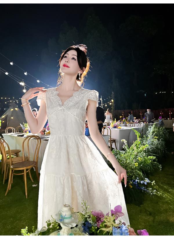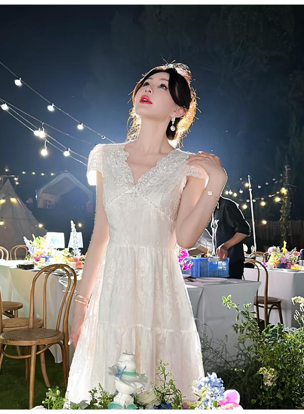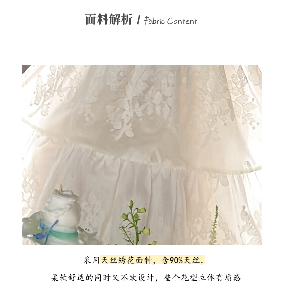 BeQueenStory【月光露易丝】高级感重工立体绣花法式V领收腰连衣裙