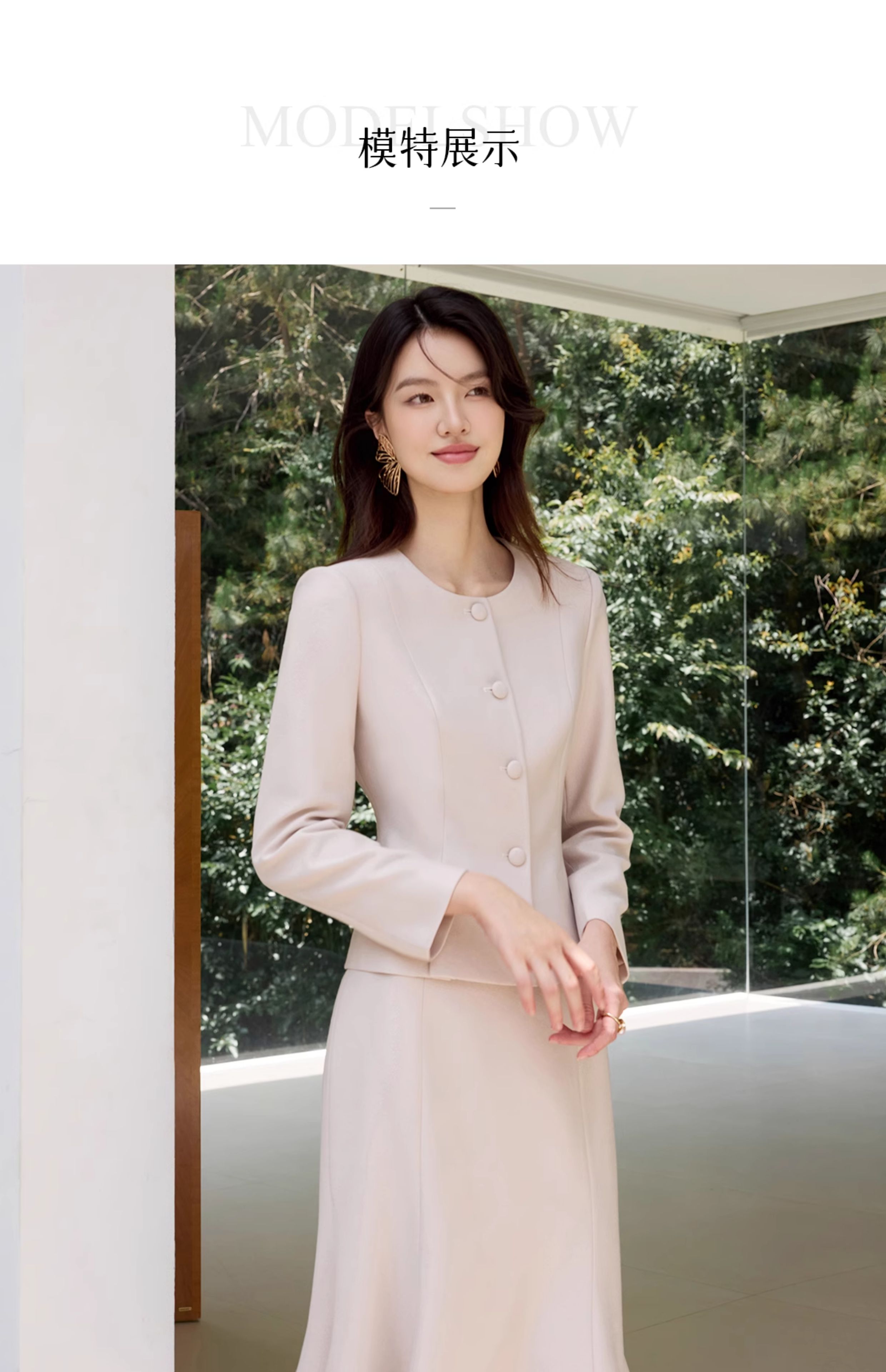 IWY/秋季气质米色鱼尾裙西装半裙女小香风正式场合长袖职业裙两件套J25C201+J25S202