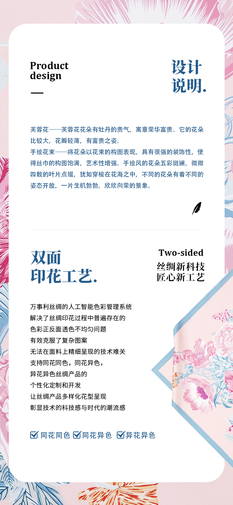 万事利“芙蓉花开”63厘米双面印花中方巾