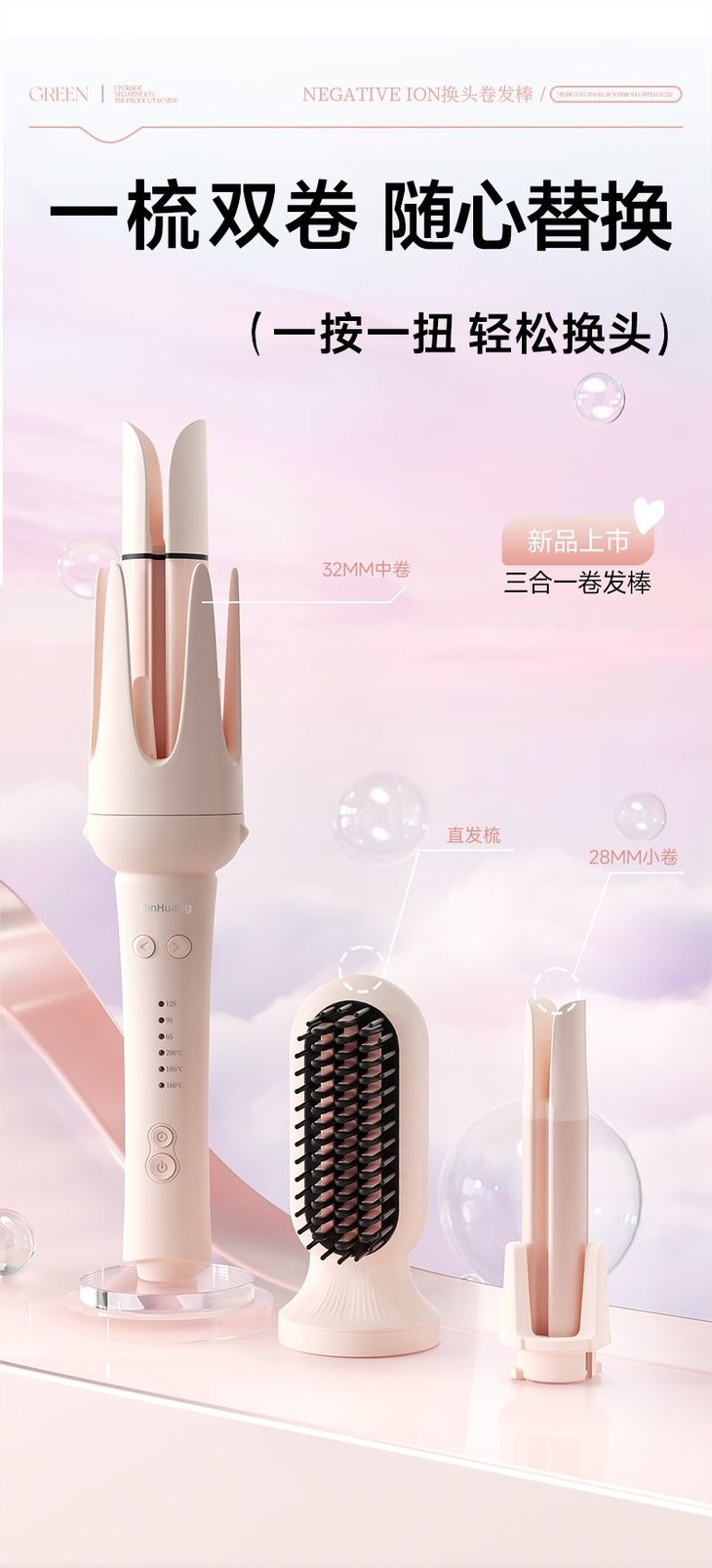 姐妹们!早上多睡半小时的秘诀被我找到了! 这个敏煌黑科技梳子简直懒人救星—— 上班要直发?约会想大波浪?见家长弄内扣? 卷度不持久,出门就变直? 高温伤发质,头发越用越毛躁? 有了它!全!都!能!搞!定! 敏煌自动卷发棒
