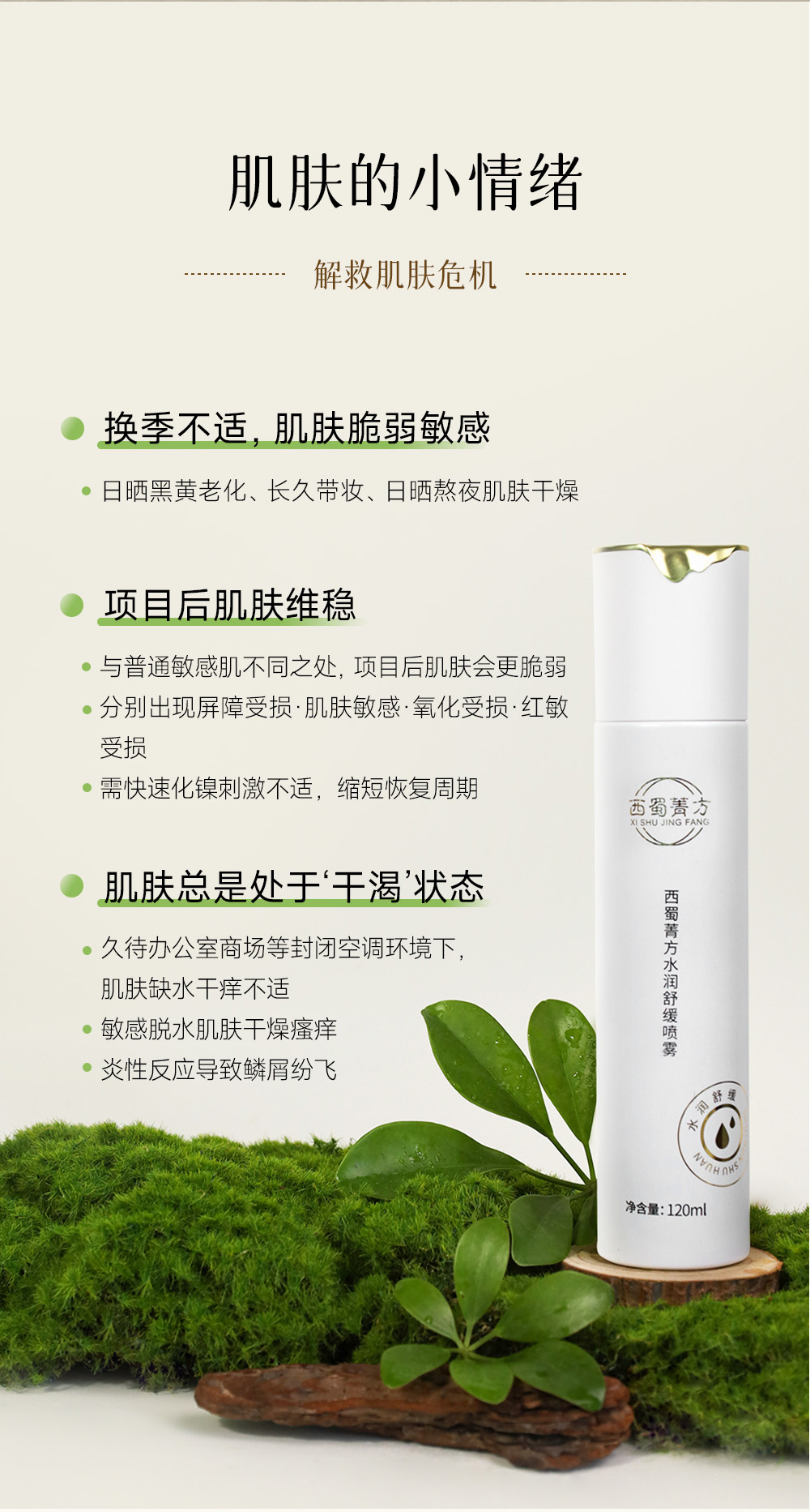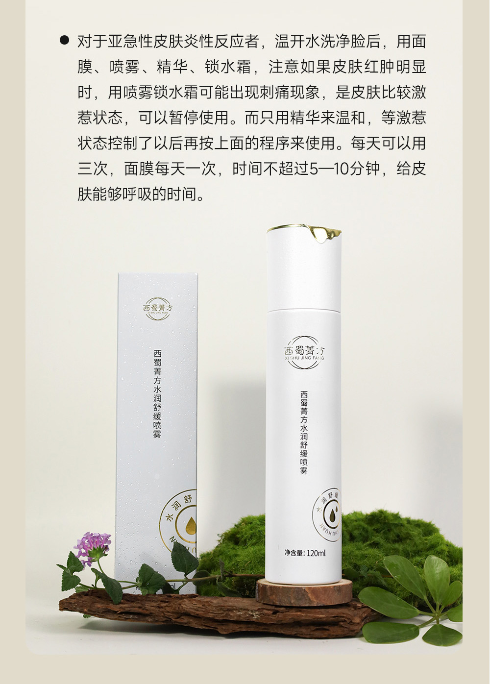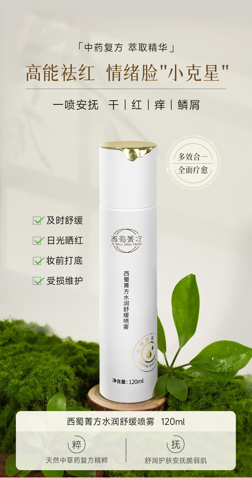 西蜀菁方水润舒缓喷雾 复方草本植萃急救保湿喷雾 舒缓爽肤保湿水 适用敏感肌改善泛红