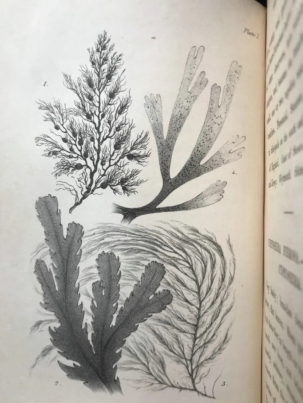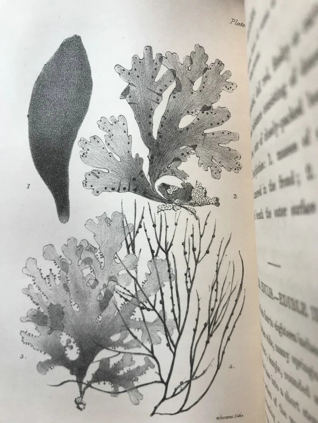 1853年 海洋植物学家:英国海藻研究入门 7页版画插图 真皮精装36开
