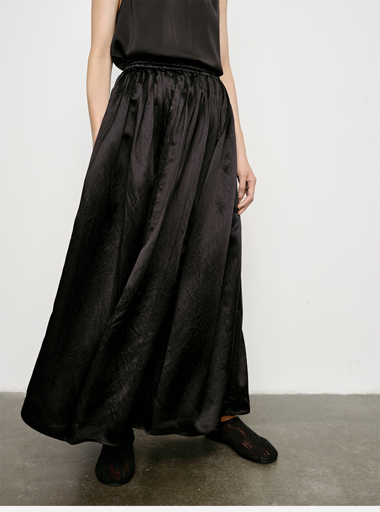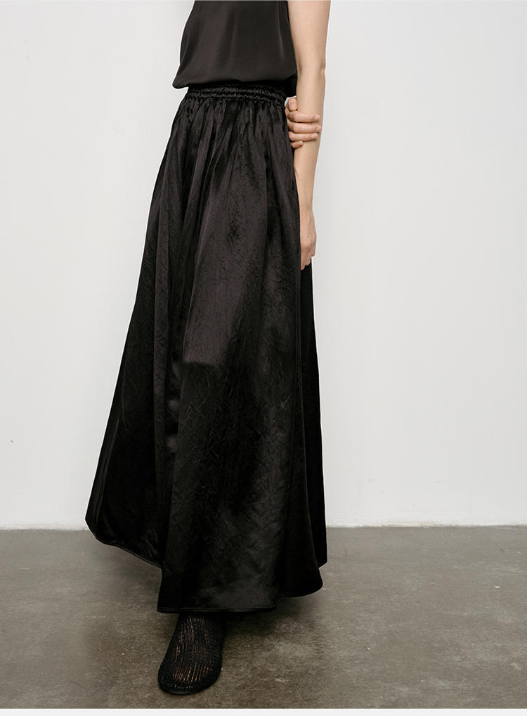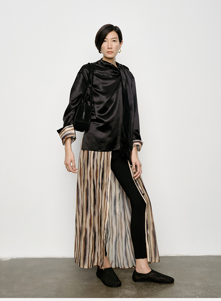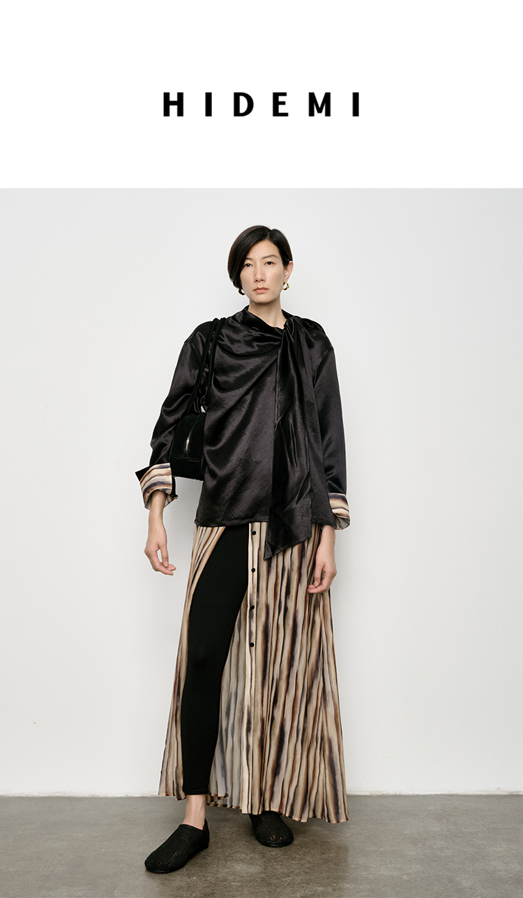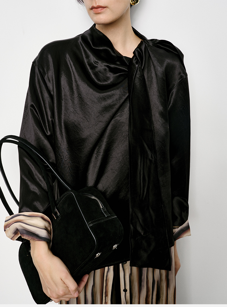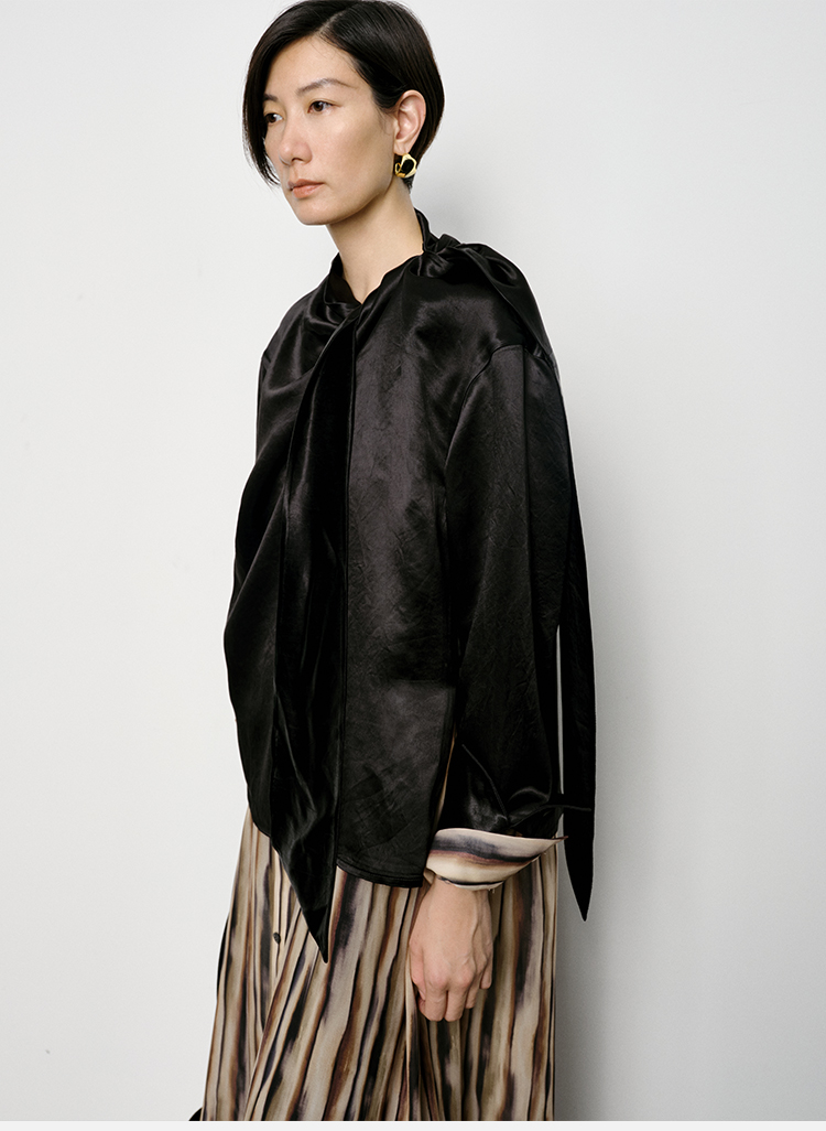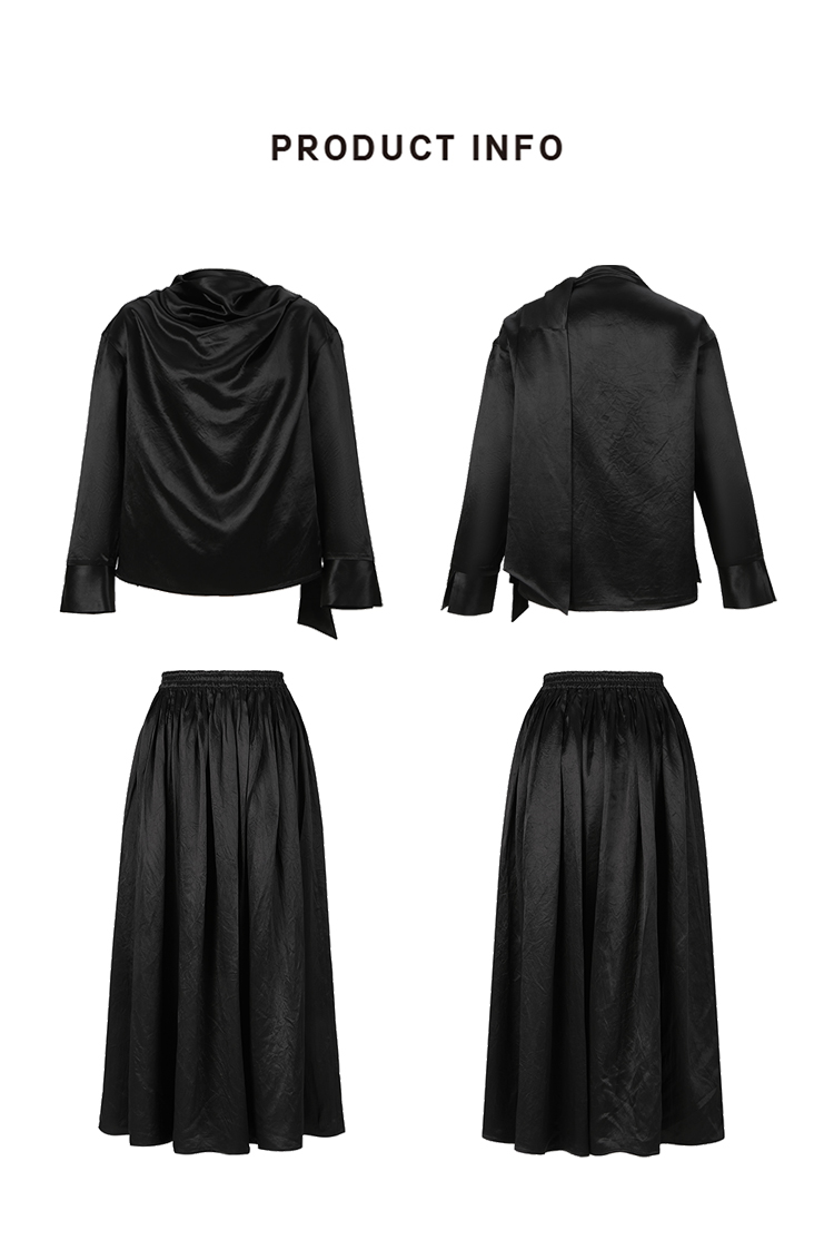 HIDEMI 艺术缎面光泽感褶皱荡漾领丝巾绑带套装 衬衫/半身裙