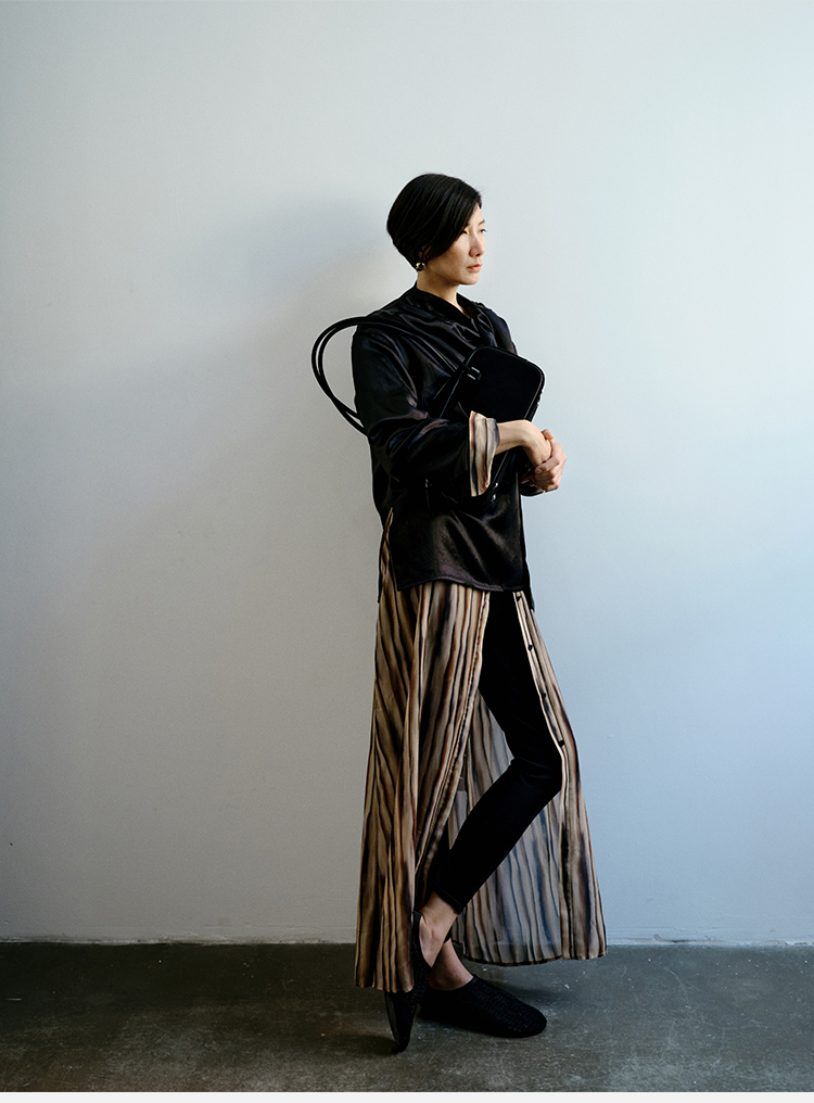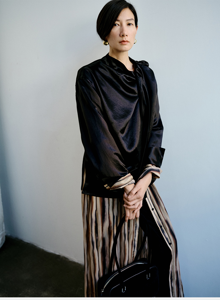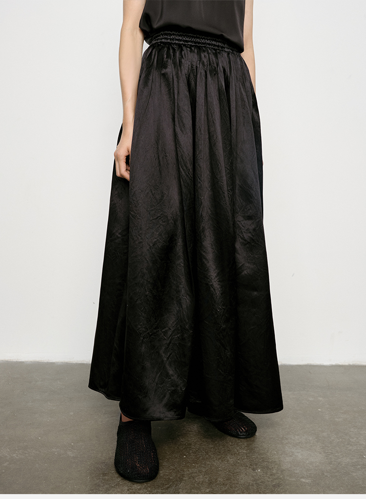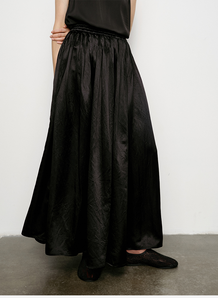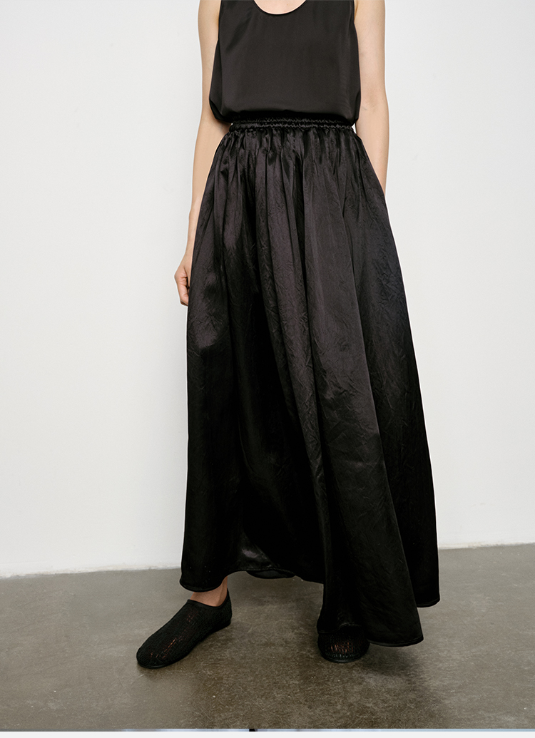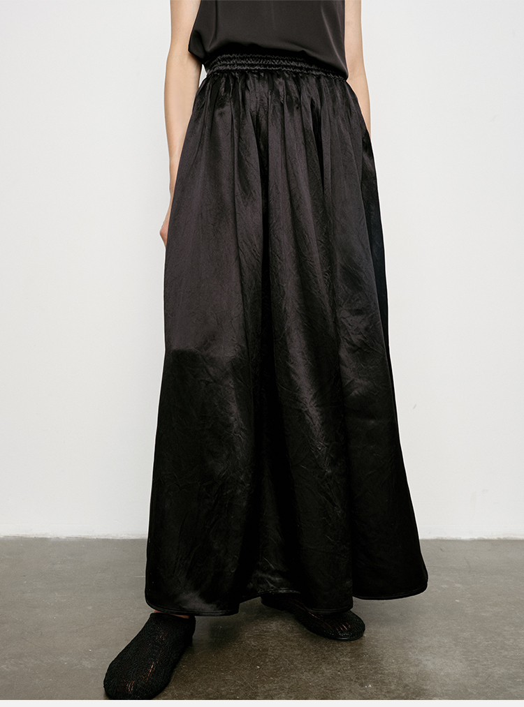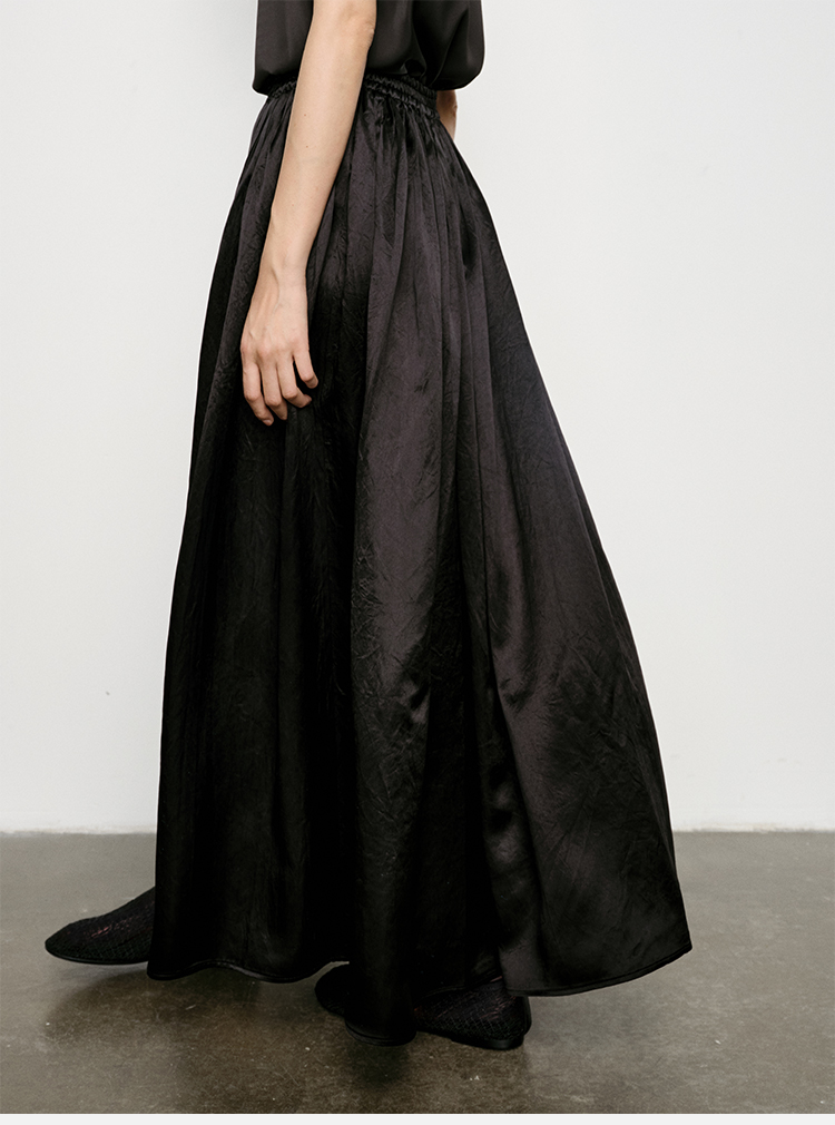 HIDEMI 艺术缎面光泽感褶皱荡漾领丝巾绑带套装 衬衫/半身裙