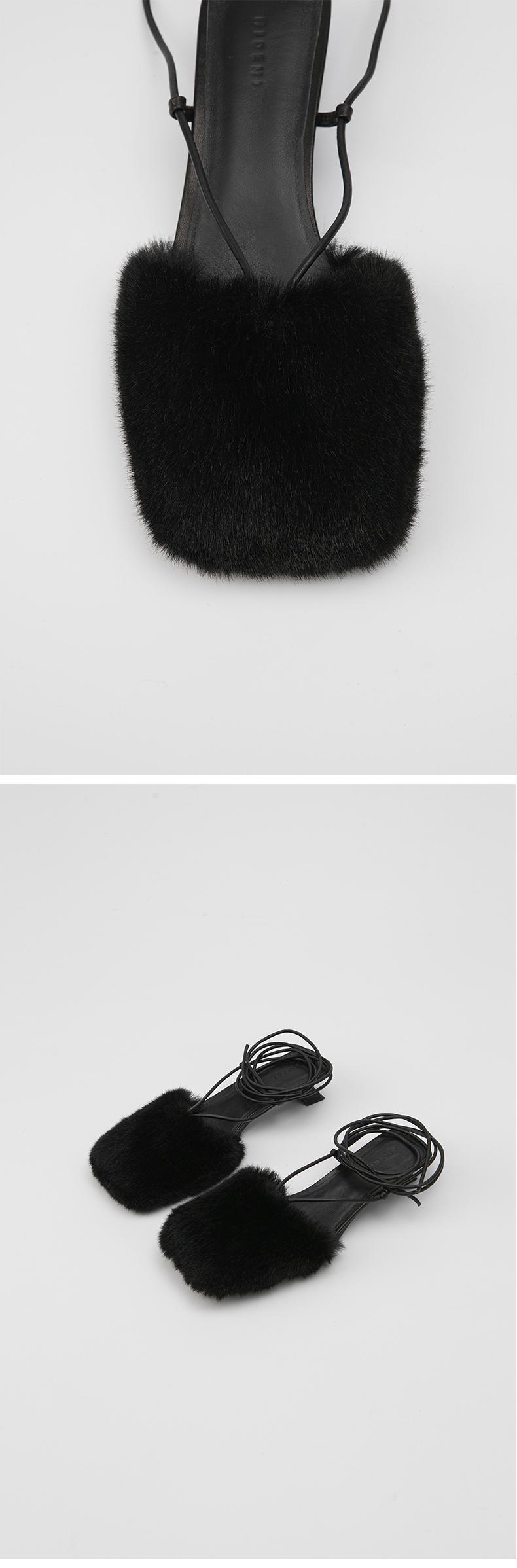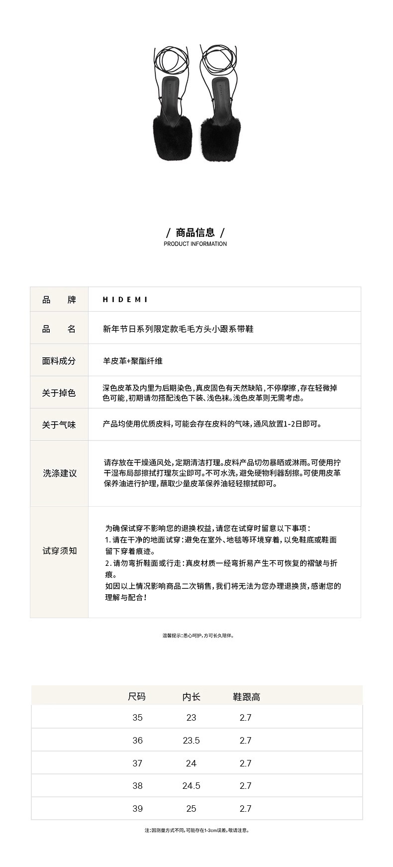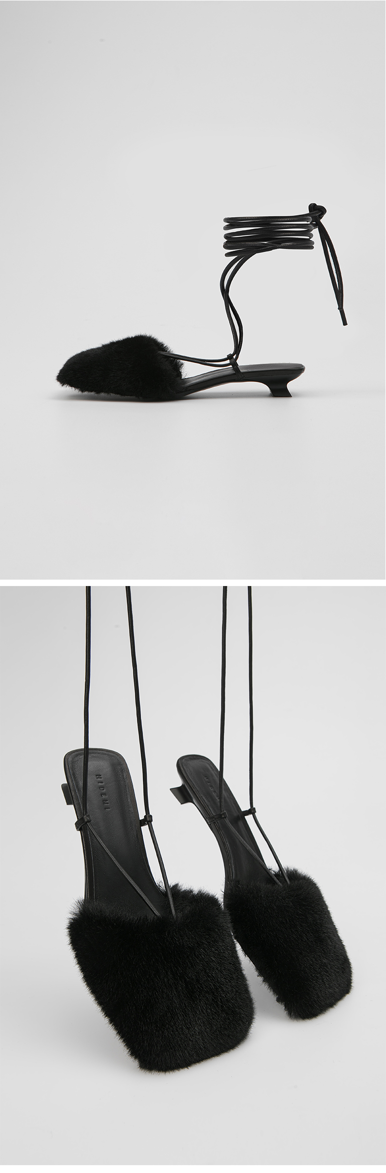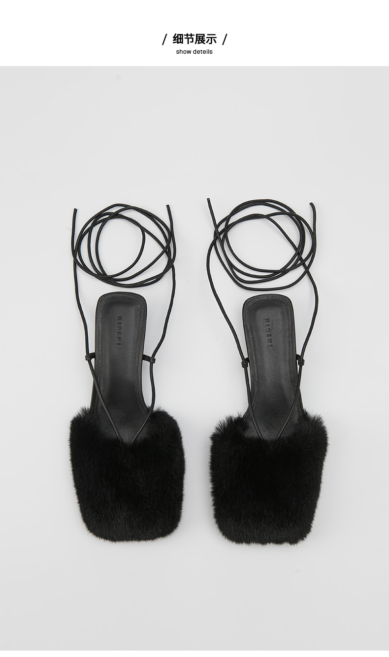 HIDEMI限定款毛毛方头小跟系带鞋